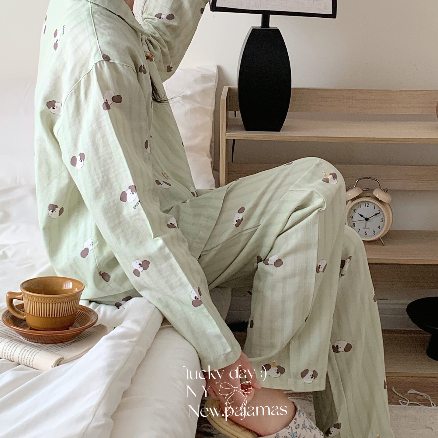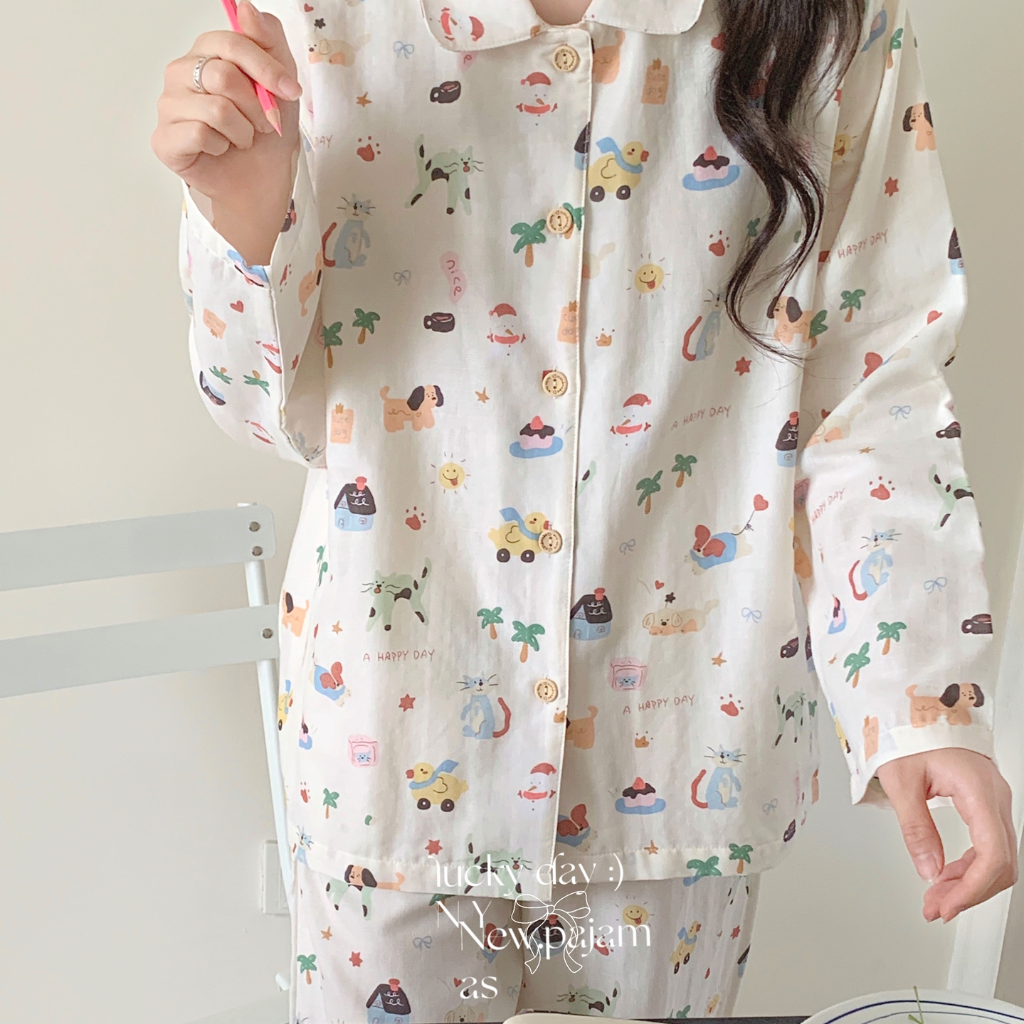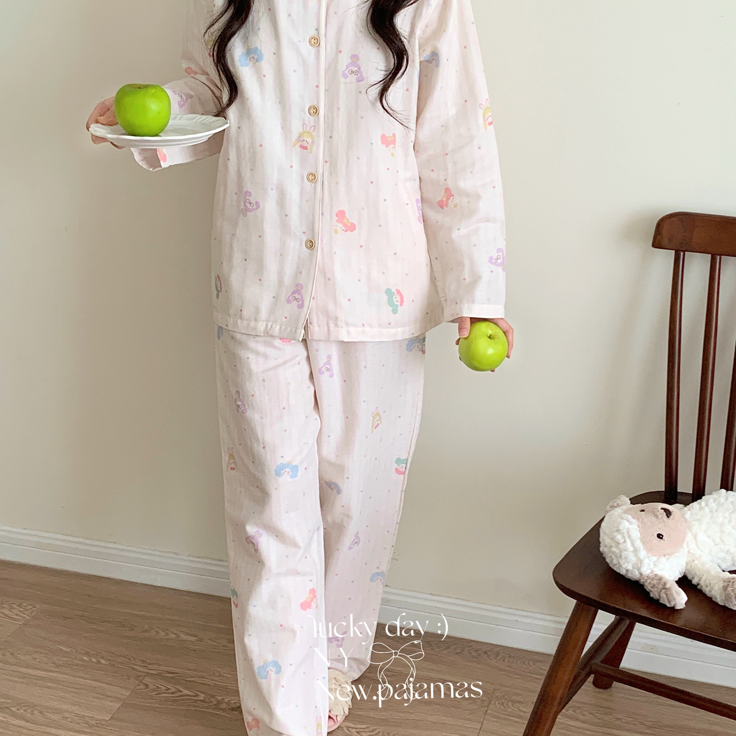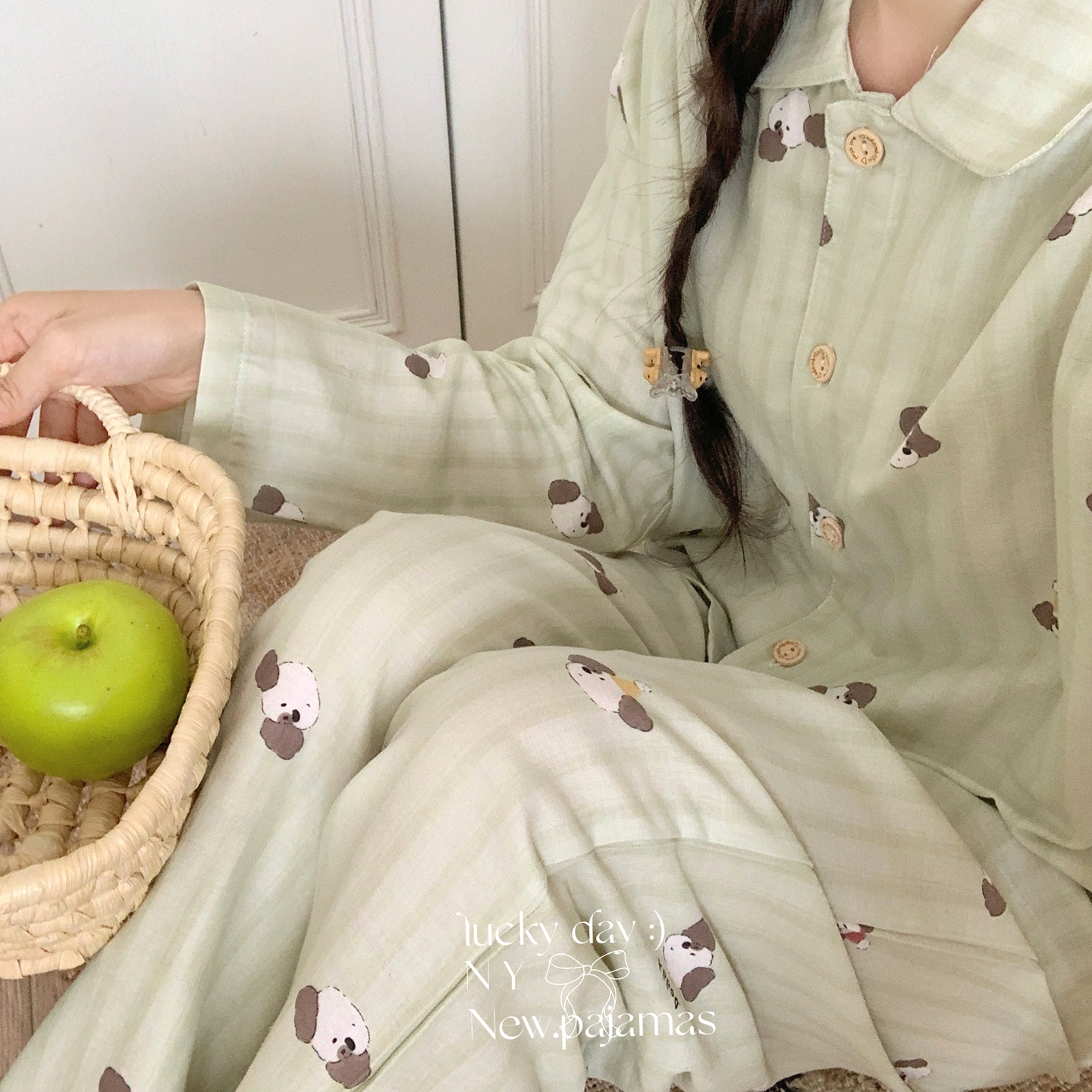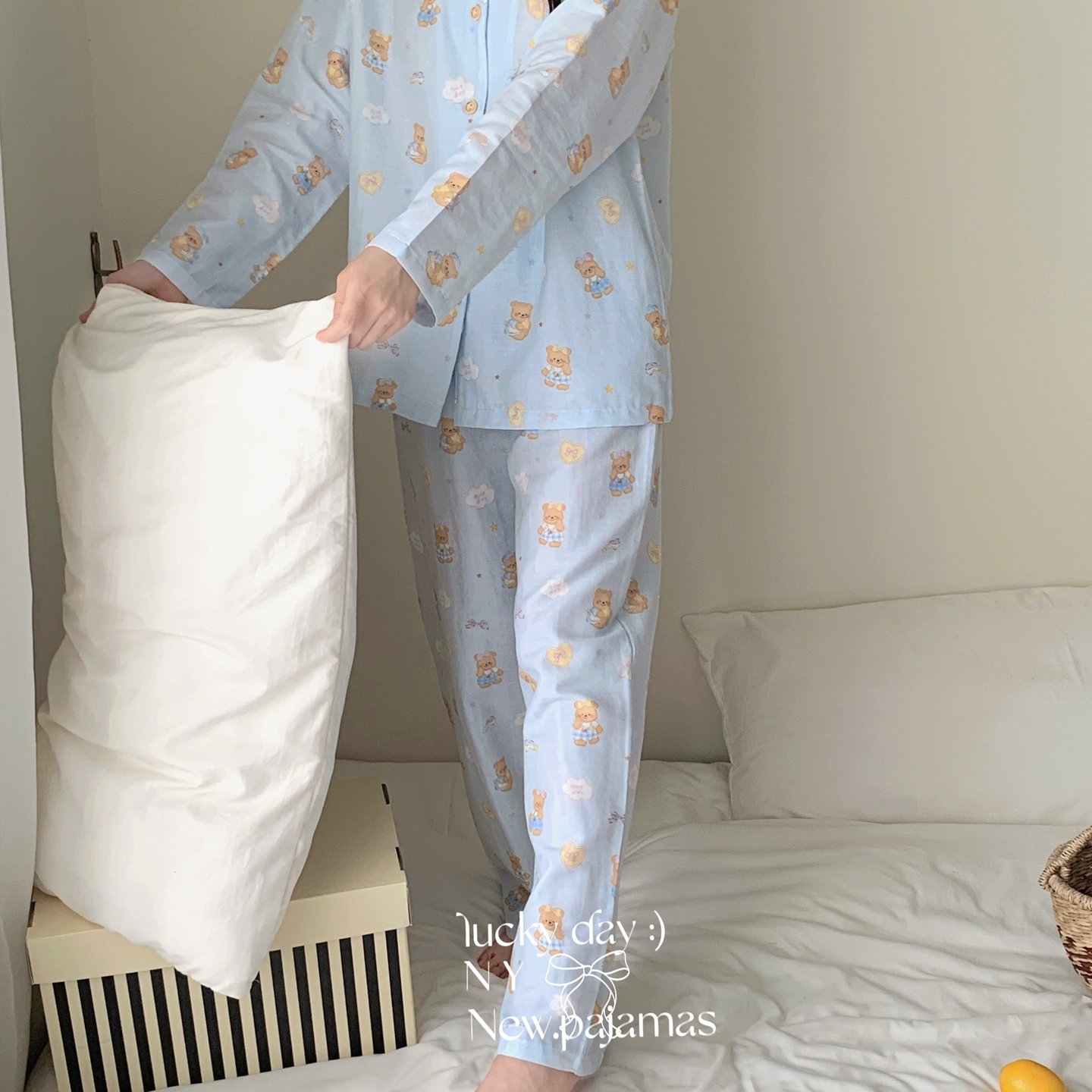 (总)纽约生活 2025新款绉布圆领开扣长袖长裤(会员-5),波比熊,黑碎花猫咪,蝴蝶结粉熊,花花狗,蓝碎花,塞纳花房