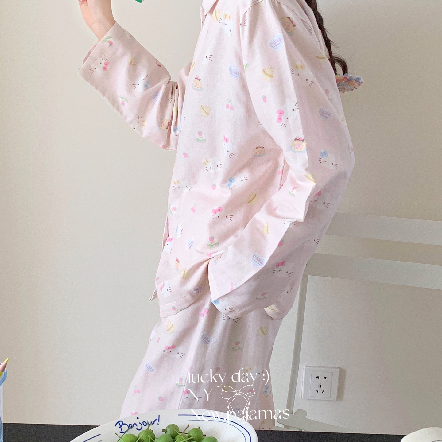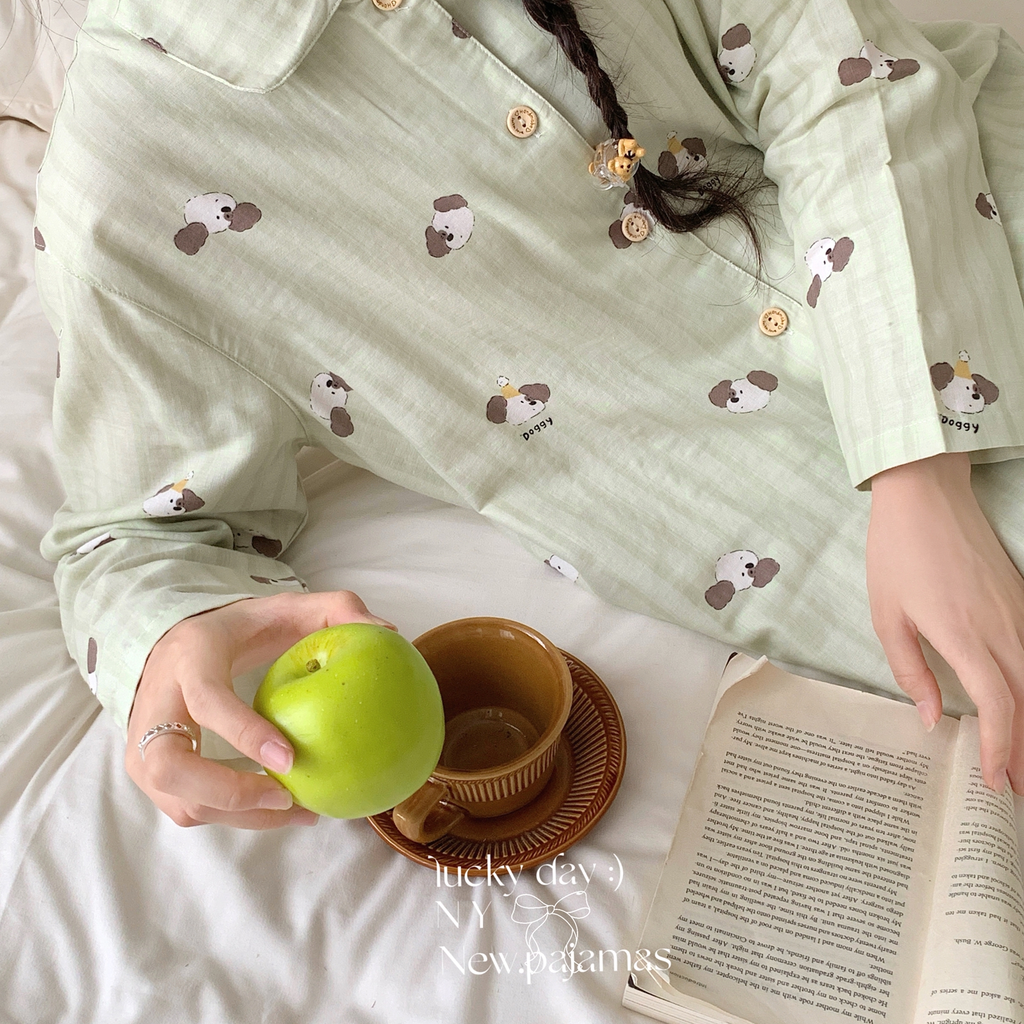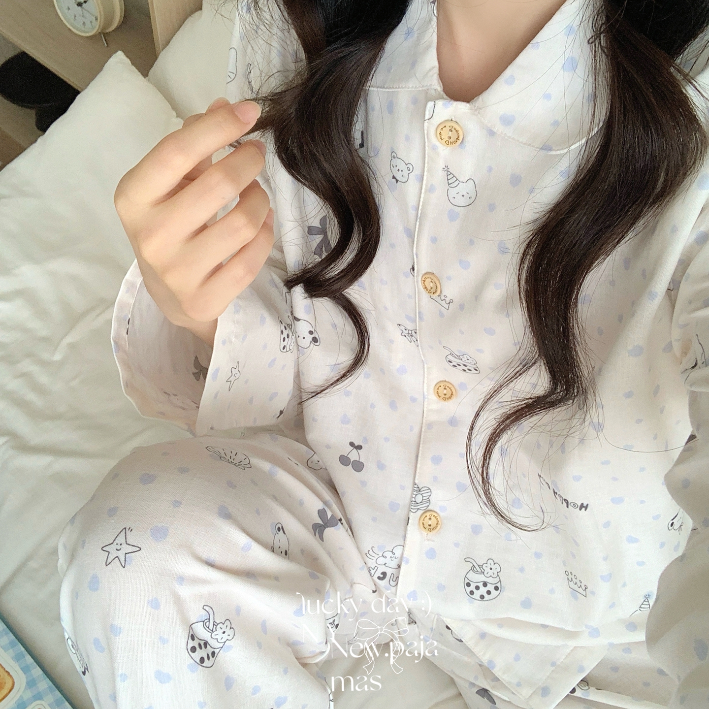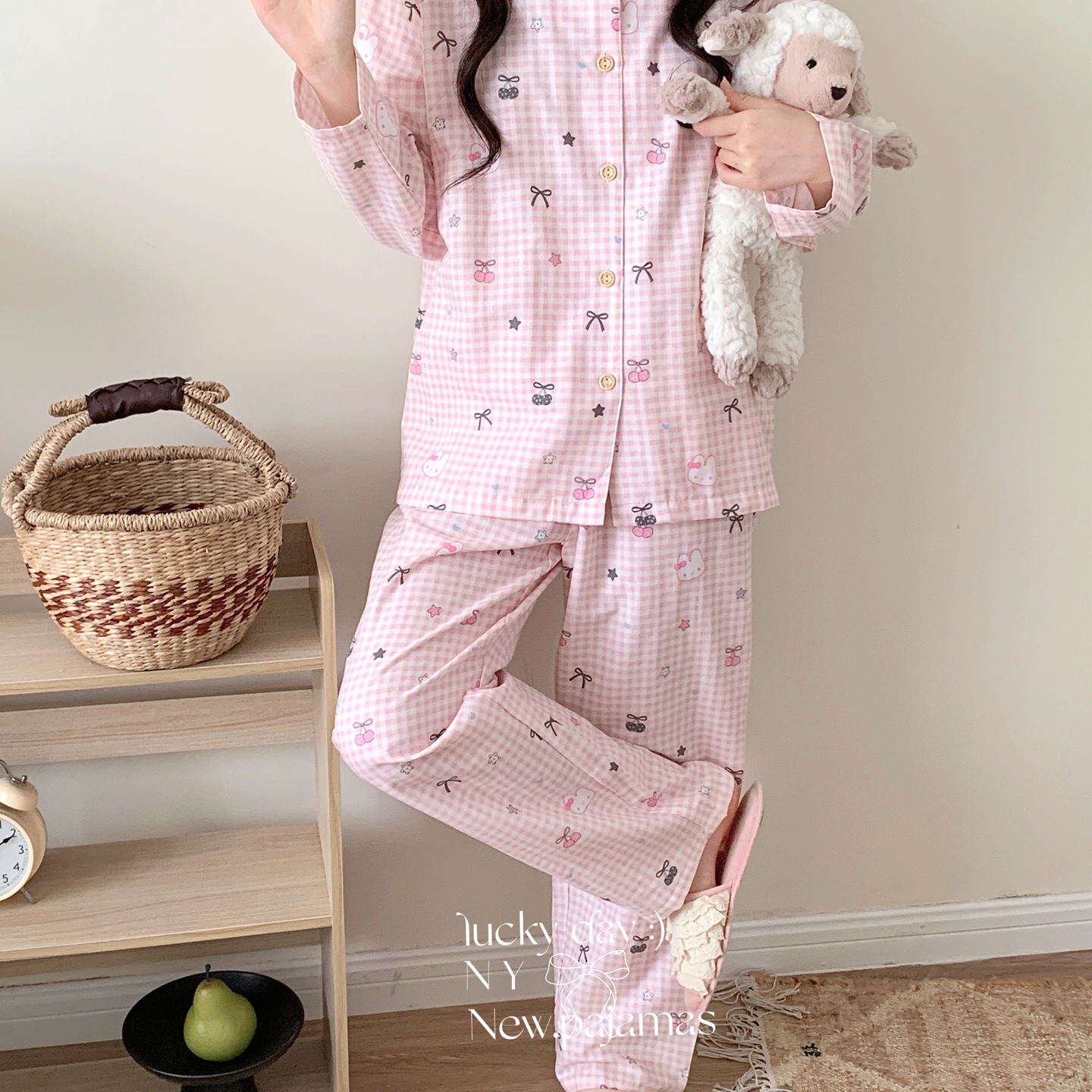 (总)纽约生活 2025新款绉布圆领开扣长袖长裤(会员-5),波比熊,黑碎花猫咪,蝴蝶结粉熊,花花狗,蓝碎花,塞纳花房