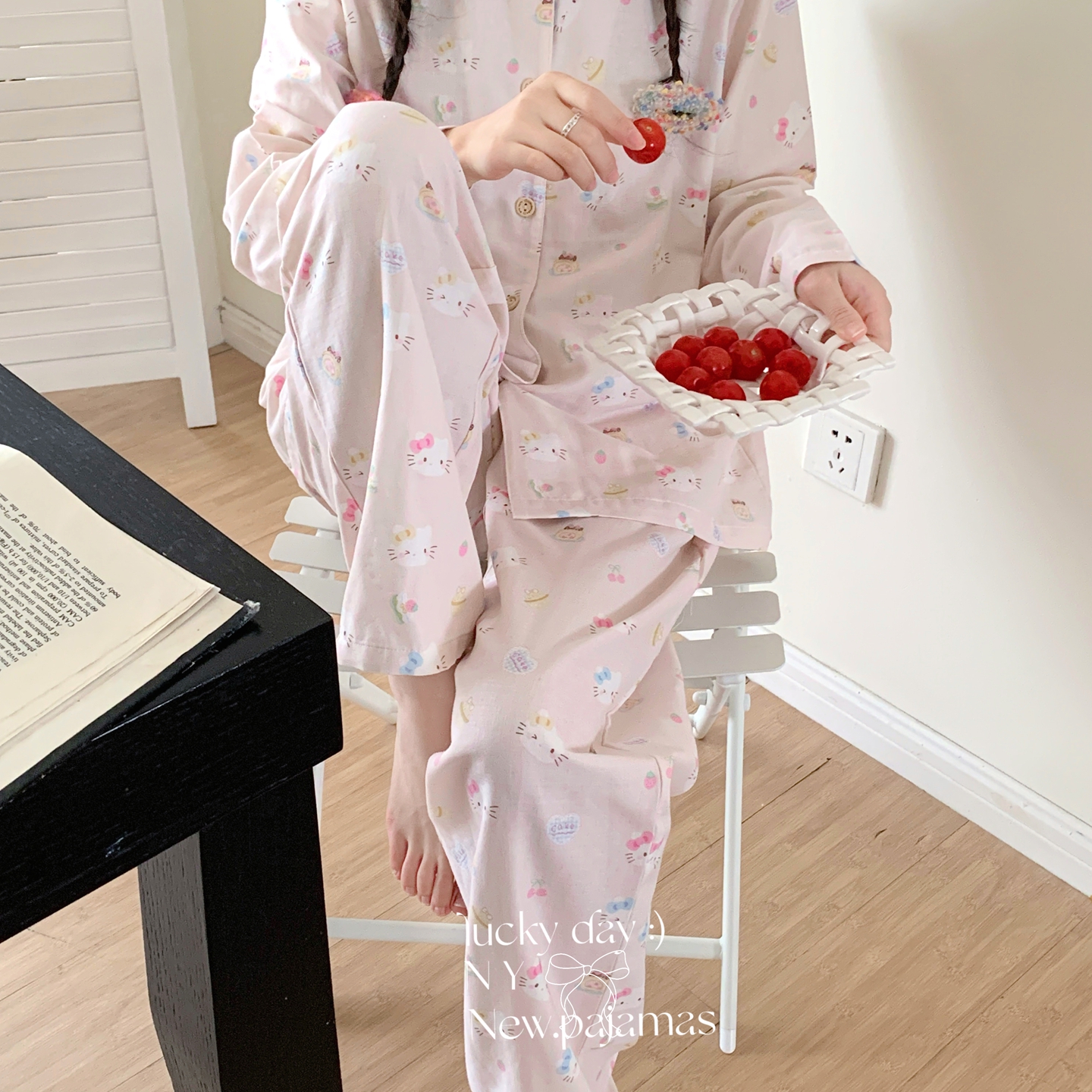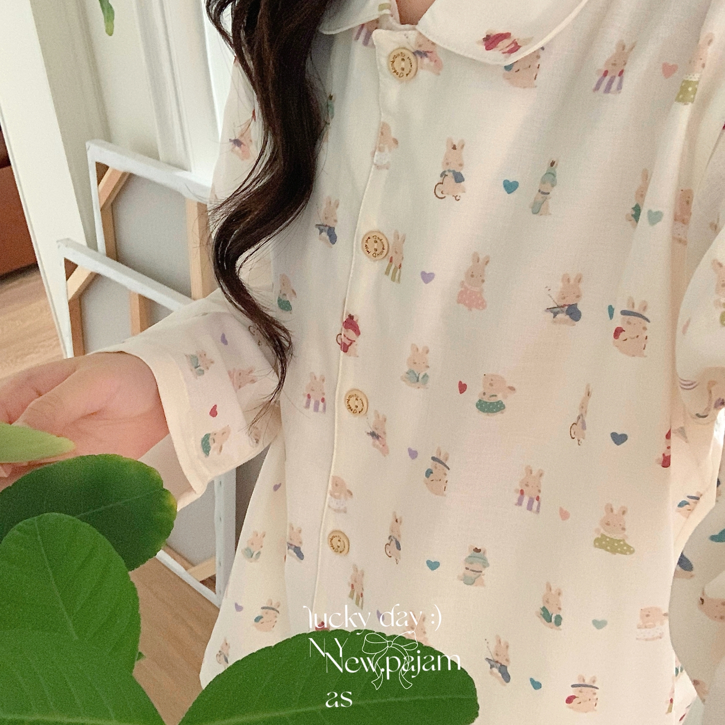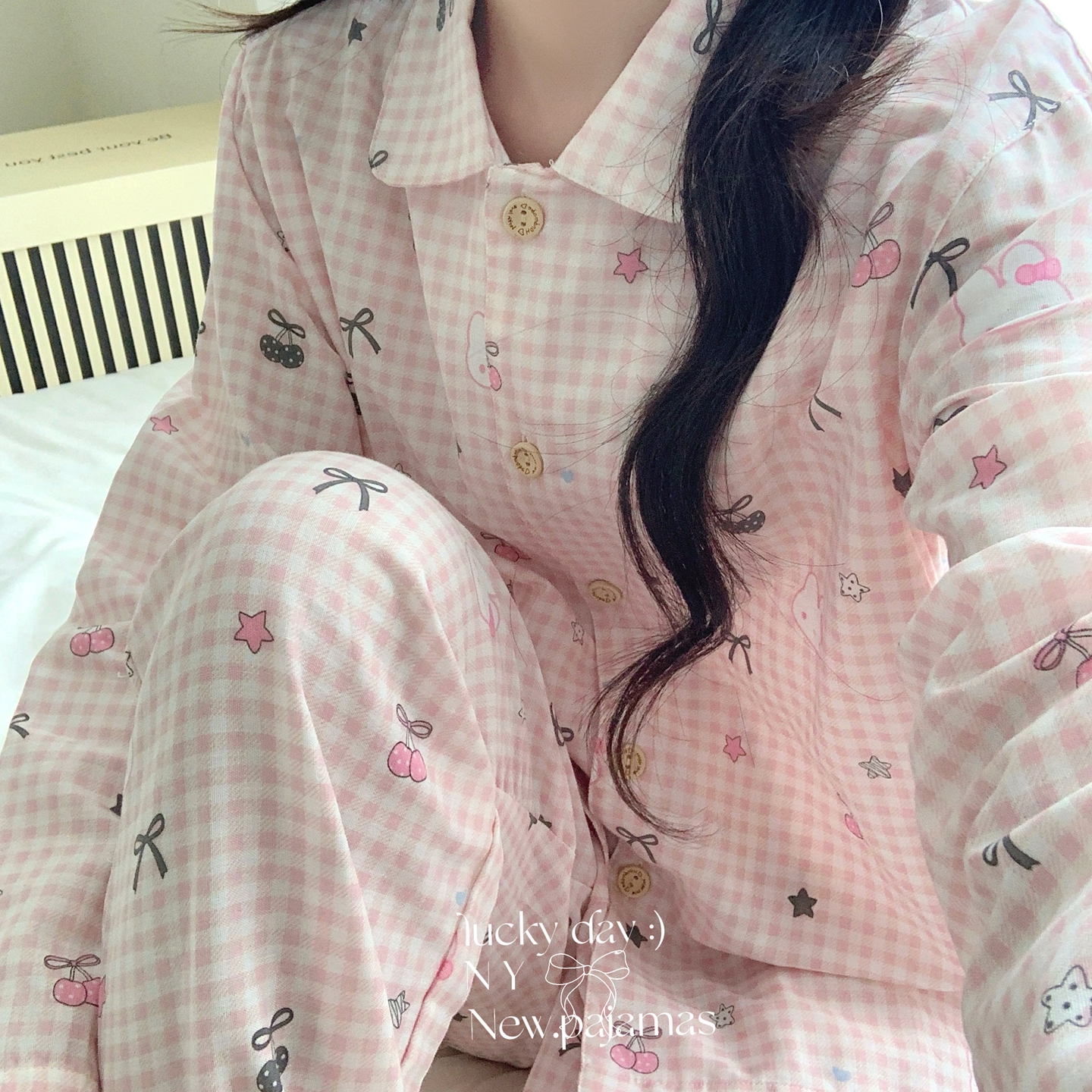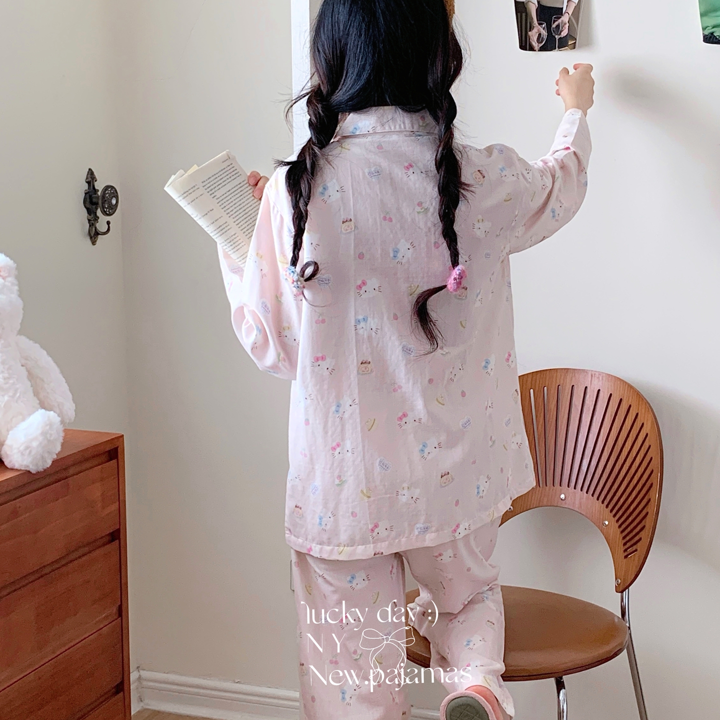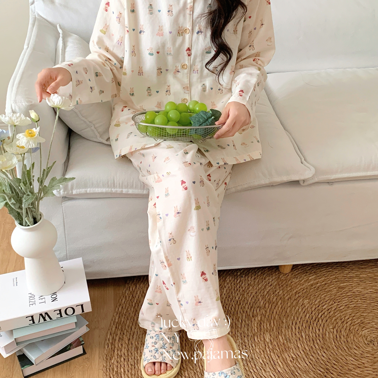 (总)纽约生活 2025新款绉布圆领开扣长袖长裤(会员-5),波比熊,黑碎花猫咪,蝴蝶结粉熊,花花狗,蓝碎花,塞纳花房
