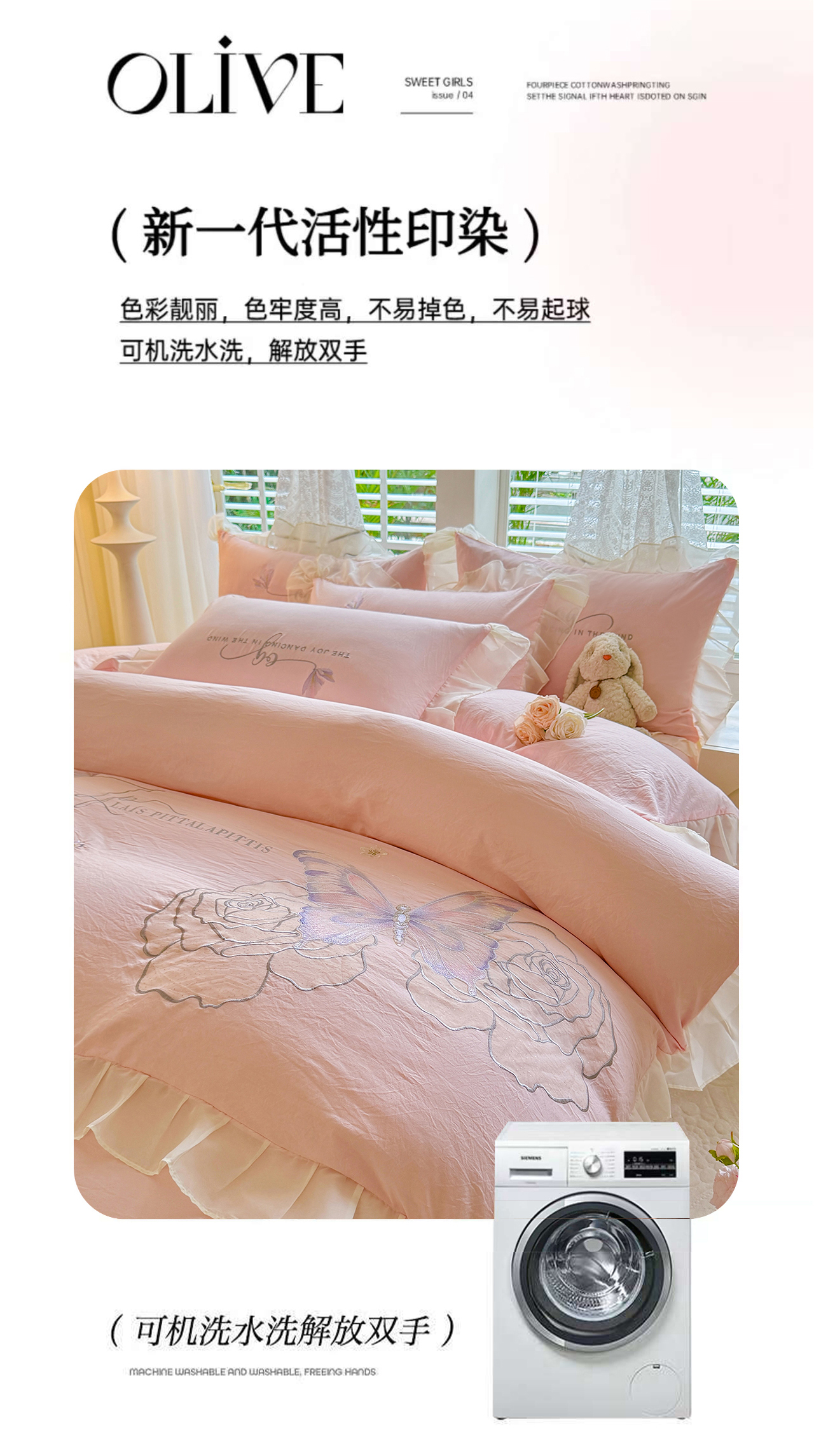 当前位置: 91家纺网 > 商品网购 > 床品套件 > 四件套 > 其它四件套 > 大麦乐田 2025新款法式少女心水洗公主风贴布绣蕾丝花边四件套 花蝶之恋-粉