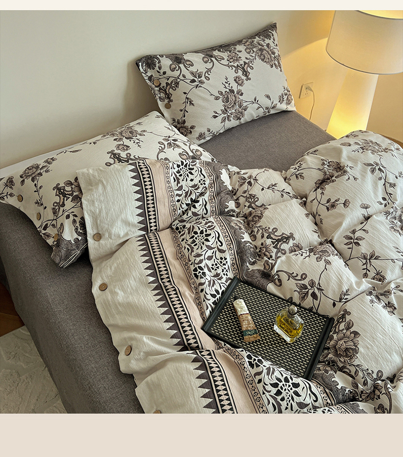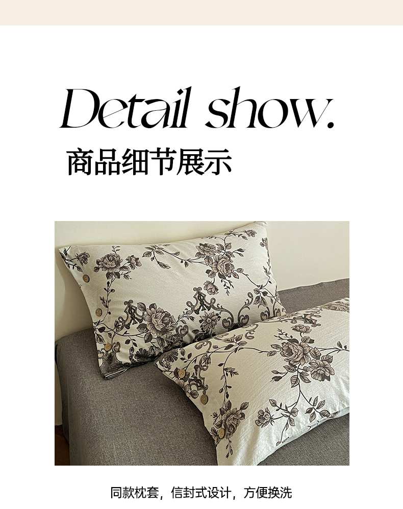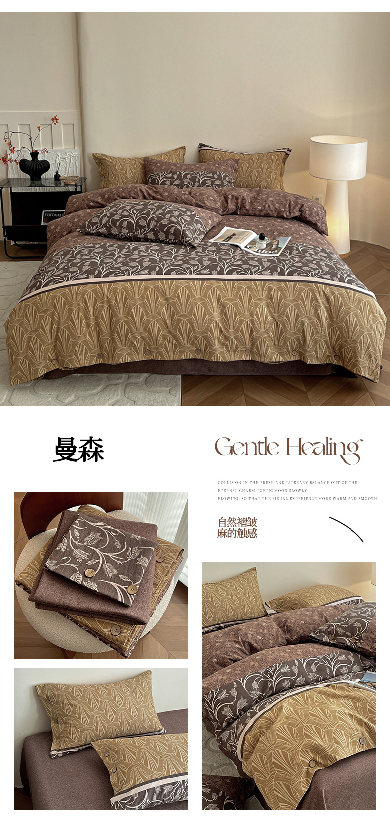 商品名称:梦纤绒 2025新款亚麻纽扣款四件套 花夕棕