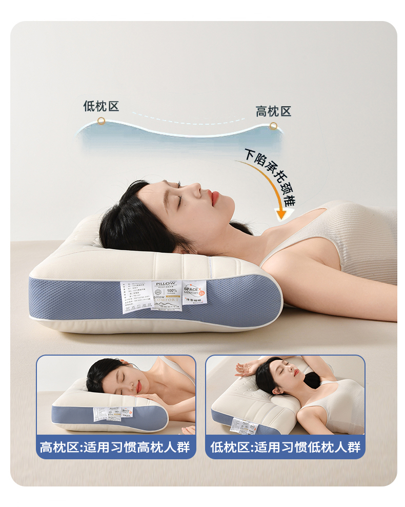 商品名称:珍贝家纺 2025新款零压深睡护颈枕枕头枕芯 浅蓝色
