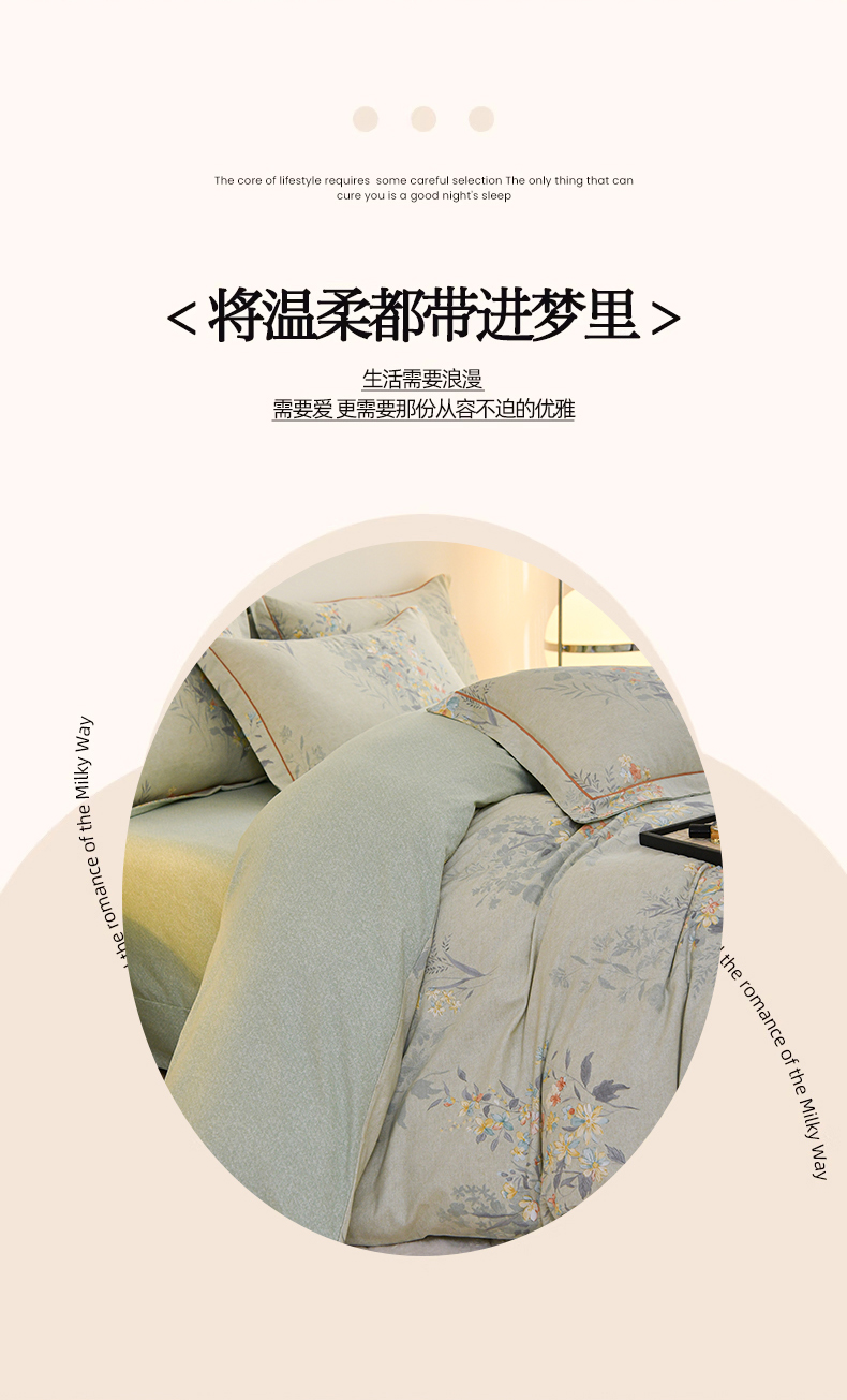 铭浩 2025新款纯棉棉加厚磨毛升级喷气面料全棉四件套三件套意韵东方,意韵东方