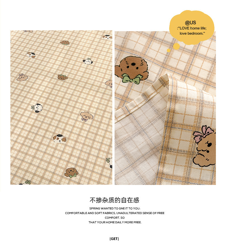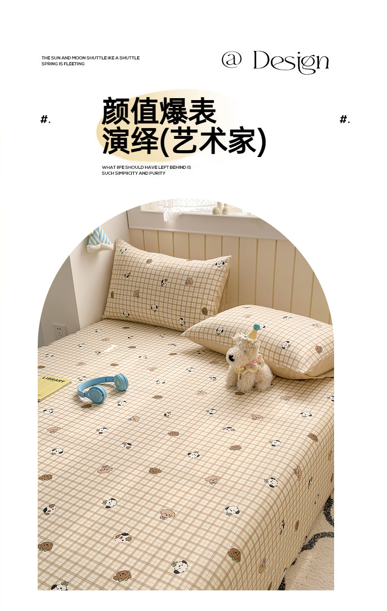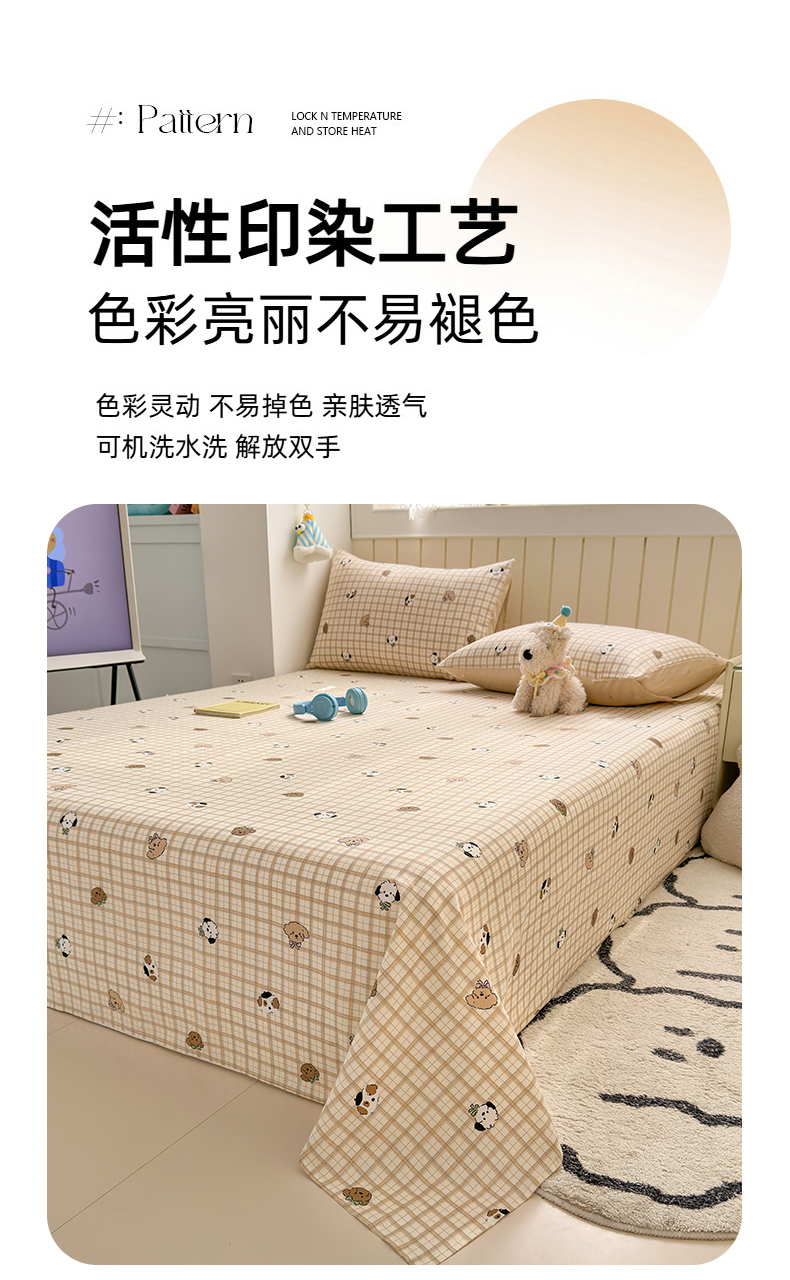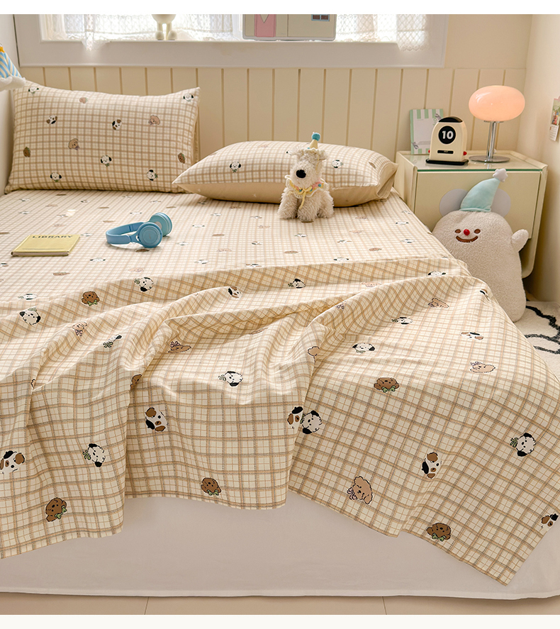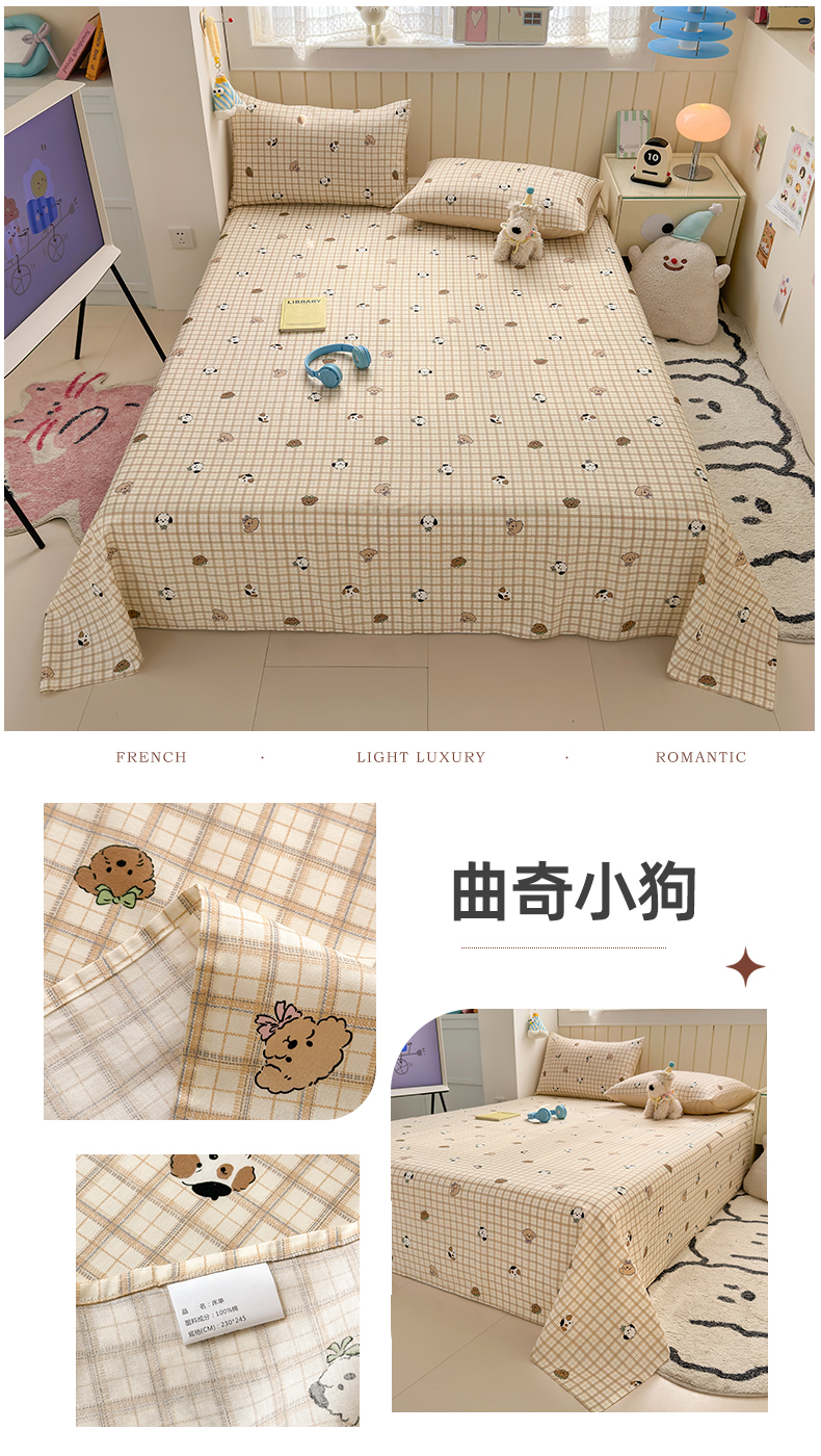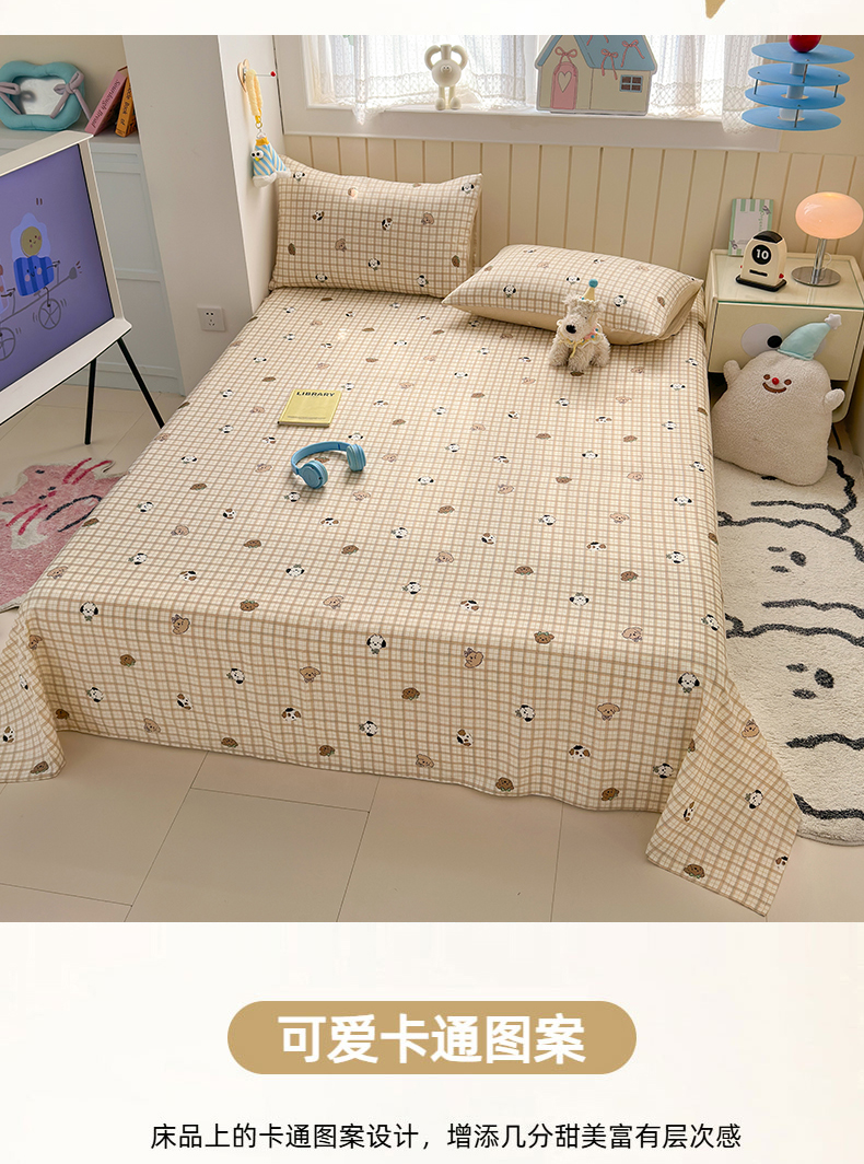• 91家纺网 家纺一手货源 找家纺 曼之夏 2025新款全棉纯棉40支学生季卡通印花床单单床单床单单件 曲奇小狗