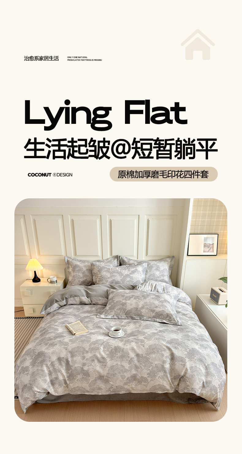 当前位置: 91家纺网 > 商品网购 > 床品套件 > 四件套 > 普通磨毛四件套 > 曼之夏 2025新款原棉加厚磨毛印花四件套 春风十里