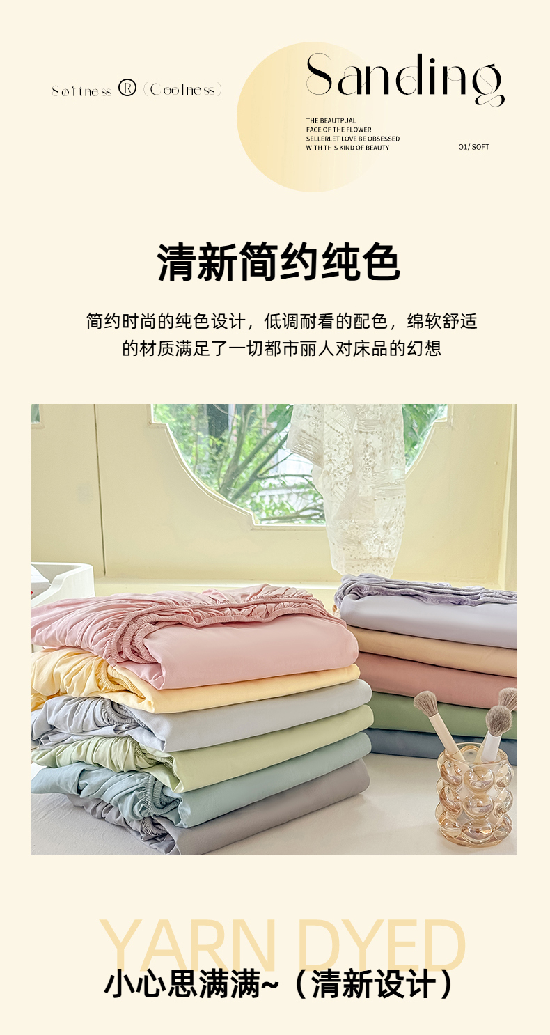 (总)凡客家居 2025新款全棉纯色简约床笠系列,冰川灰,丁香紫,豆沙粉,茉莉黄,奶茶,嫩芽绿,蔚蓝,仙女粉,雅灰,氧气蓝,中绿,组合图