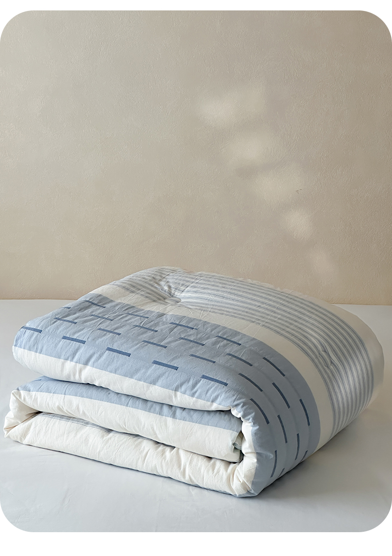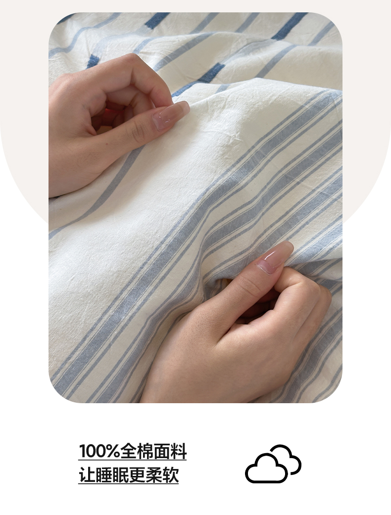 (总)一加一 2025新款全棉色织简约风艾阳绒抗菌被芯,浅兰韵律,桃之夭天,悠然时光