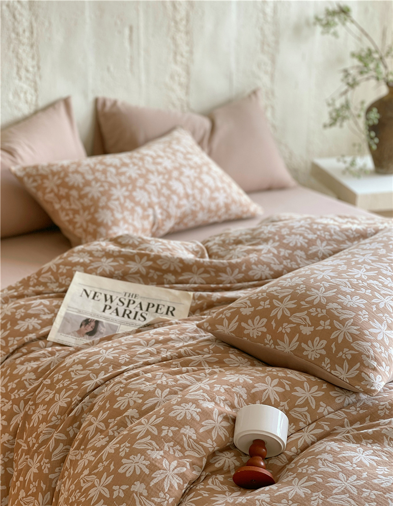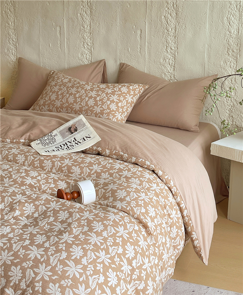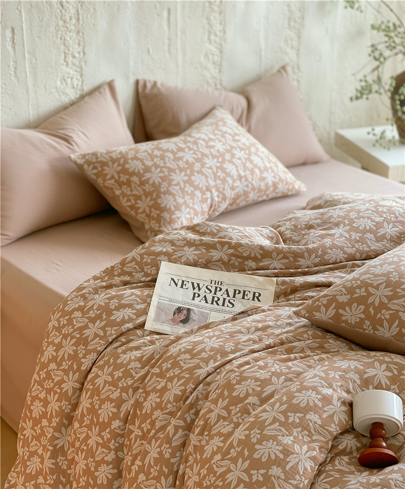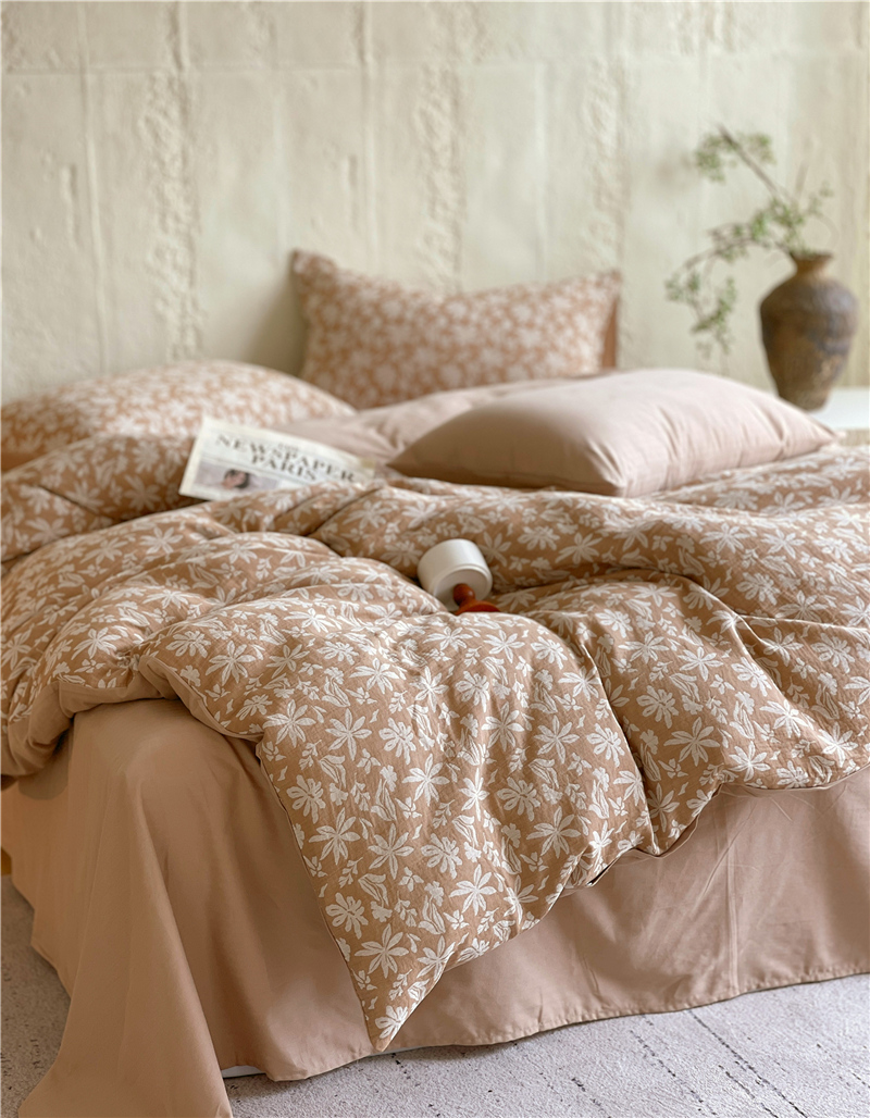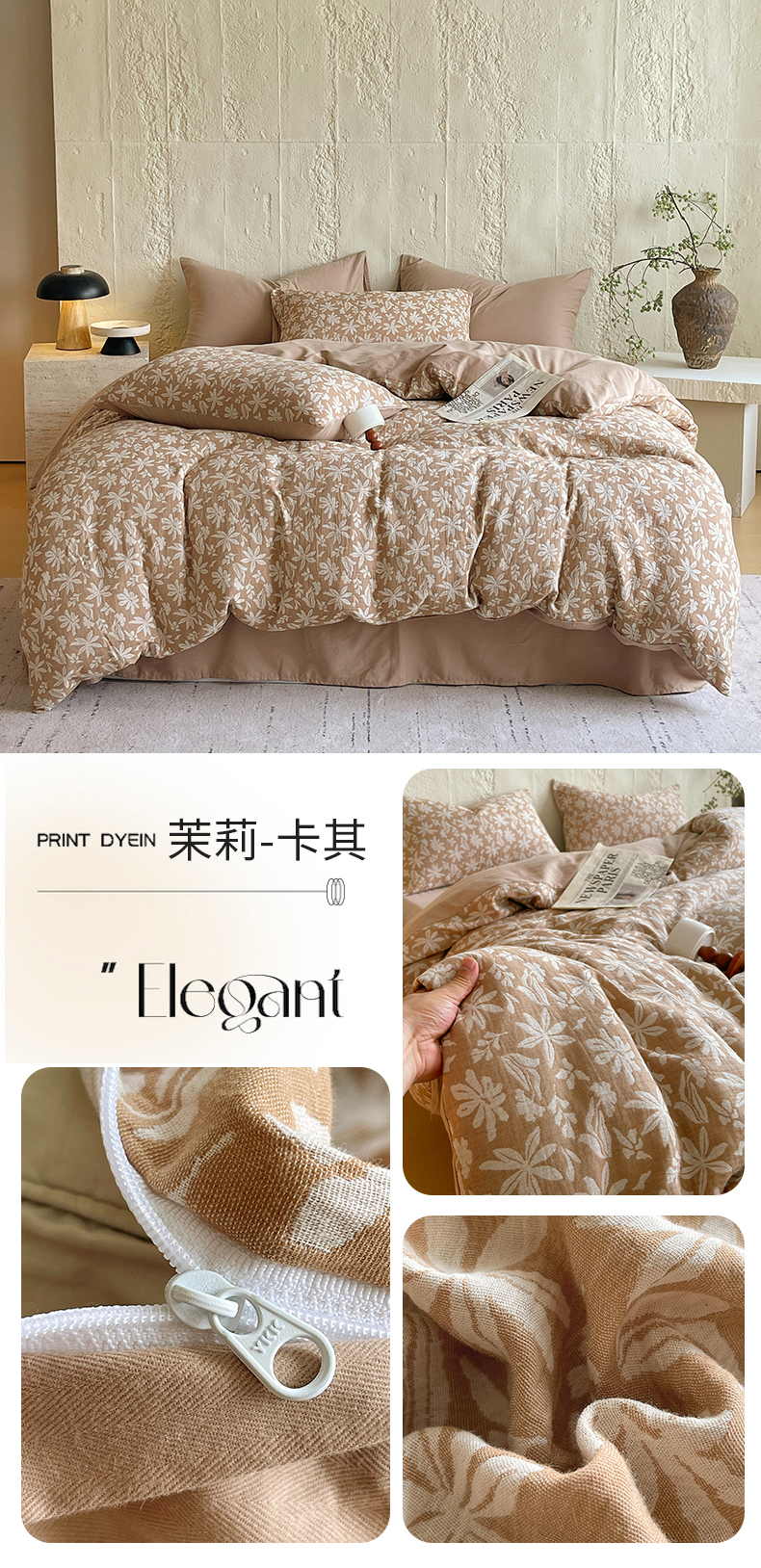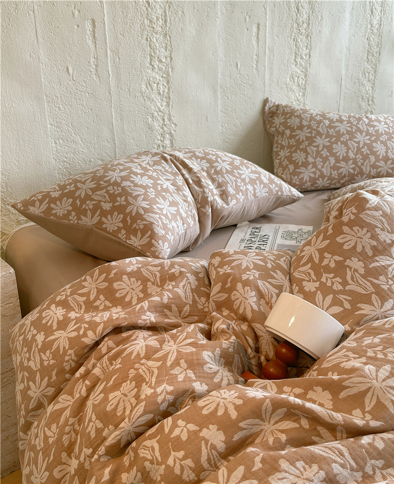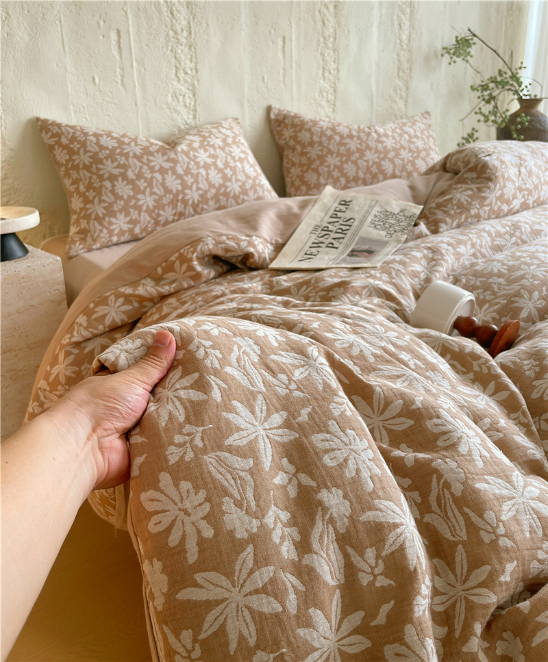 商品名称:佰亿莱 2026新款棉麻双层纱四件套 茉莉-卡其
