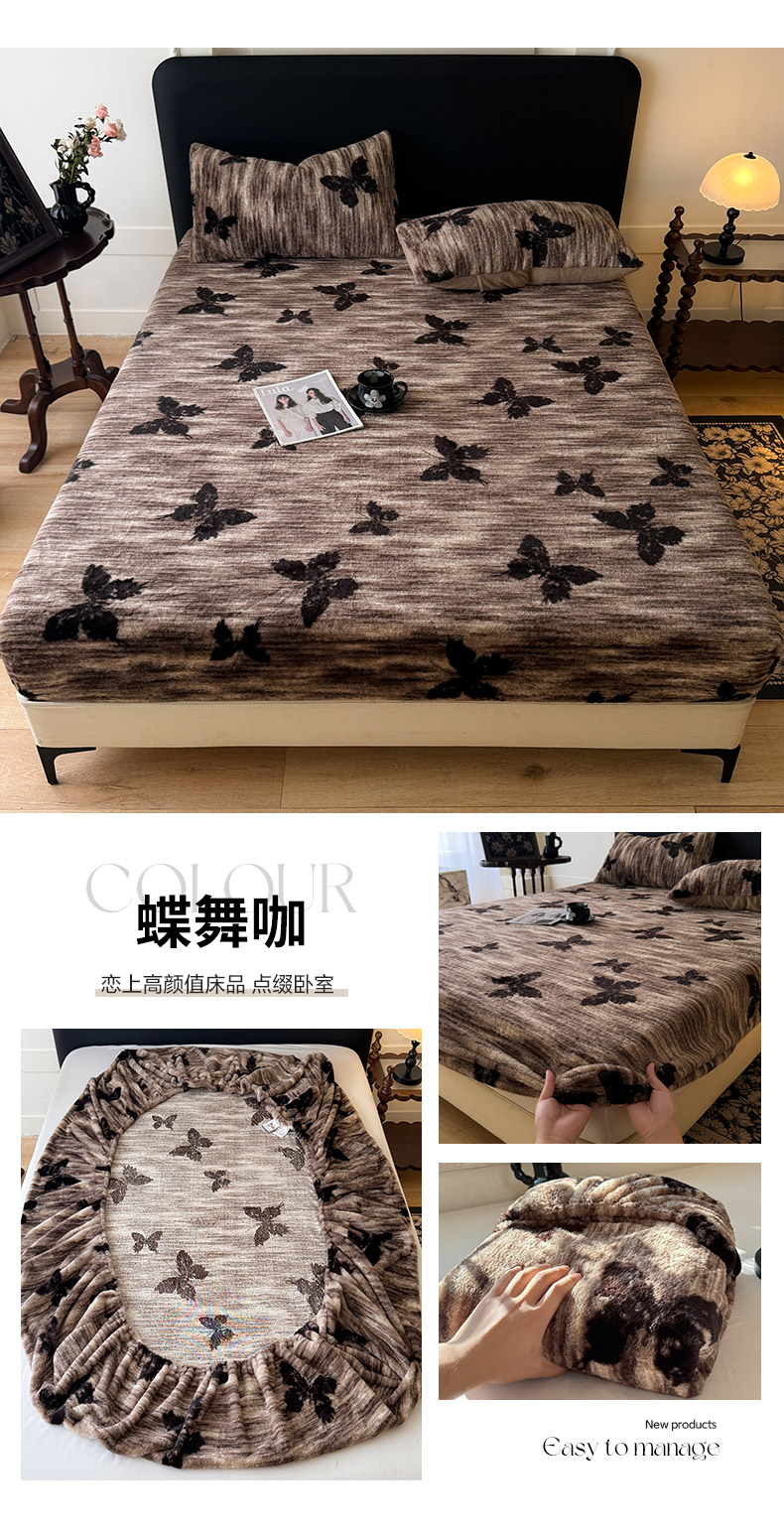商品名称:绒世界 2025秋冬加厚兔绒床笠 兔绒床笠-蝶舞咖