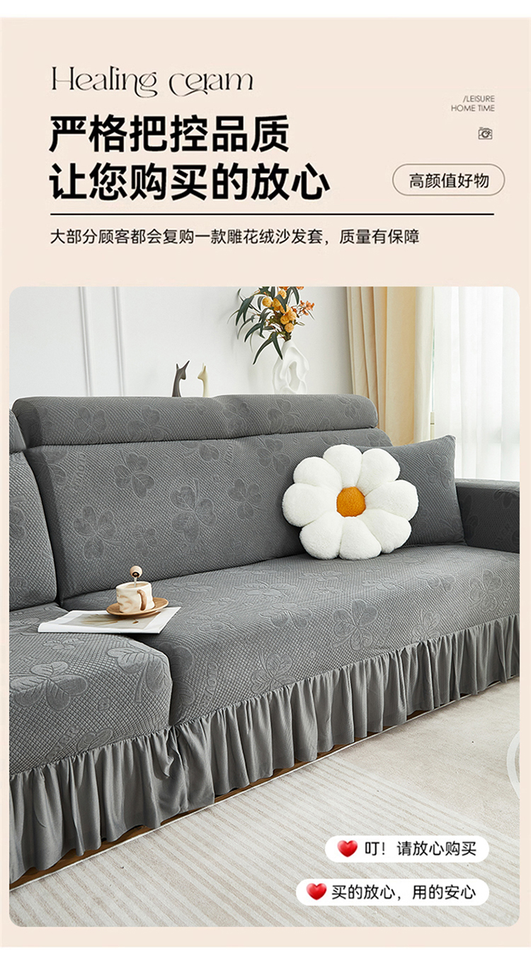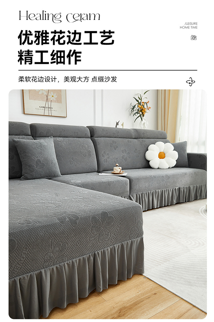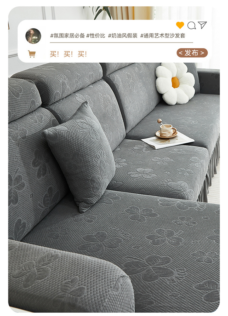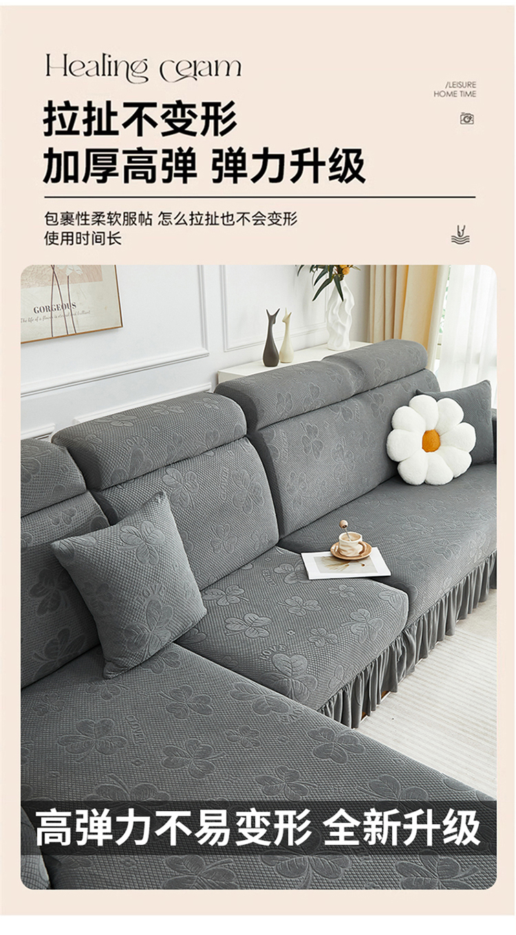 当前位置: 91家纺网 > 商品网购 > 居家布艺 > 坐垫/椅垫/沙发垫 > 沙发垫 > 千彤沙发垫 2025新款防滑防尘优雅百褶裙边全包款沙发笠沙发套罩--三叶草系列 深灰
