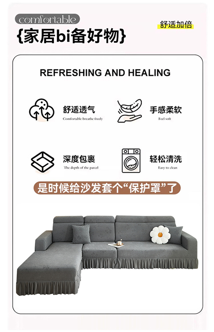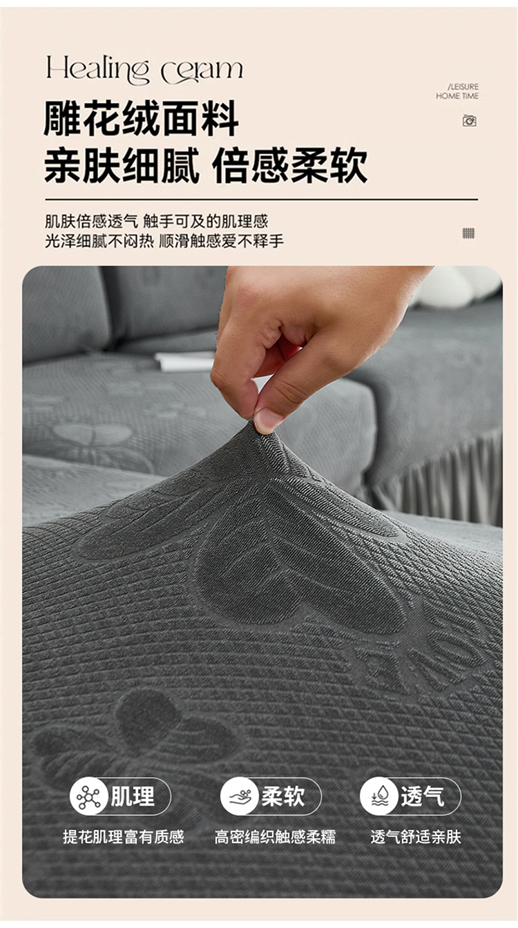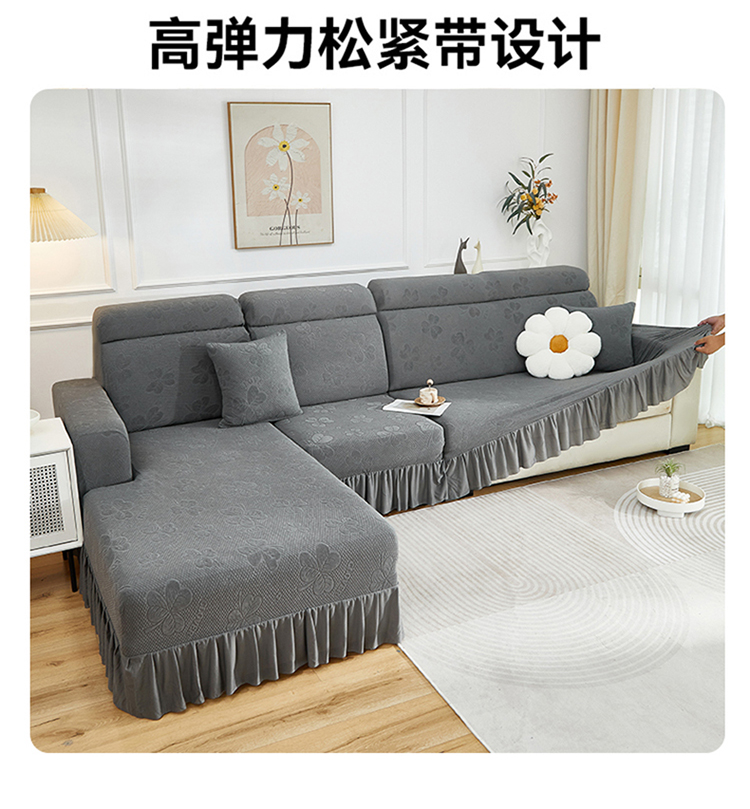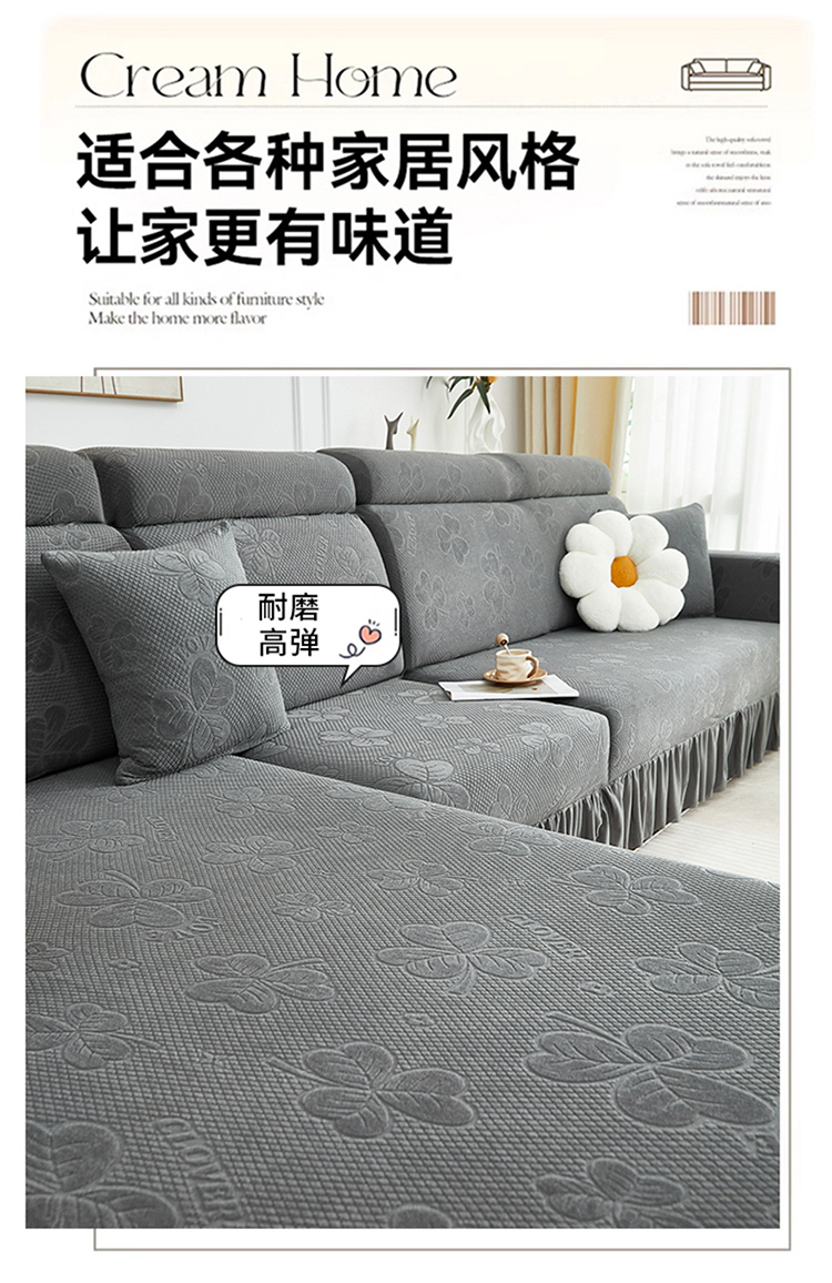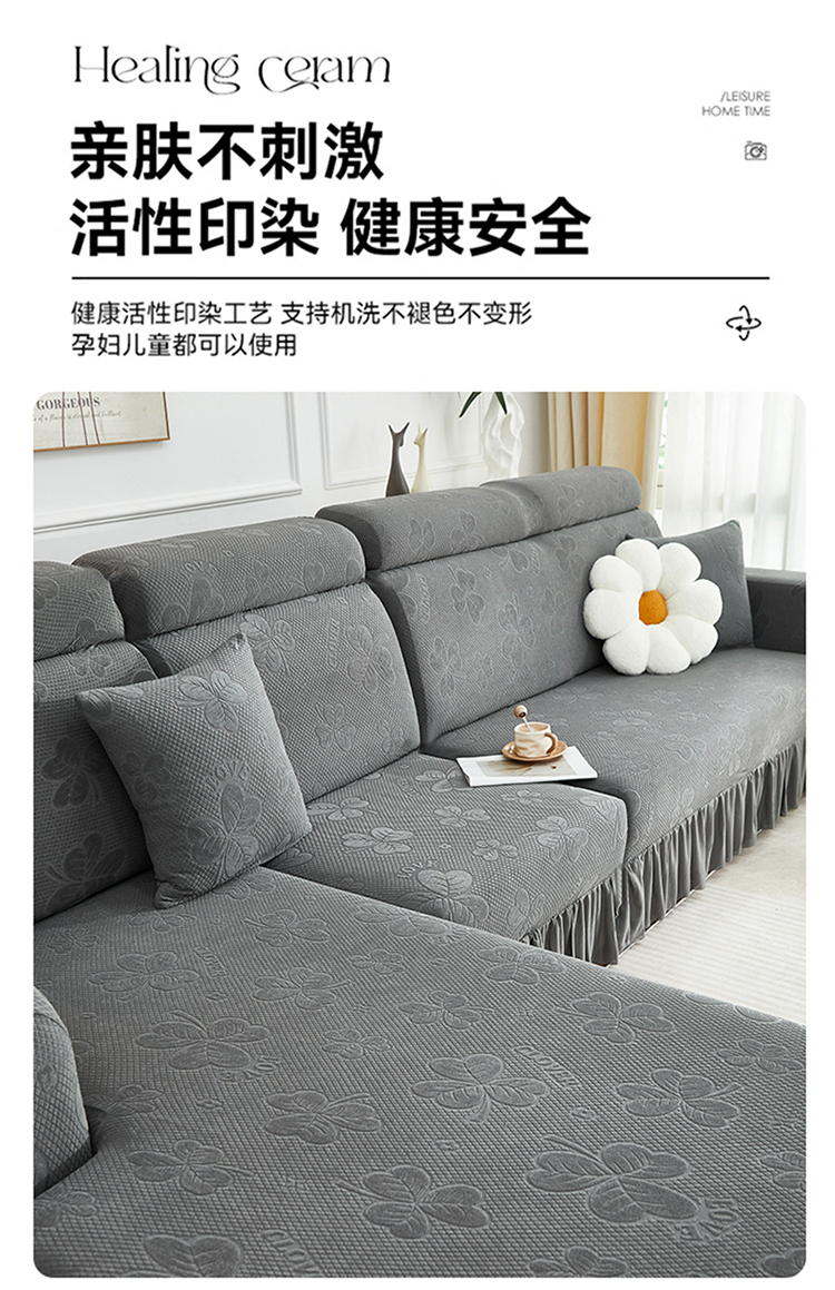 当前位置: 91家纺网 > 商品网购 > 居家布艺 > 坐垫/椅垫/沙发垫 > 沙发垫 > 千彤沙发垫 2025新款防滑防尘优雅百褶裙边全包款沙发笠沙发套罩--三叶草系列 深灰