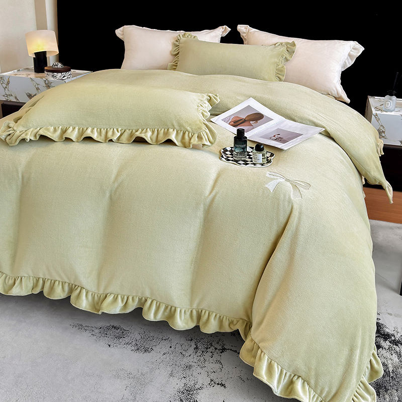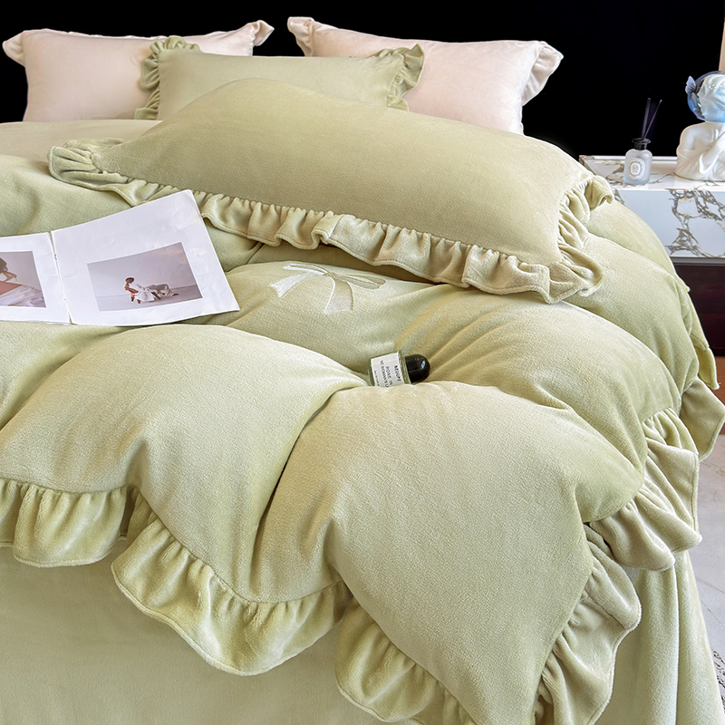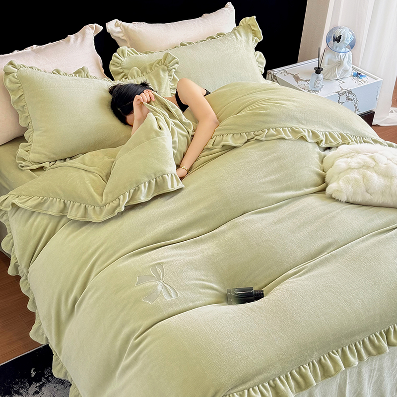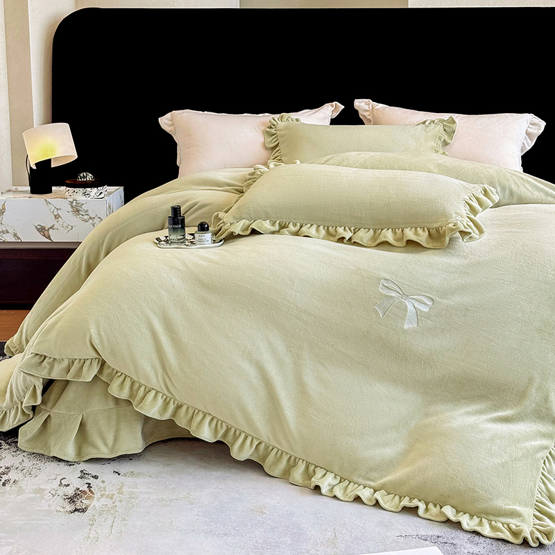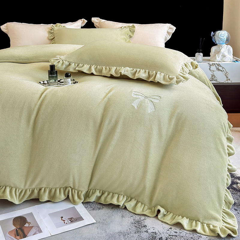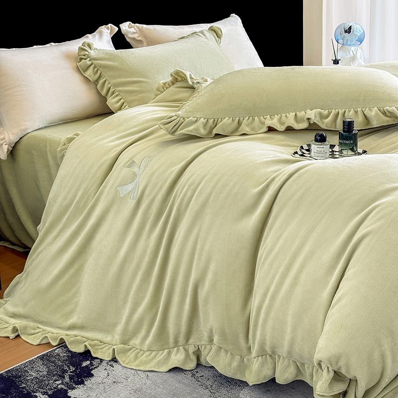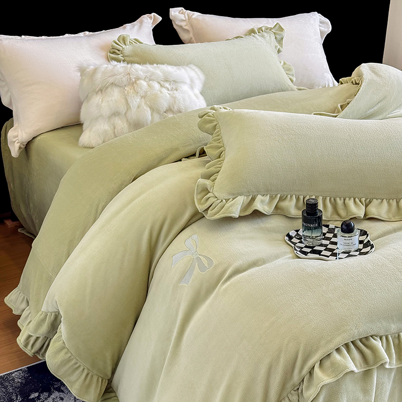 2025新款蝴蝶结绣花牛奶绒四件套 蝴蝶结-青柠绿