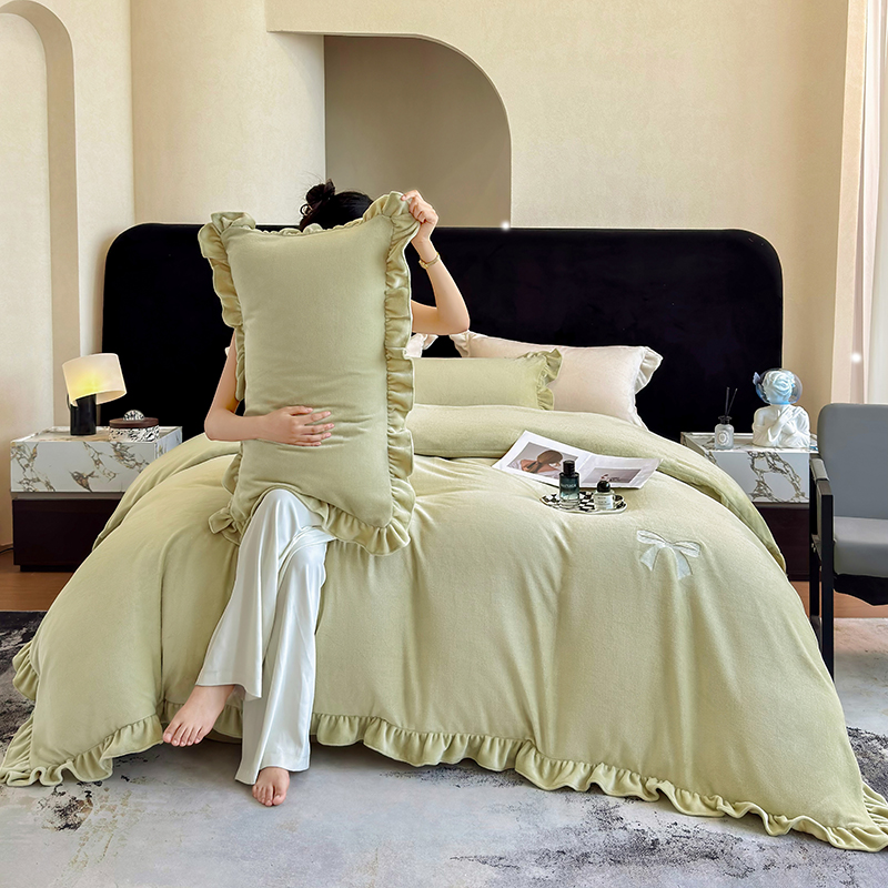 商品名称:2025新款蝴蝶结绣花牛奶绒四件套 蝴蝶结-青柠绿