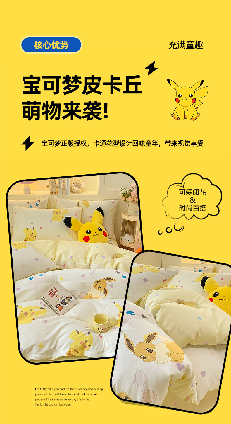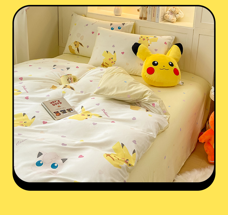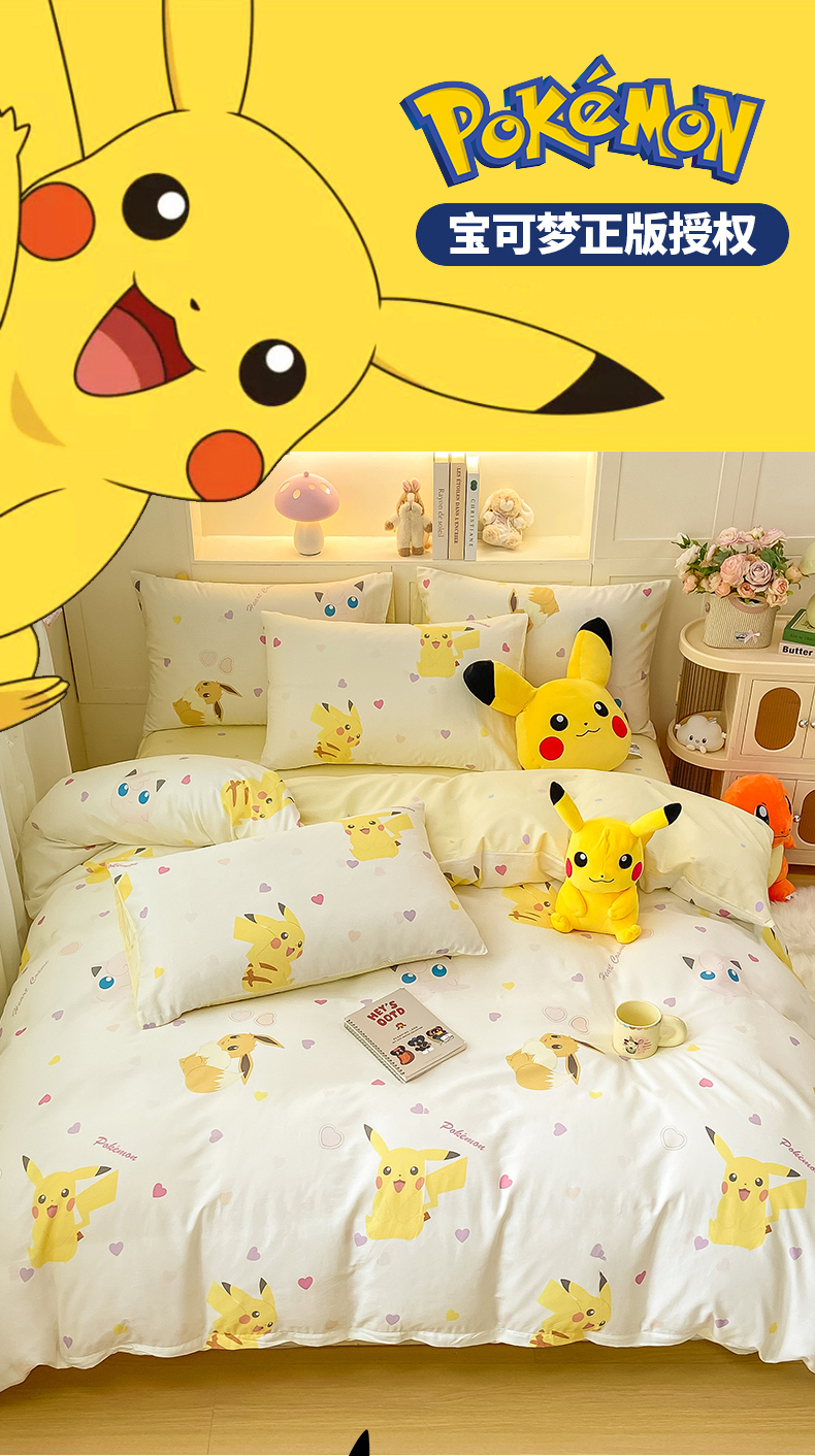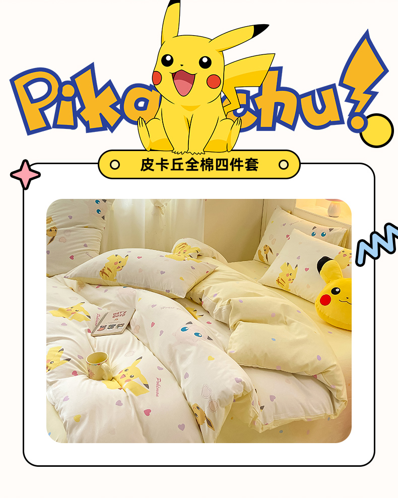 当前位置: 91家纺网 > 商品网购 > 床品套件 > 四件套 > 全棉普通四件套 > 博雅 2025新款宝可梦皮卡丘成人床正版授权全棉四件套 小心心皮卡丘