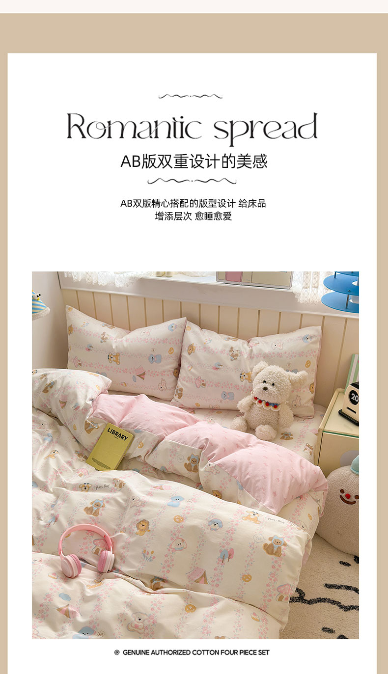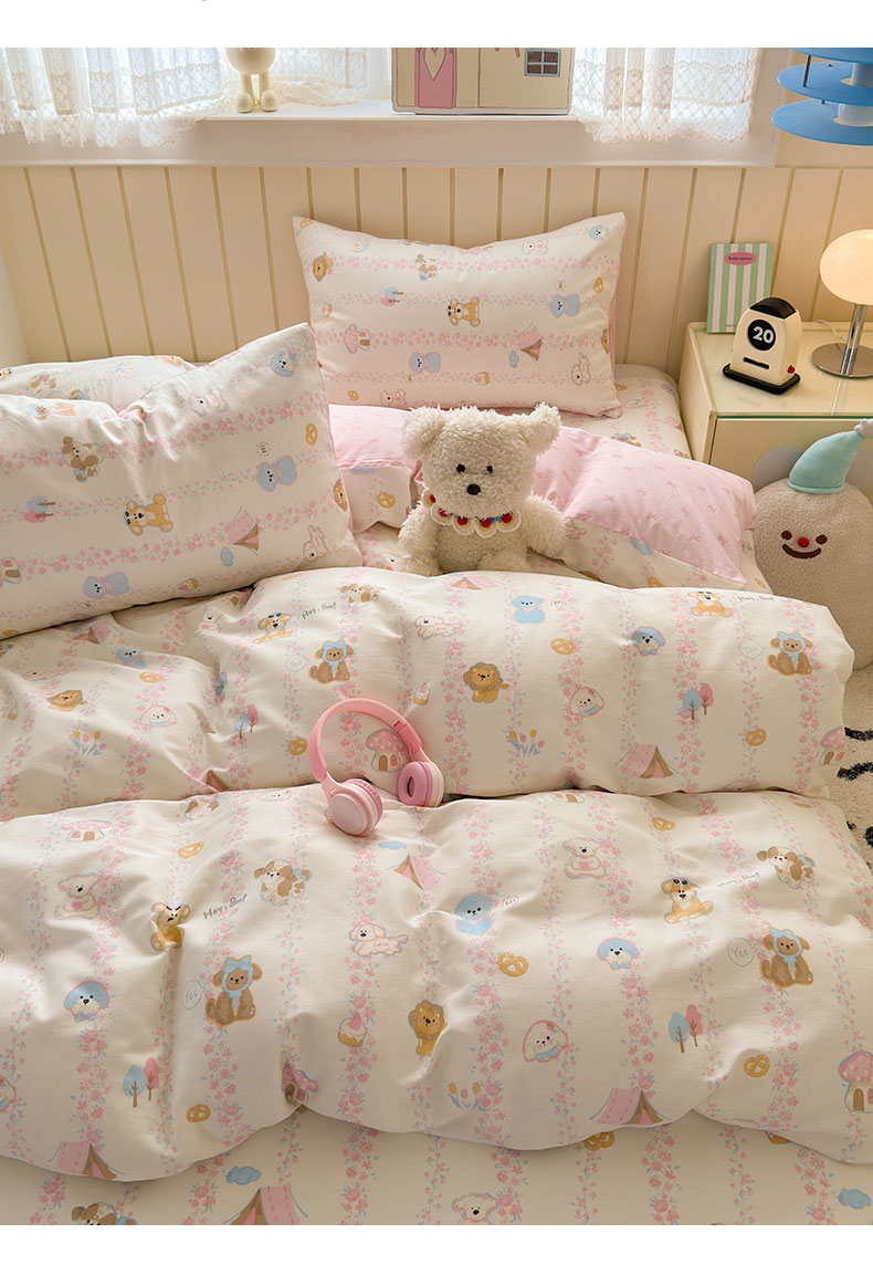 当前位置: 91家纺网 > 商品网购 > 床品套件 > 四件套 > 全棉普通四件套 > 典曼家纺 2025新款40支学生季卡通印花四件套 可爱多