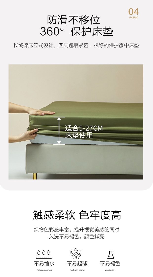 商品名称:柔觉家纺 柔系列A类100支单品床笠 香草色