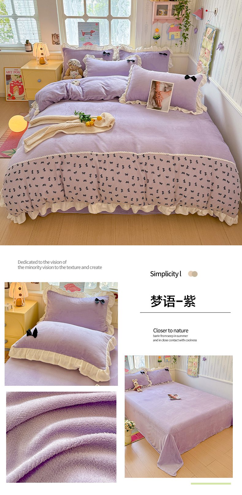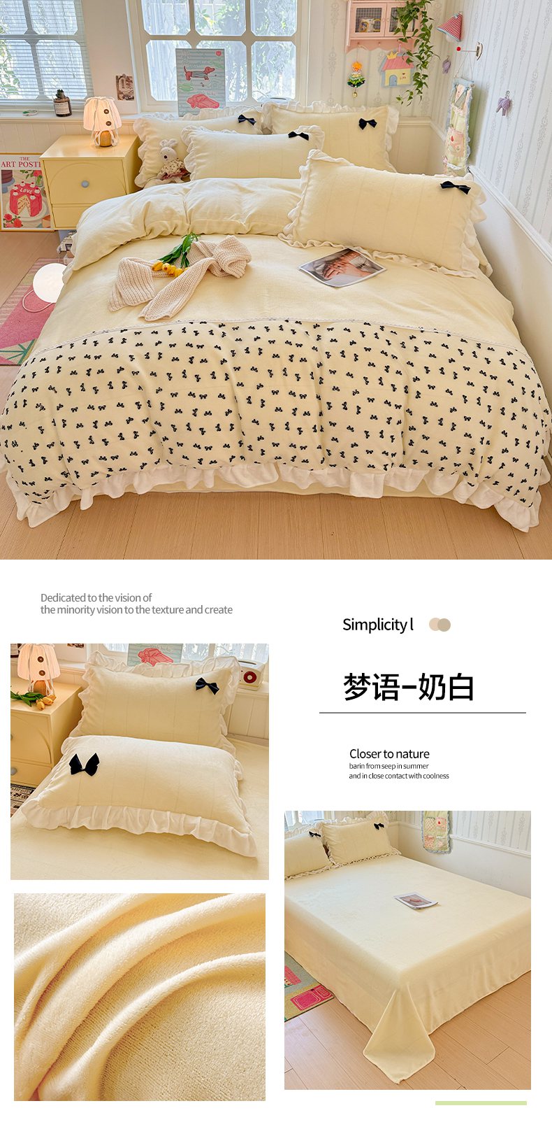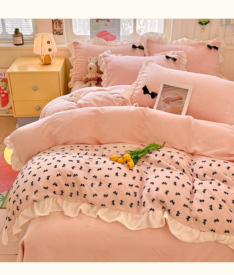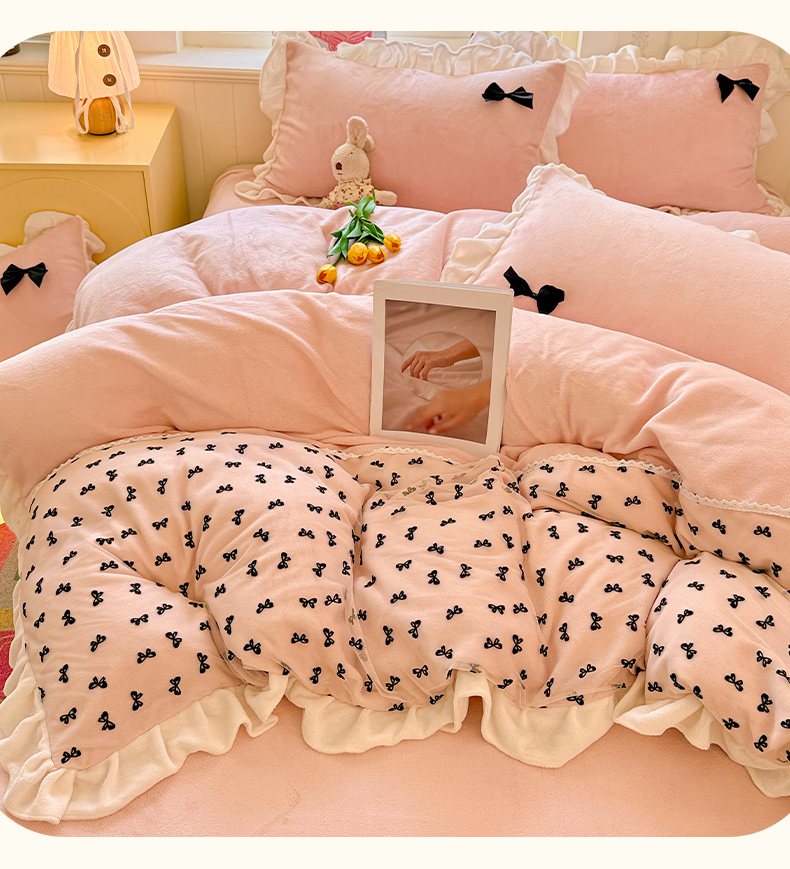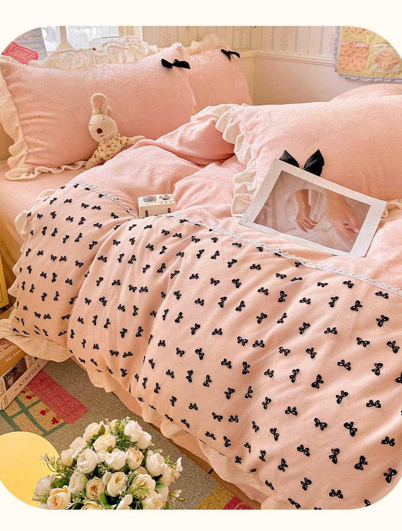 当前位置: 91家纺网 > 商品网购 > 床品套件 > 四件套 > 法莱绒四件套 > 梦之岛 2025新款韩版蝴蝶蕾丝花边牛奶绒四件套-梦语 梦语-玉