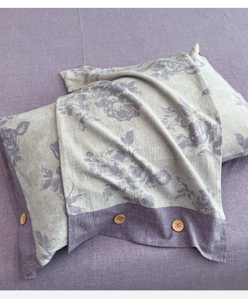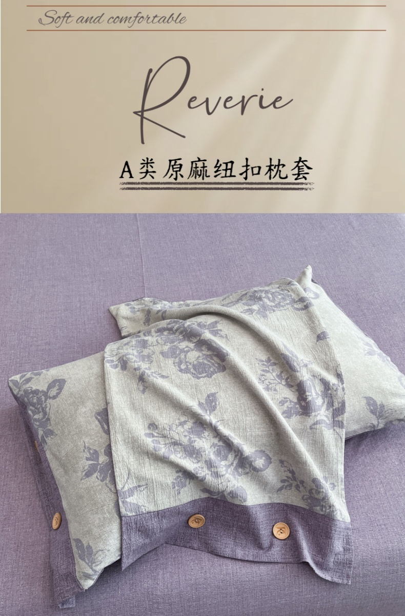 商品名称:梦舒羽 2025新款原麻纽扣枕套宿舍单人单只枕芯套枕头套枕芯内胆套一对装 古堡花园-紫