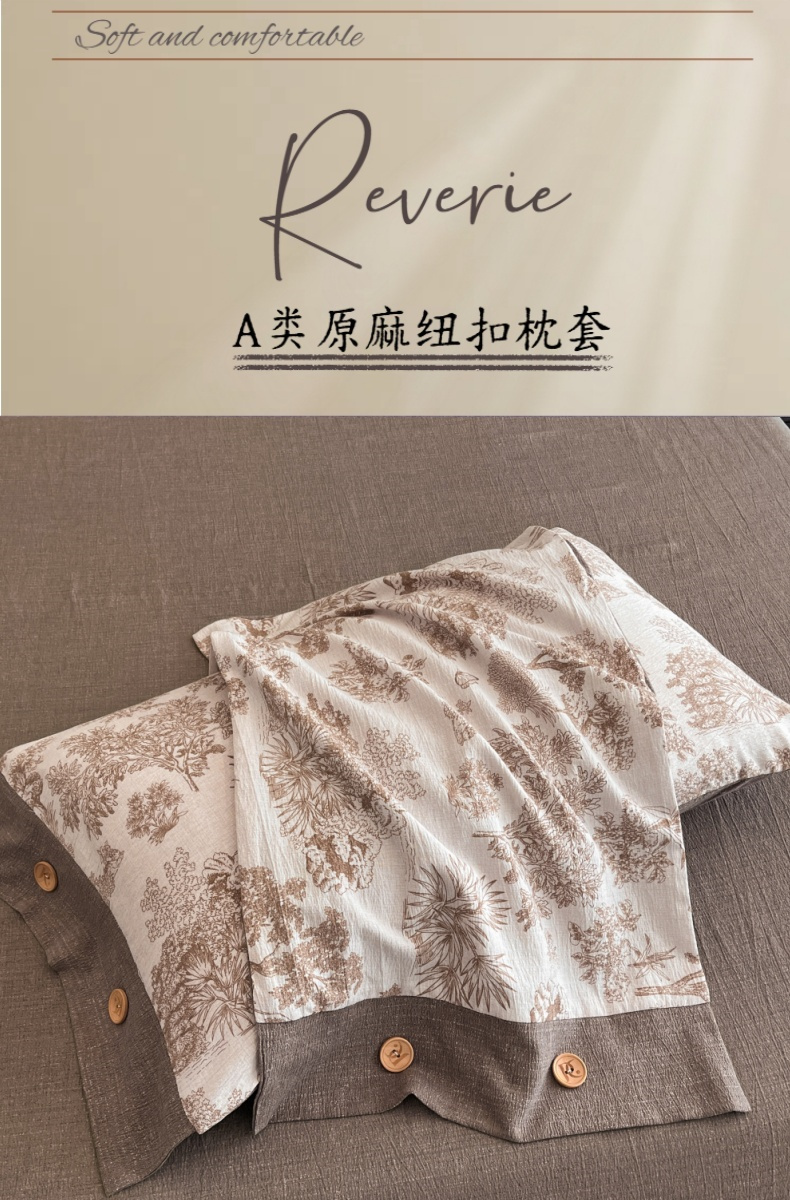 商品名称:梦舒羽 2025新款原麻纽扣枕套宿舍单人单只枕芯套枕头套枕芯内胆套一对装 水木年华