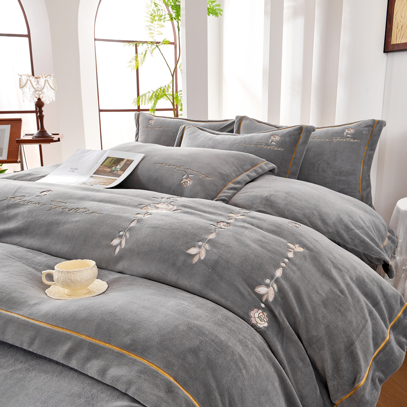 (总)慕克斯 2024新款牛奶绒绣花四件套-郁金香,郁金香宝石蓝,郁金香米色,郁金香紫色,郁金香玉色,郁金香驼色,郁金香抹茶绿,郁金香高级灰,郁金香豆沙红