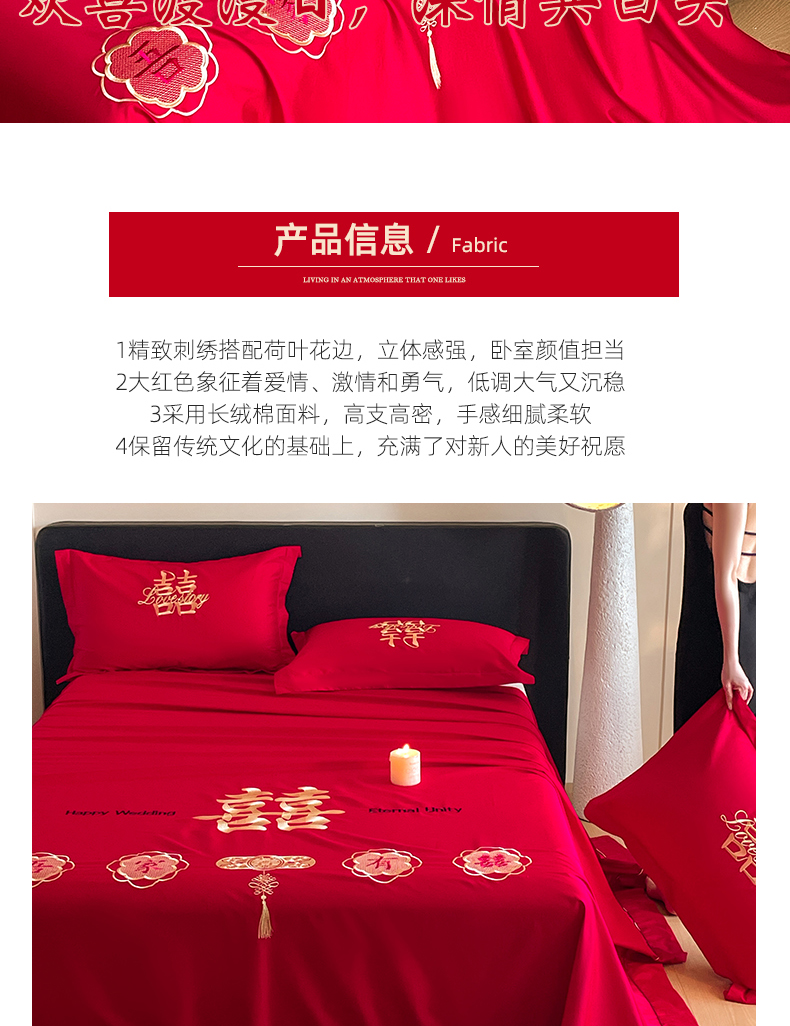 • 91家纺网 家纺一手货源 找家纺 (总)玉雅家纺 2025新款100支长绒棉刺绣婚庆床单单件绣花三件套,长绒棉床单-情定,长绒棉床单-如意双喜,长绒棉床单-喜上加喜,长绒棉床单-永结同心