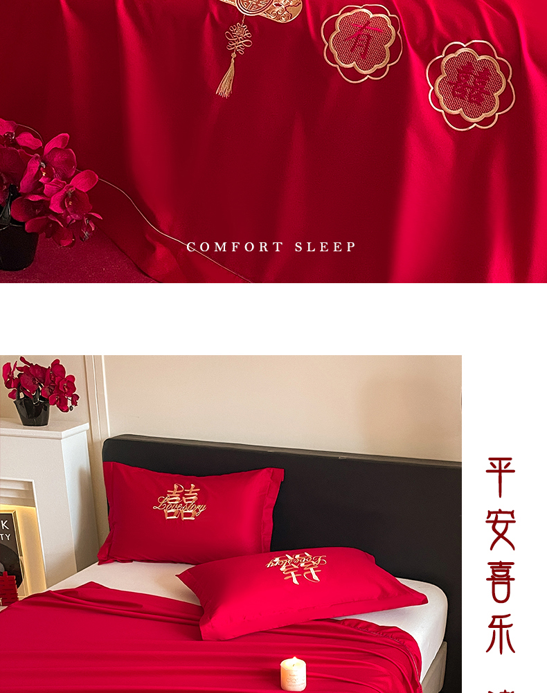 (总)玉雅家纺 2025新款丝缎亮面刺绣婚庆四件套,爱意绵绵,欢喜余生,喜至,新婚喜乐