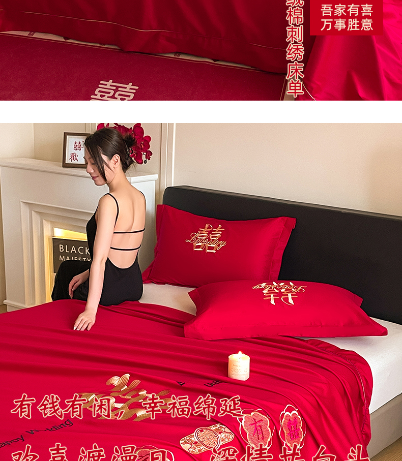 当前位置: 91家纺网 > 商品网购 > 床上用品 > 床单 > 玉雅家纺 2025新款100支长绒棉刺绣婚庆床单单件绣花三件套 长绒棉床单-喜上加喜