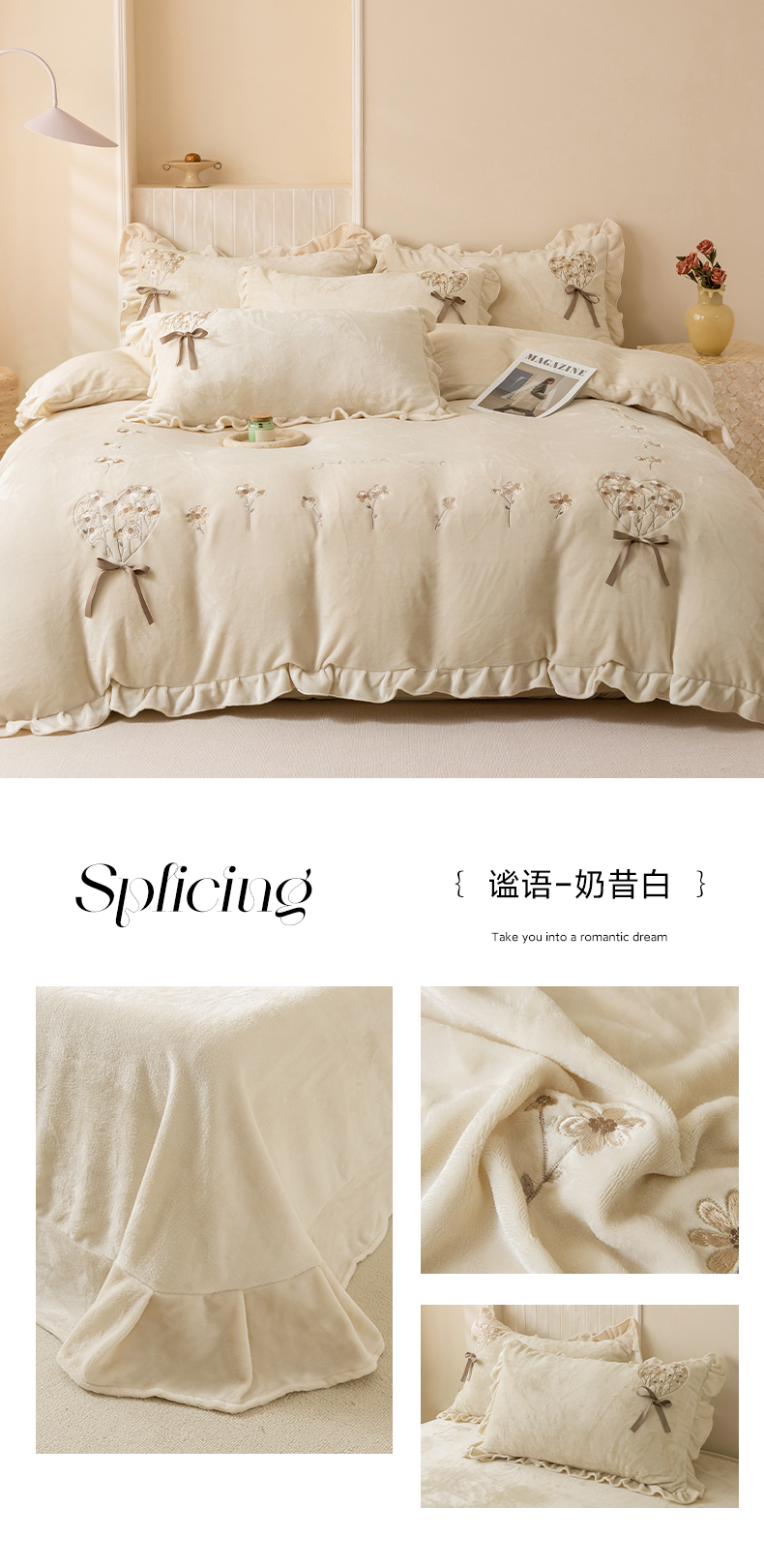 当前位置: 91家纺网 > 商品网购 > 床品套件 > 四件套 > 牛奶绒四件套 > 卡初家居(原微来) 2025新款A类秋冬亲肤牛奶绒刺绣款四件套-谧语系列(提供买家秀) 谧语-轻奢粉