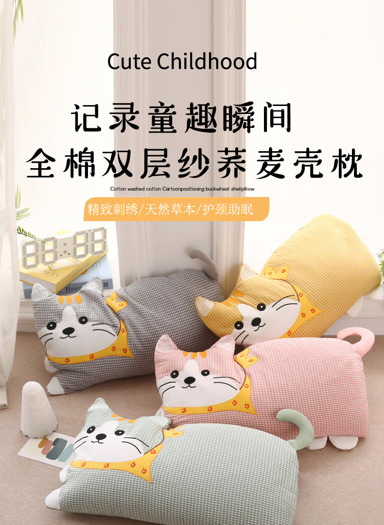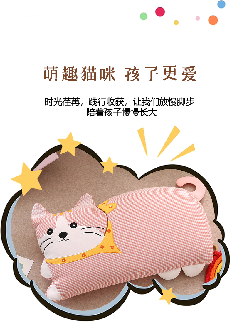 商品名称:金牛枕芯 2025新款全棉双层纱围巾猫荞麦枕儿童宝宝枕枕头枕芯 围巾猫-粉