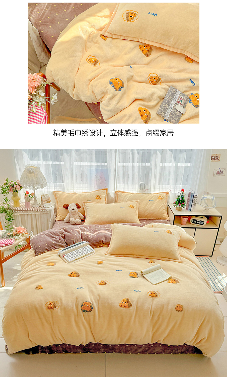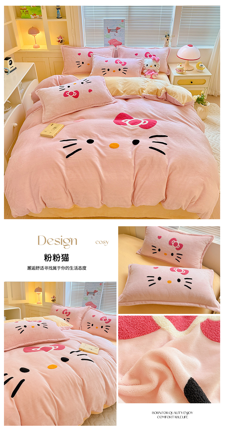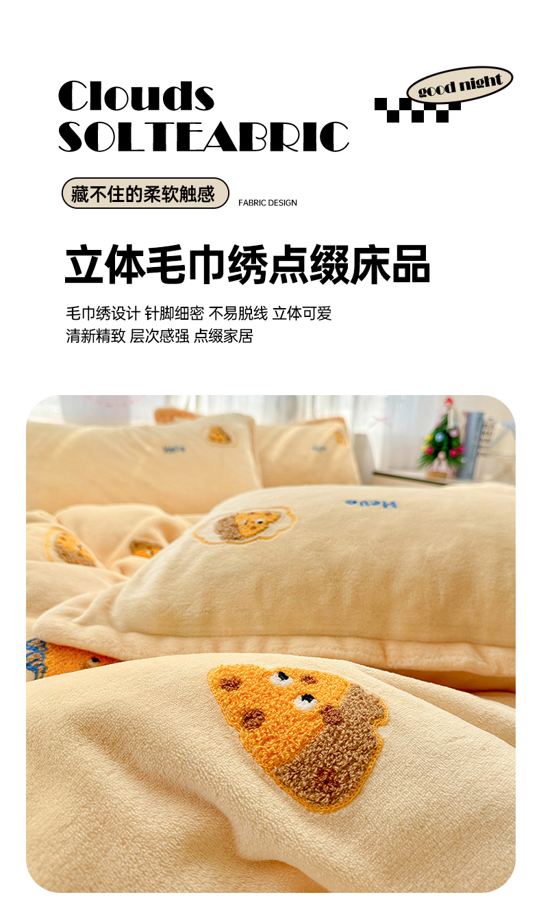 当前位置: 91家纺网 > 商品网购 > 床品套件 > 四件套 > 牛奶绒四件套 > KT猫直营店 2025新款高克重大版毛巾绣牛奶绒卡通四件套 芝士面包仔