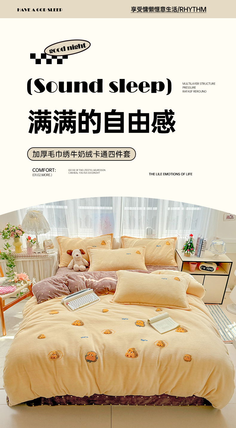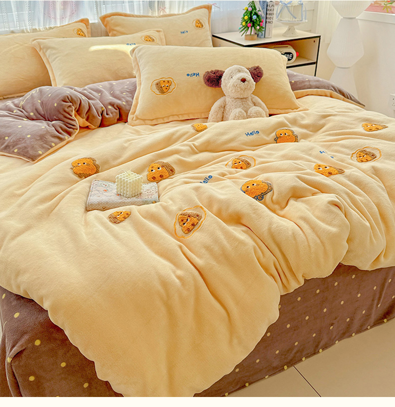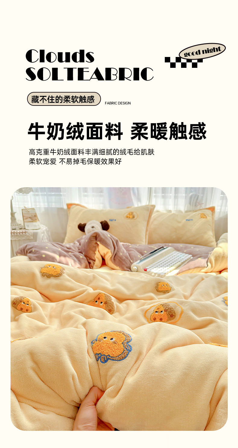 当前位置: 91家纺网 > 商品网购 > 床品套件 > 四件套 > 牛奶绒四件套 > KT猫直营店 2025新款高克重大版毛巾绣牛奶绒卡通四件套 芝士面包仔