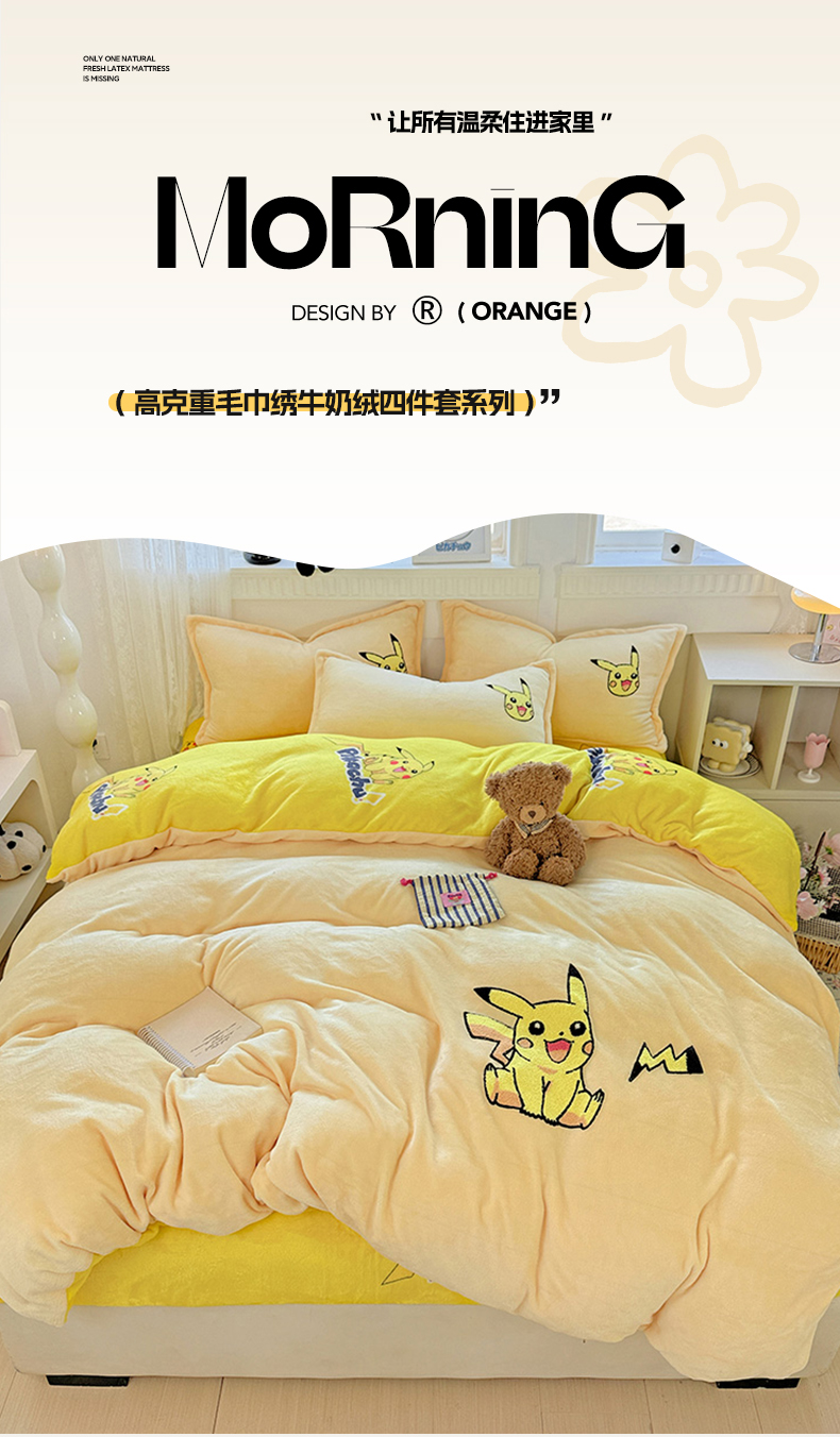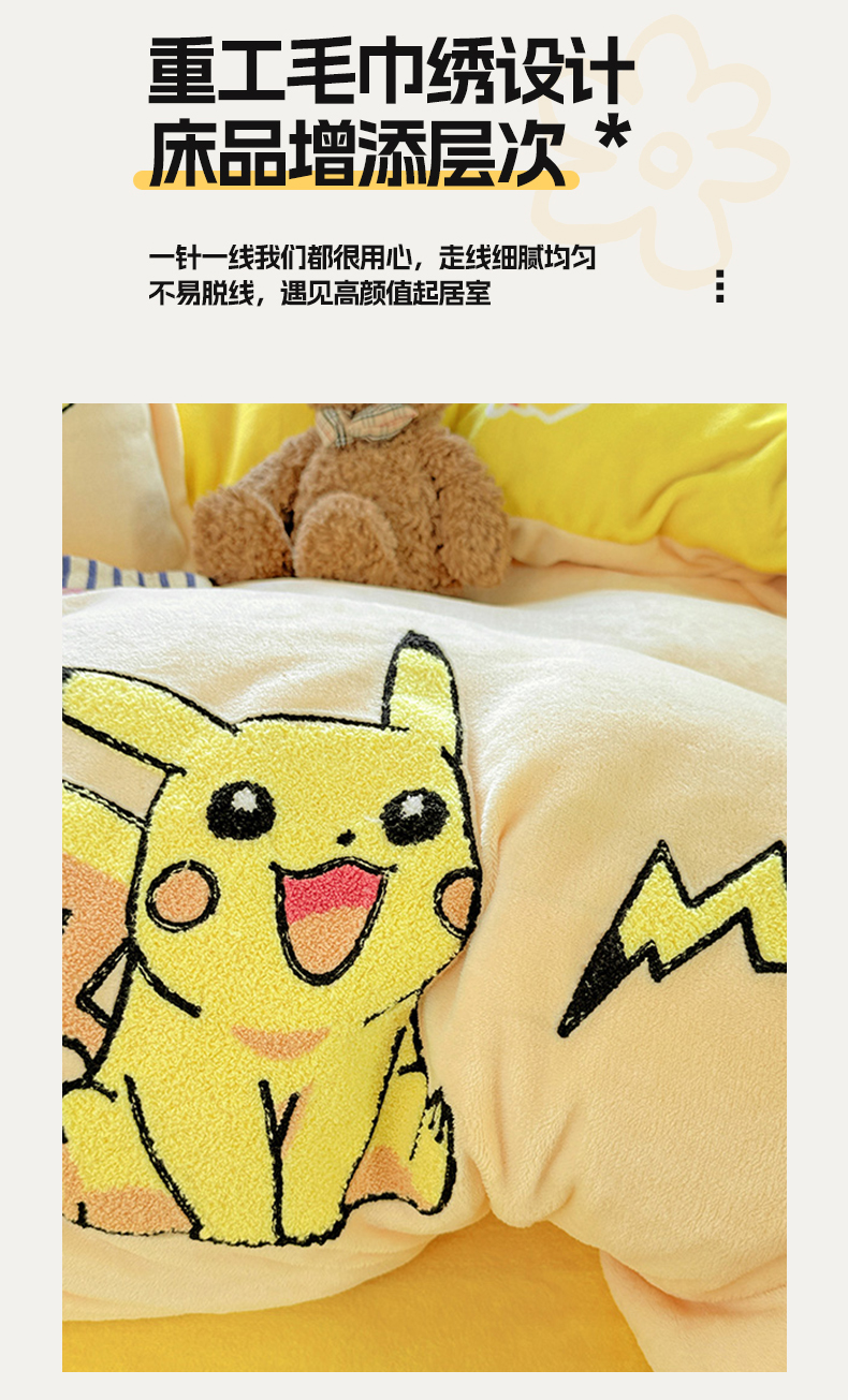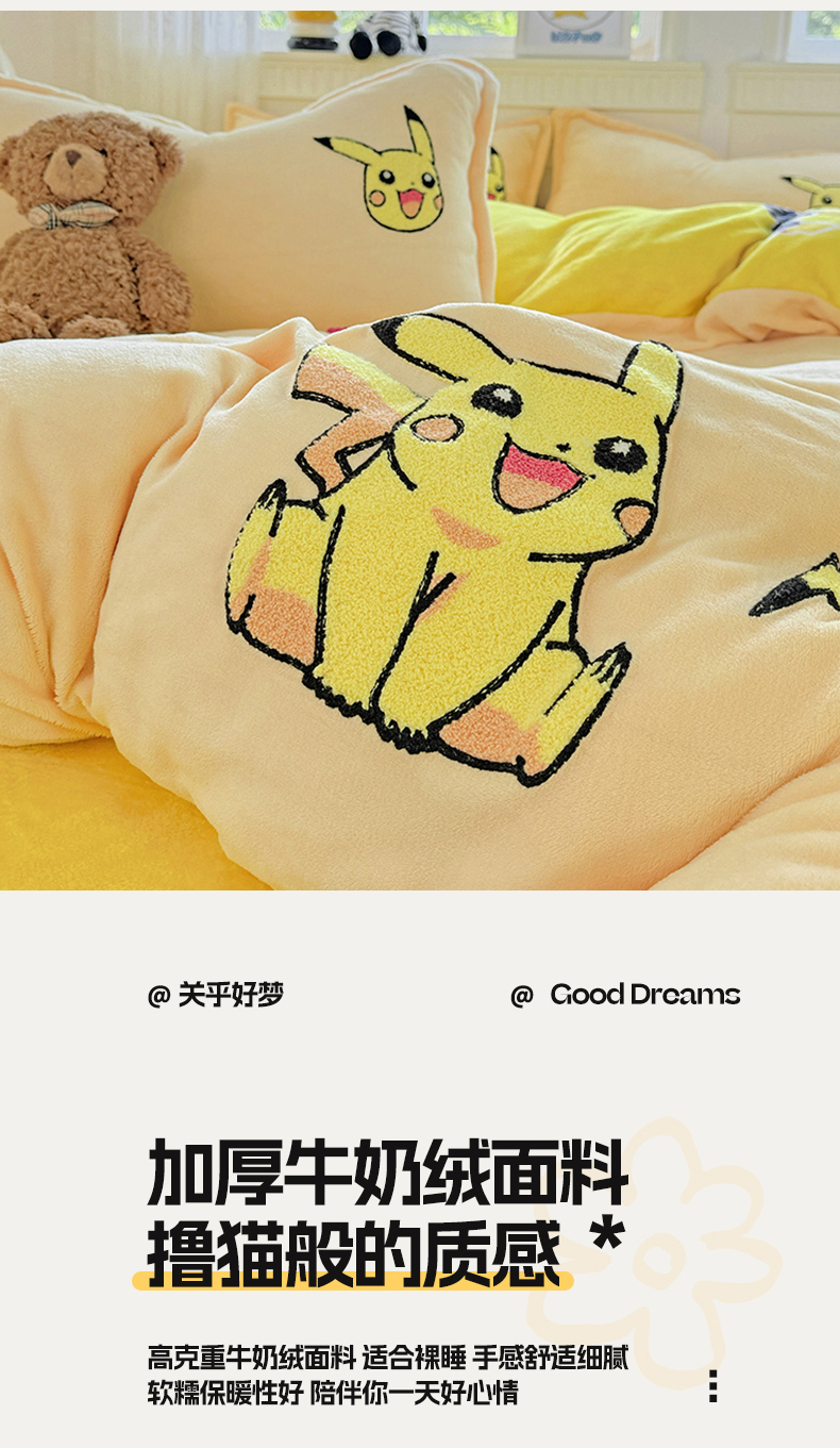 当前位置: 91家纺网 > 商品网购 > 床品套件 > 四件套 > 牛奶绒四件套 > KT猫直营店 2025新款高克重大毛巾绣牛奶绒卡通四件套 精灵皮卡