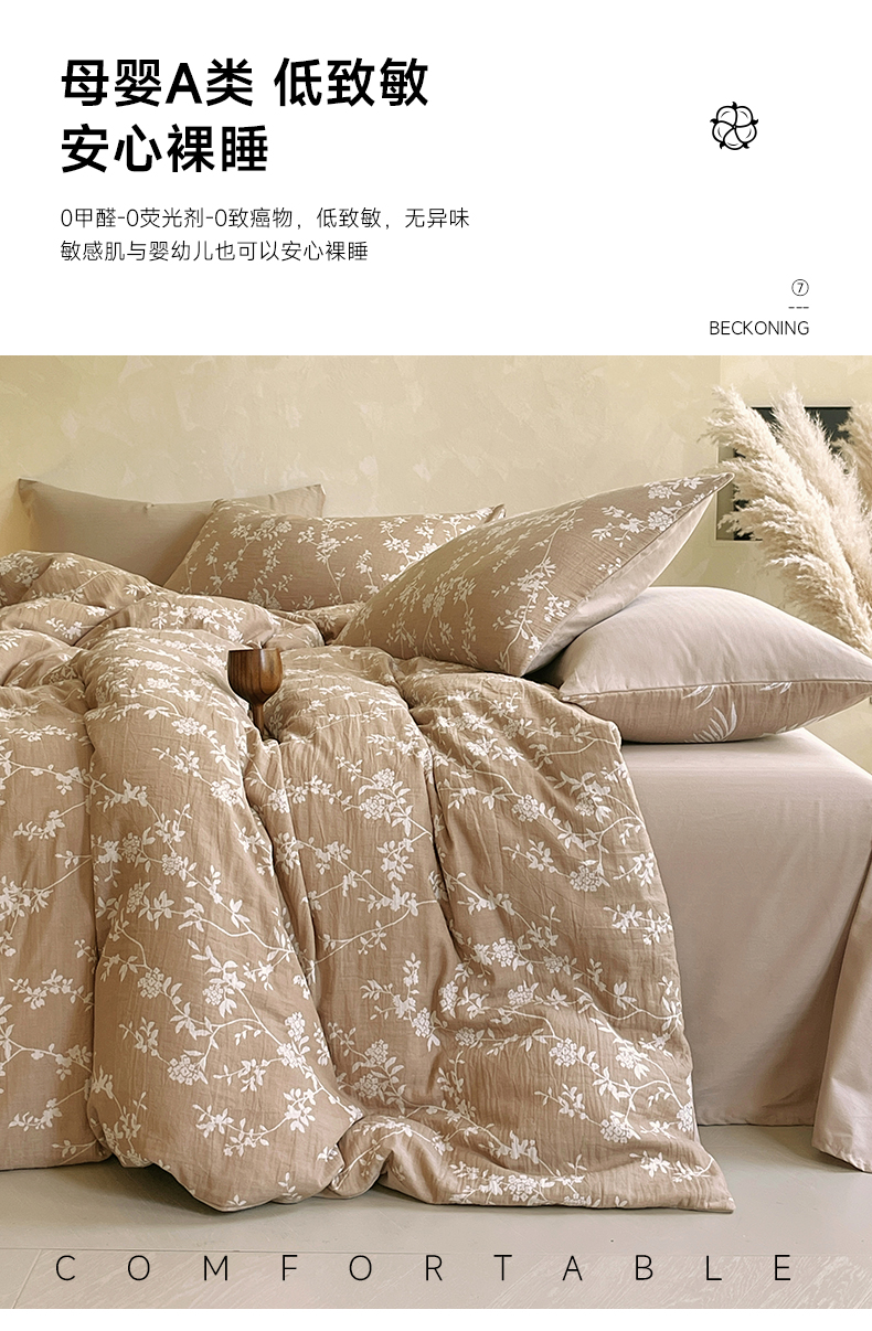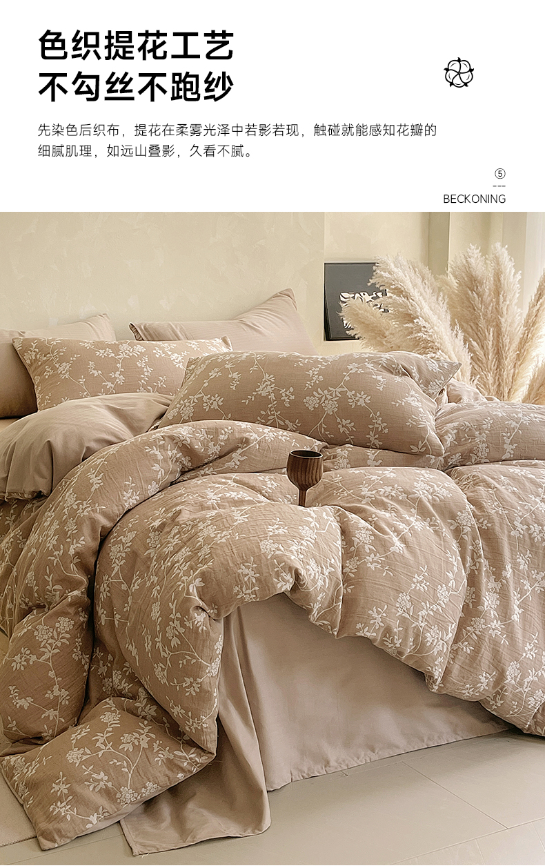 商品名称:佰亿莱 2026新款棉麻双层纱四件套第二批 夏日森林-卡其