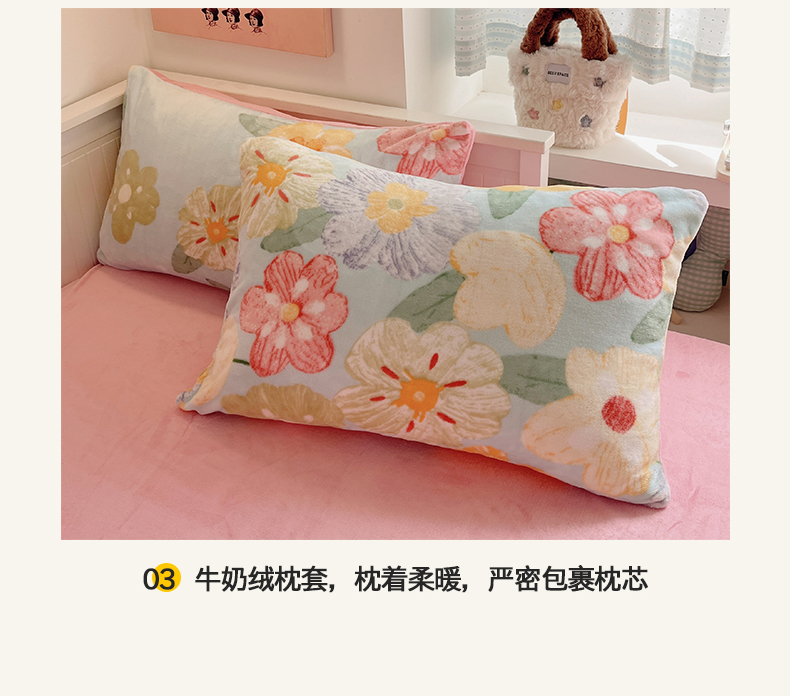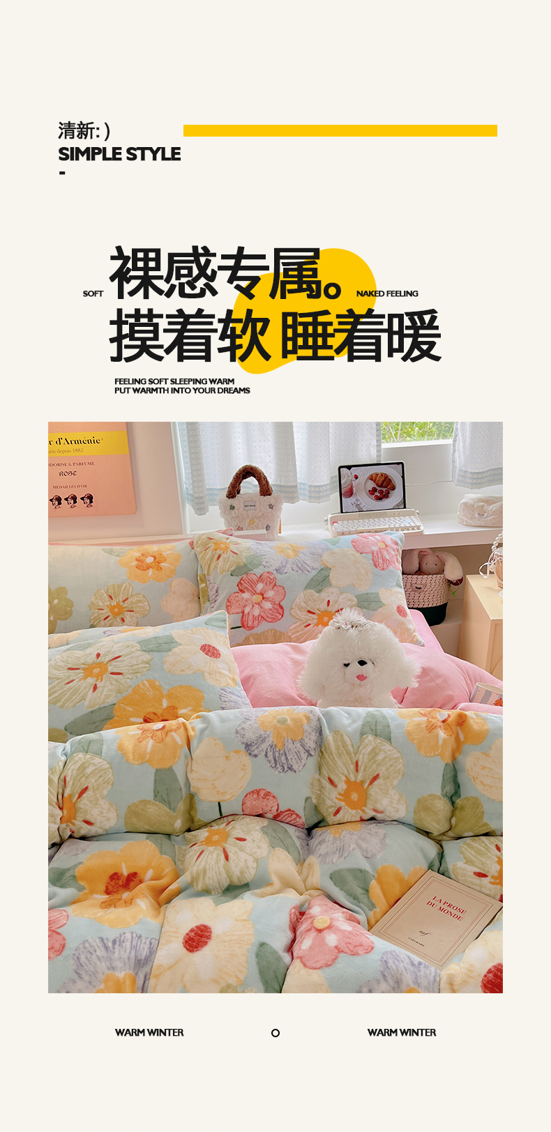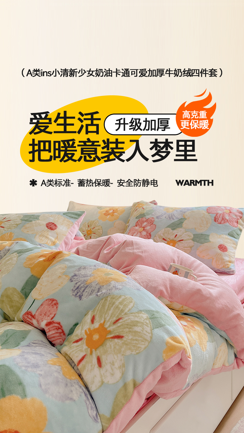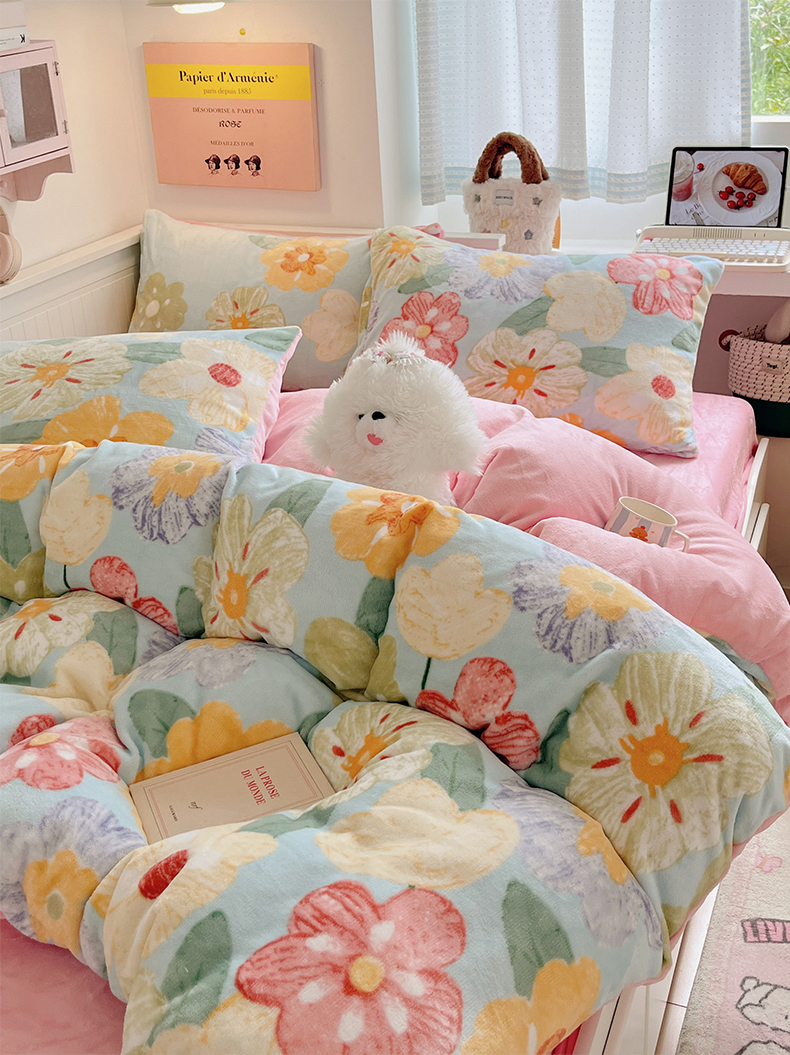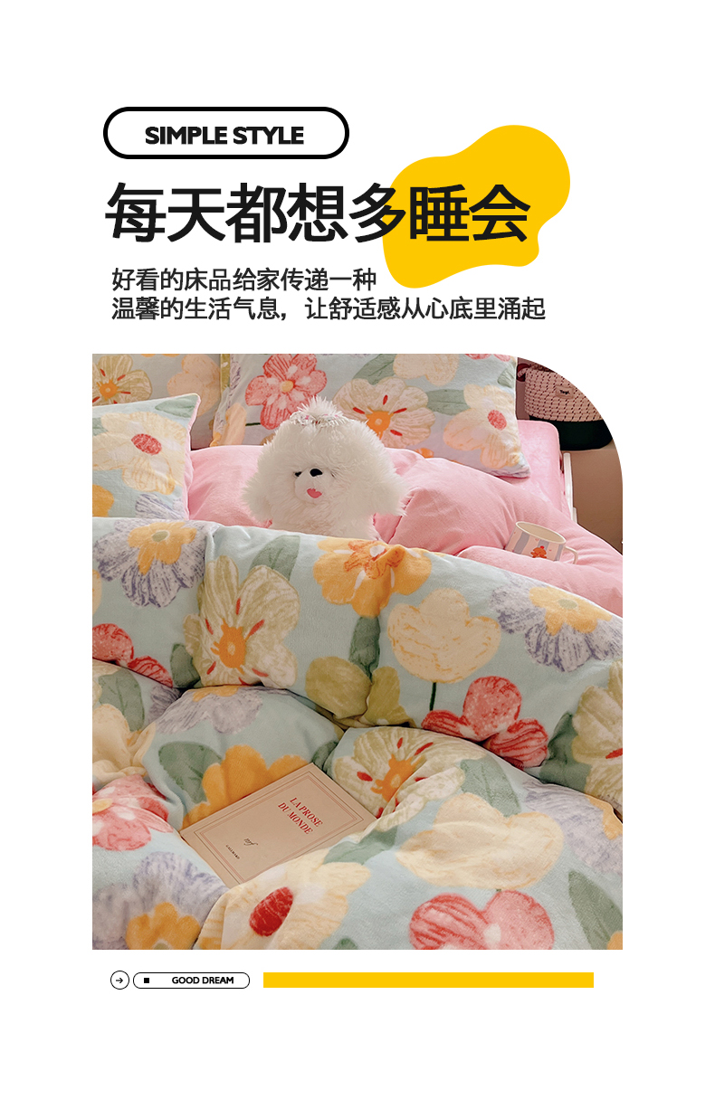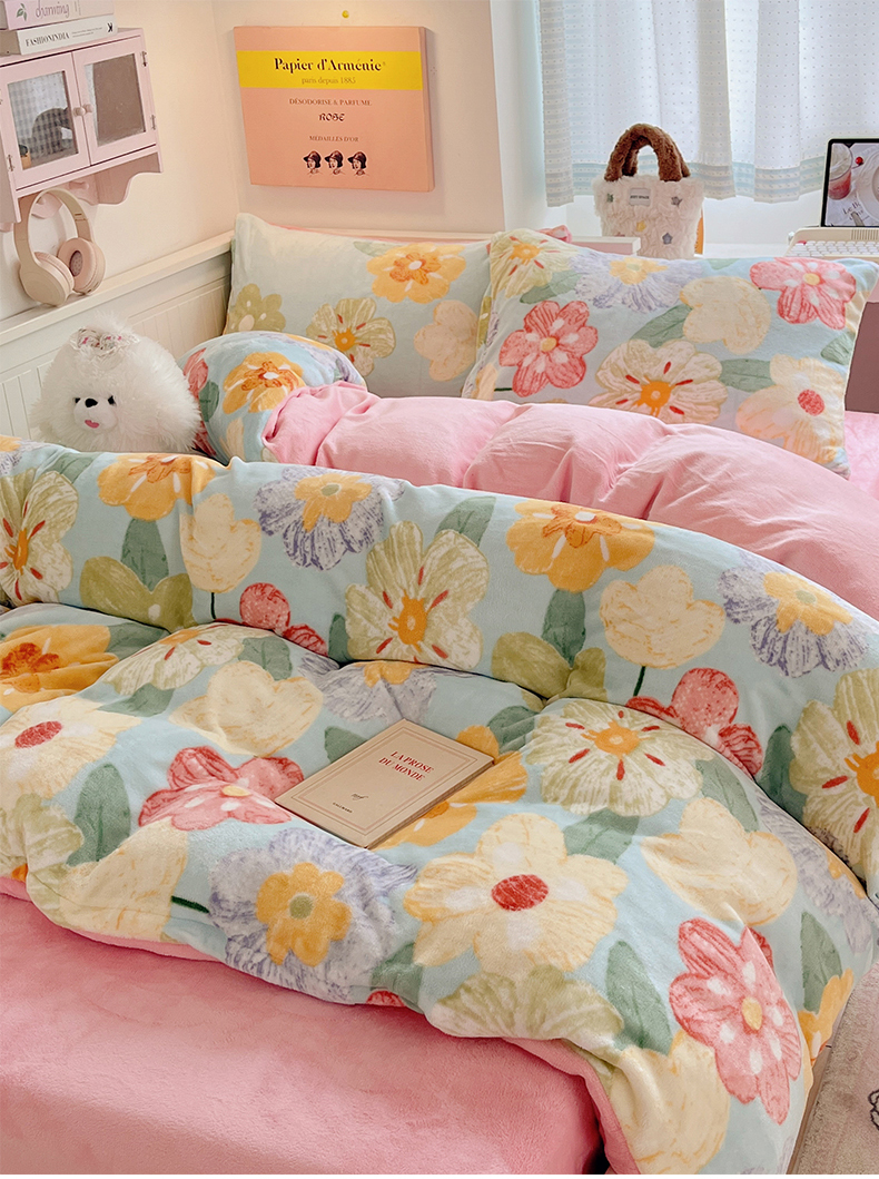 桃子家居 2025新款A类ins小清新少女奶油卡通可爱加厚牛奶绒四件套 绒-缤纷花园