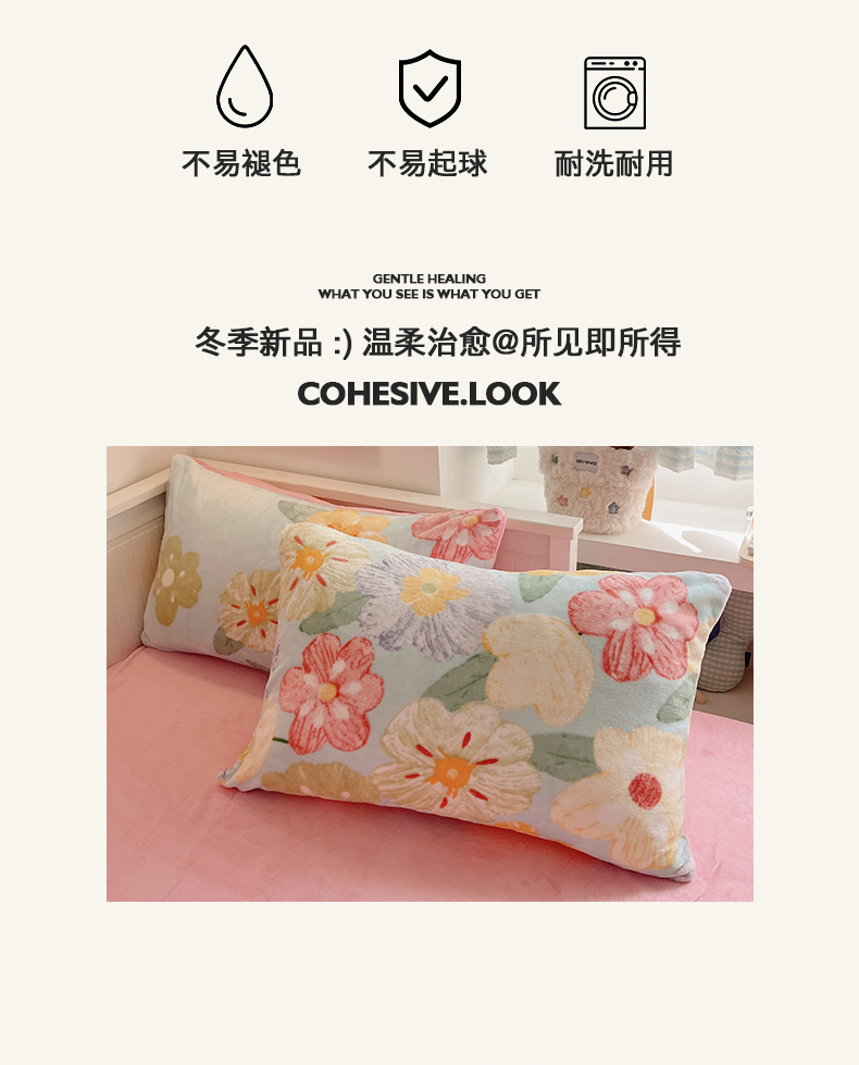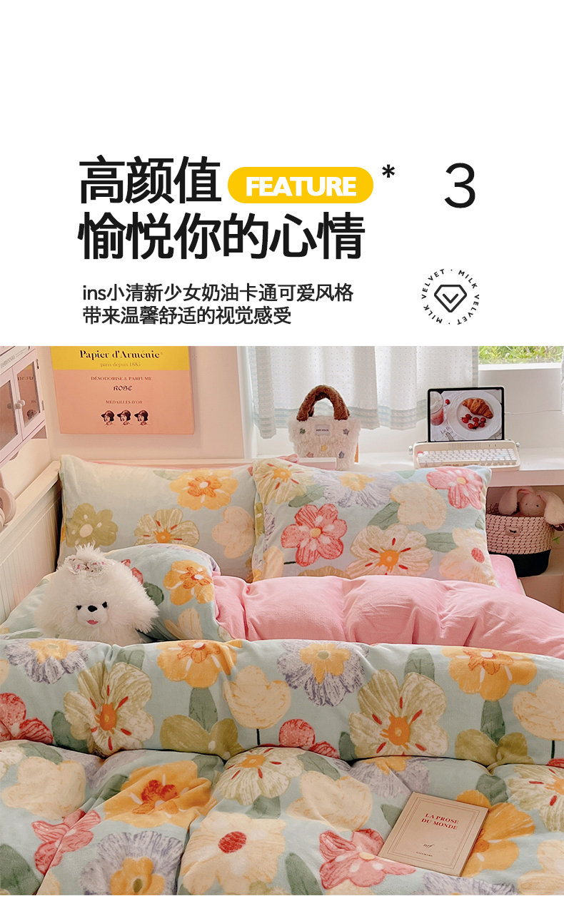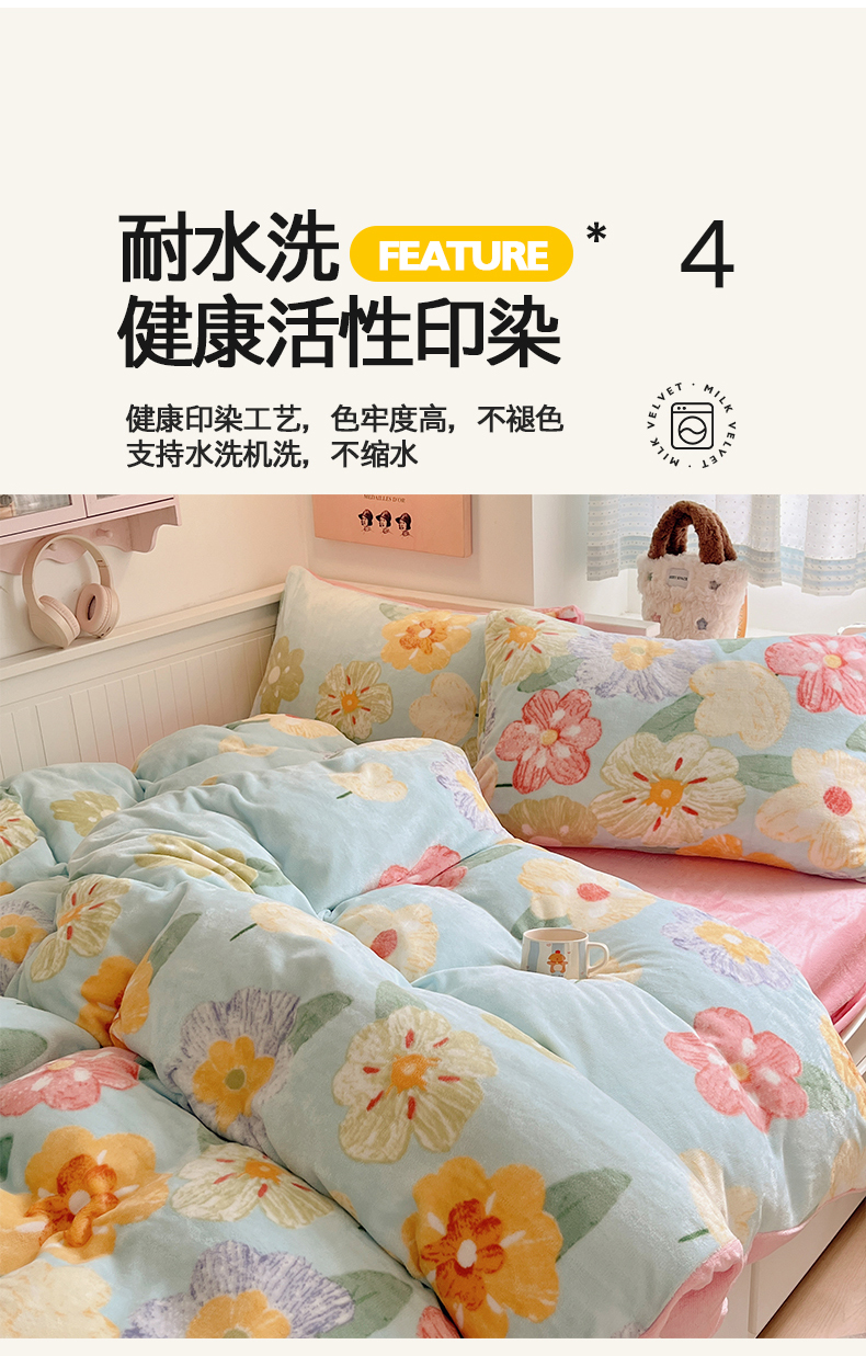 商品名称:桃子家居 2025新款A类ins小清新少女奶油卡通可爱加厚牛奶绒四件套 绒-缤纷花园