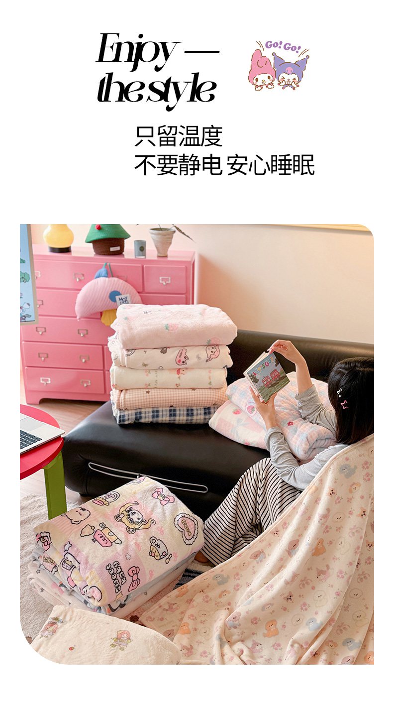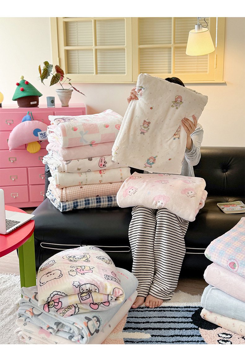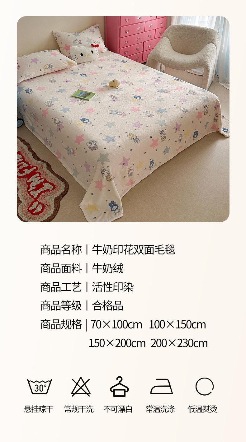 贝扬思家纺 2025新款四季款双面印花牛奶绒毛毯空调毯 萌萌女孩