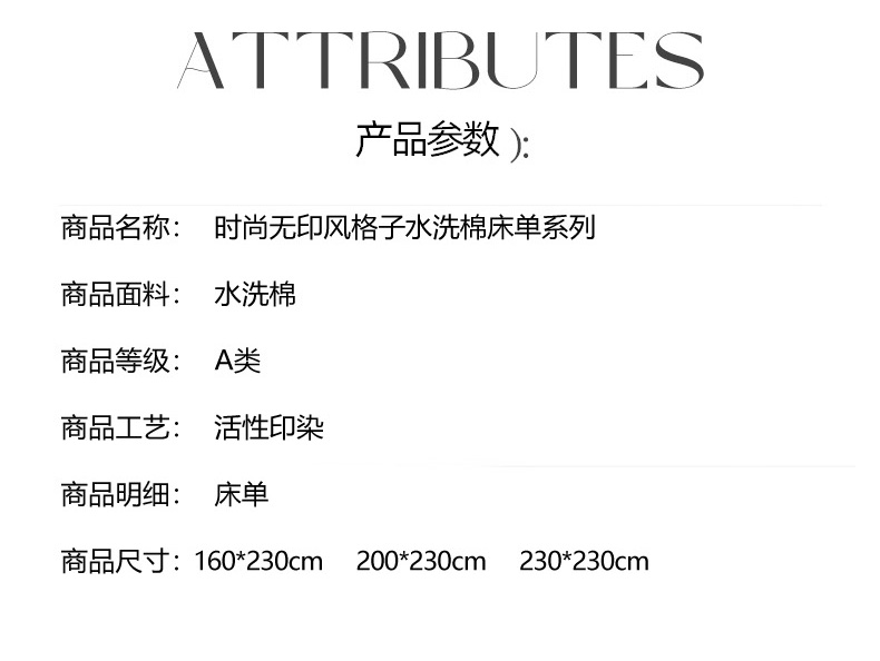 商品名称:南通菲度家纺 2025新款ins博主风软糯糯亲肤印花热款纯色格子无印风水洗棉时尚单床单 奥兰多