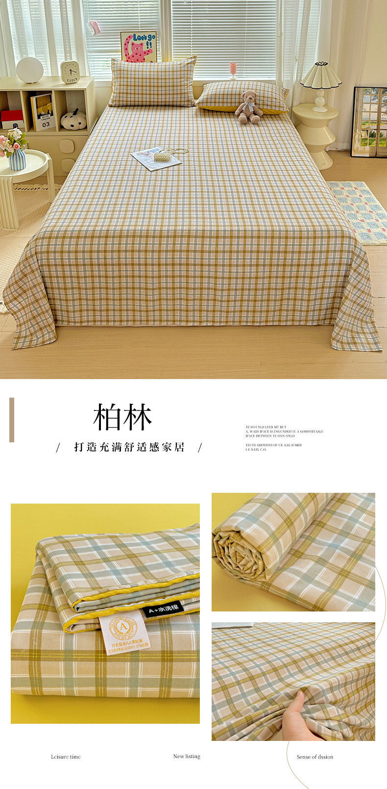 商品名称:南通菲度家纺 2025新款ins博主风软糯糯亲肤印花热款纯色格子无印风水洗棉时尚单床单 雅典