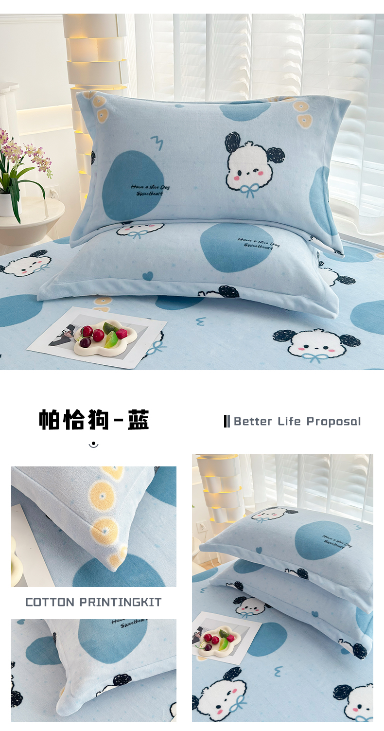 商品名称:翎盈家纺 2025款加厚高克重牛奶绒枕头套 帕恰狗-蓝
