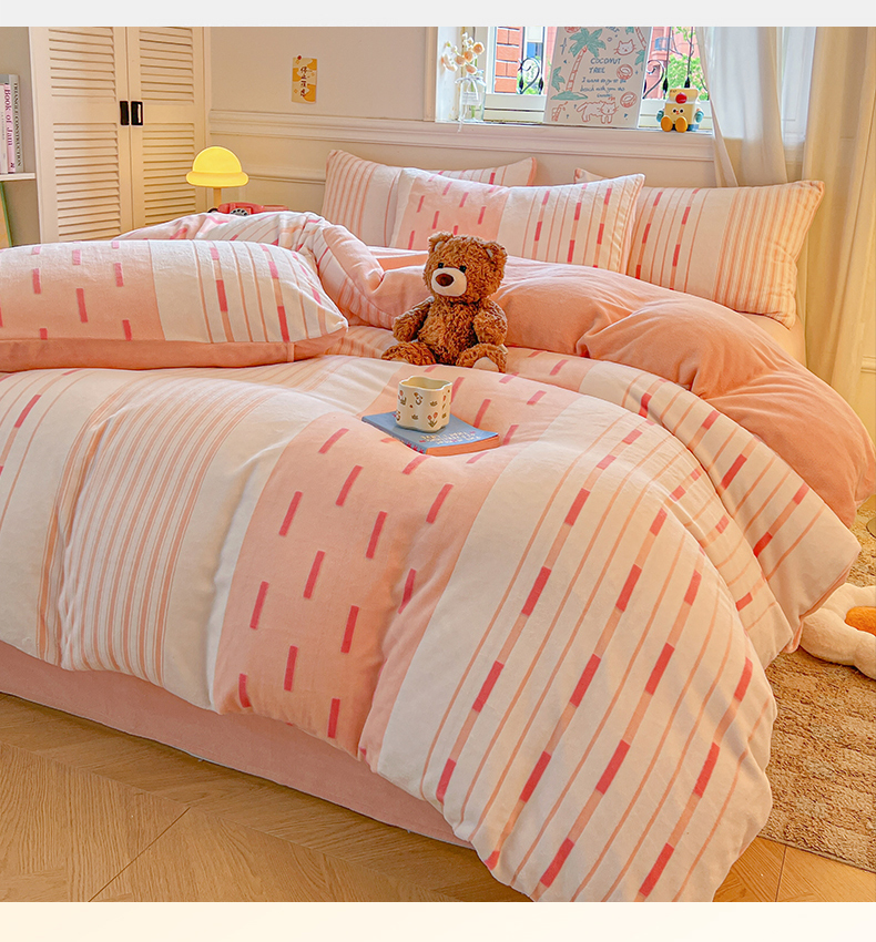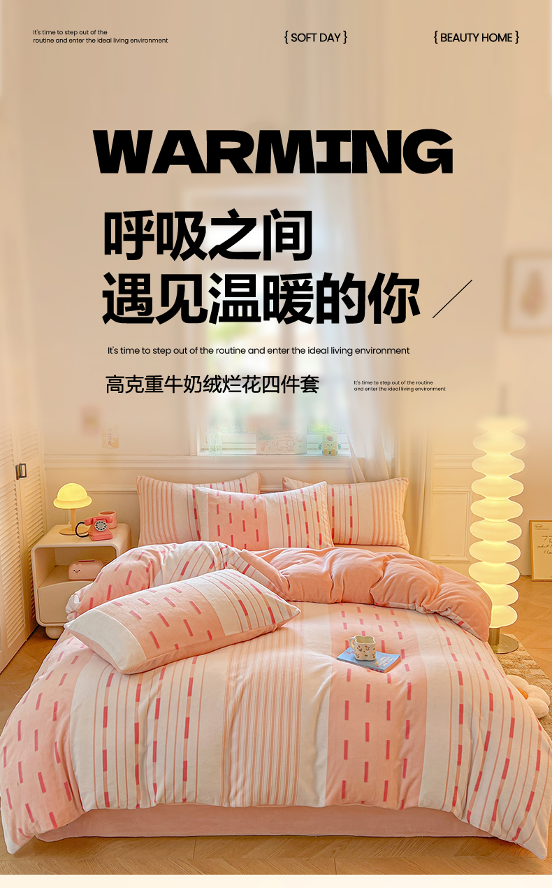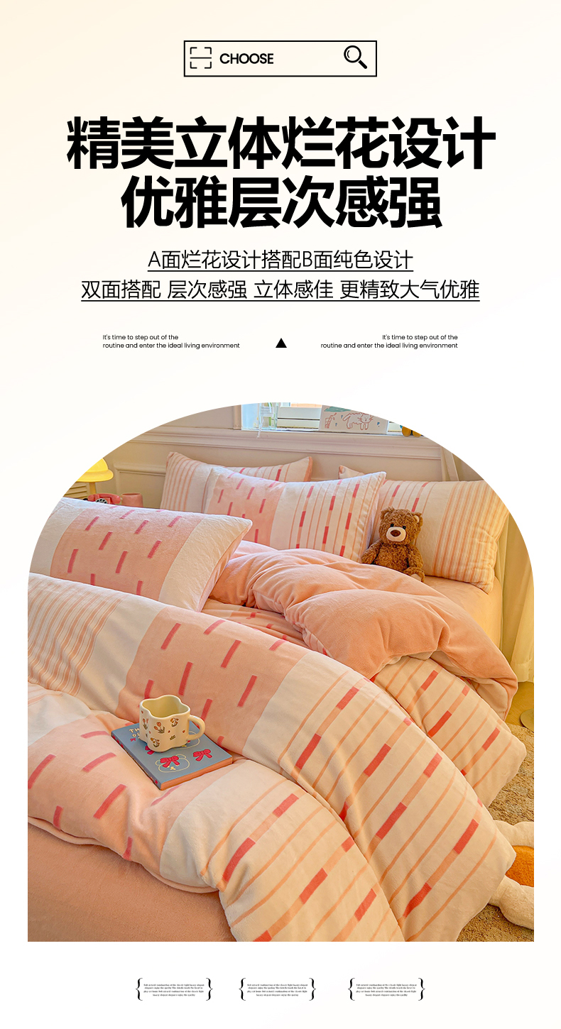 (总)莱茵家居 2025新款高克重牛奶绒烂花四件套,眠语-粉,眠语-蓝,暖格-粉,暖格-咖,暖格-蓝