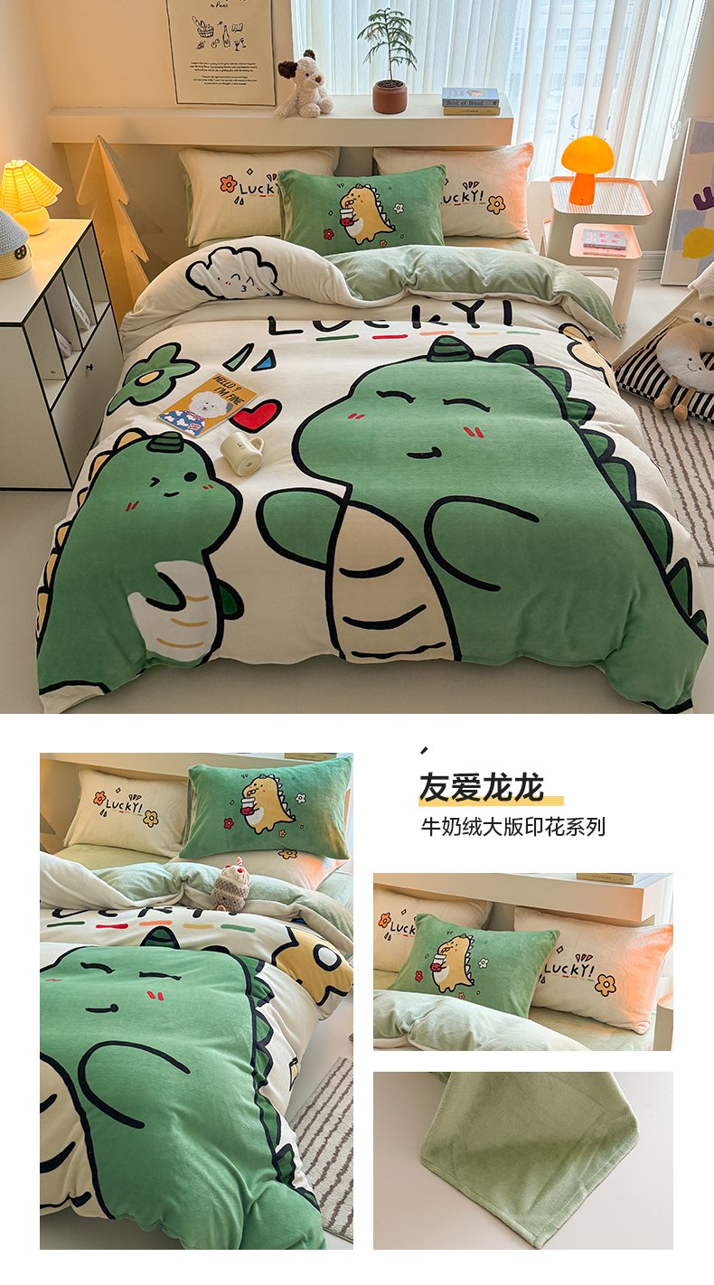 商品名称:悦织湾家纺 2025新款大版卡通印花牛奶绒四件套儿童床绒套件学生宿舍单双人床上用品三四件套 可爱松鼠