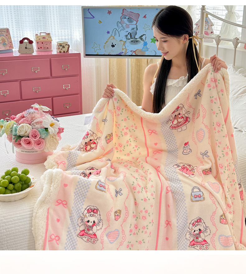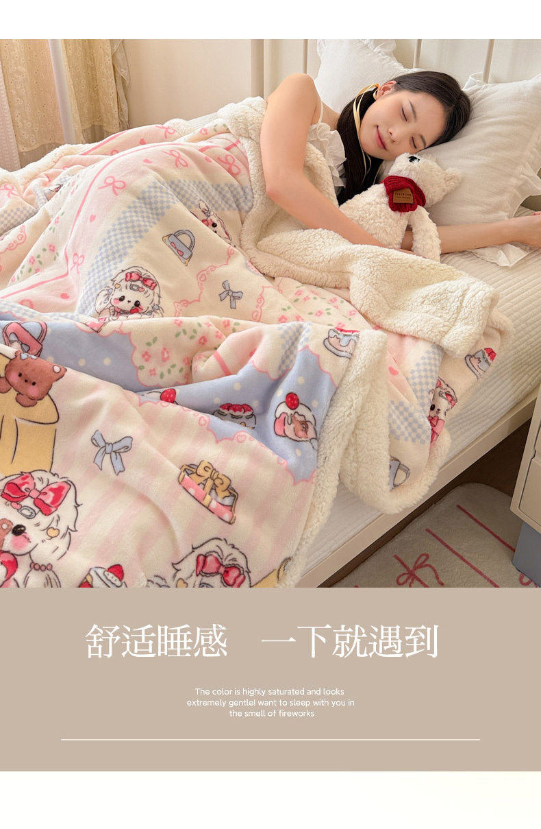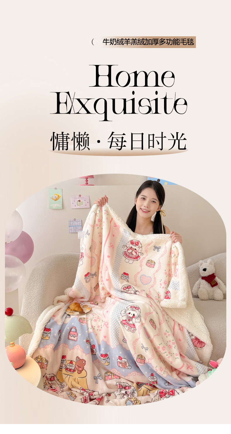 沐慕 2025新款牛奶绒拼羊羔绒毛毯盖毯毯子 毛毯-洛丽塔