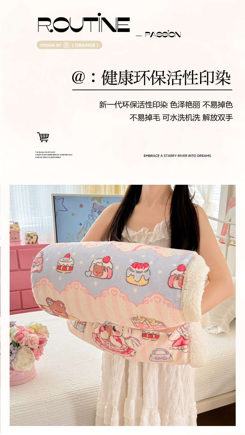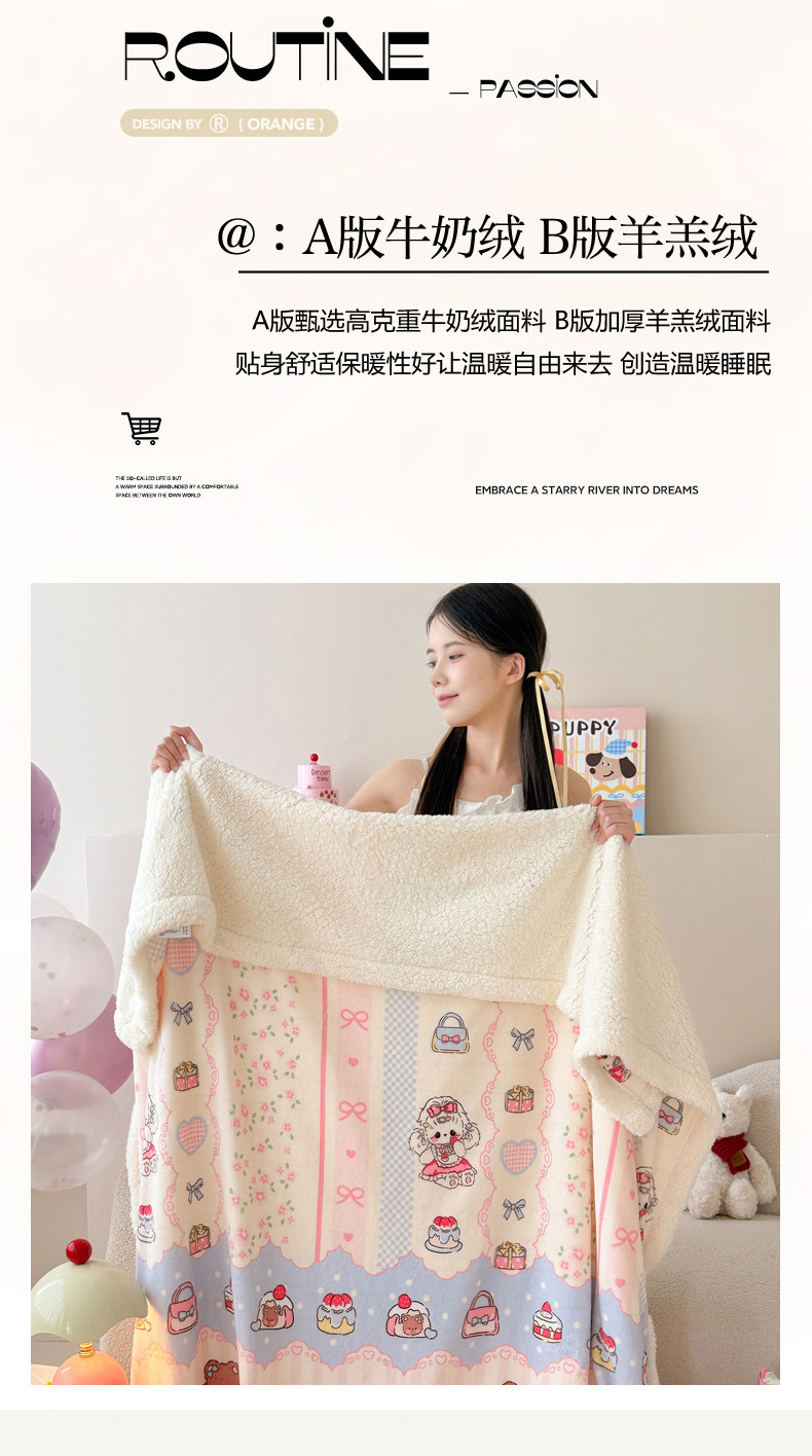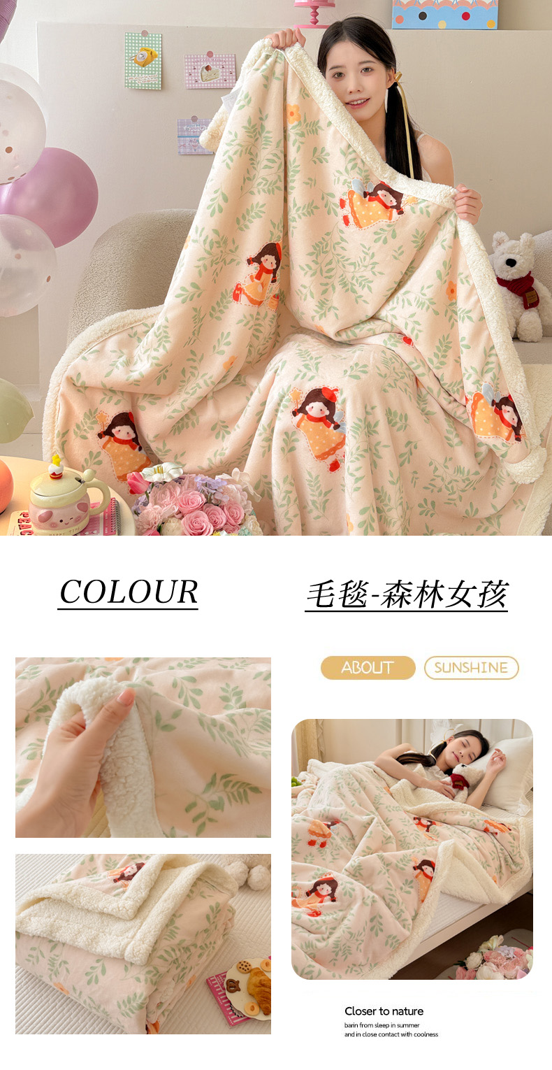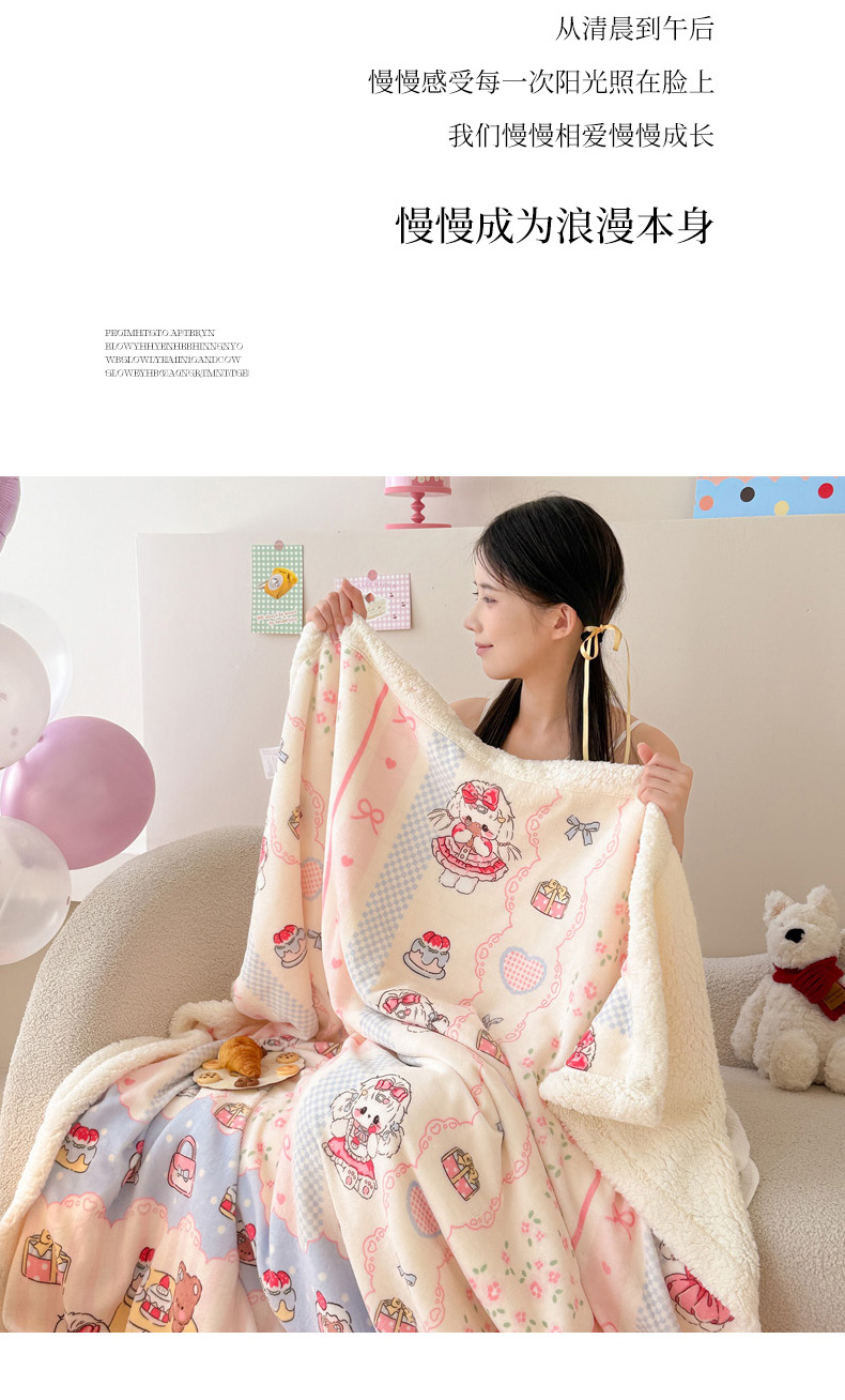商品名称:沐慕 2025新款牛奶绒拼羊羔绒毛毯盖毯毯子 毛毯-洛丽塔