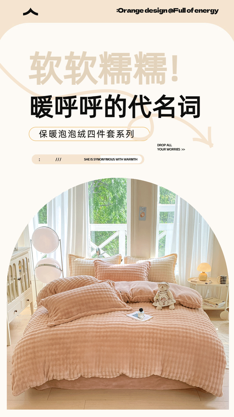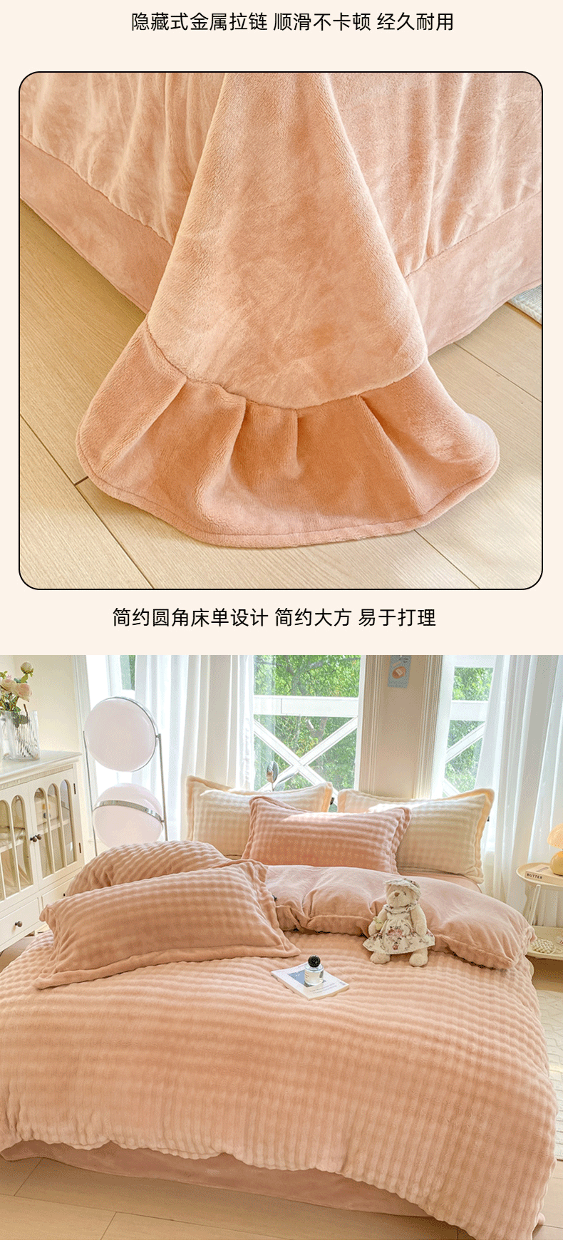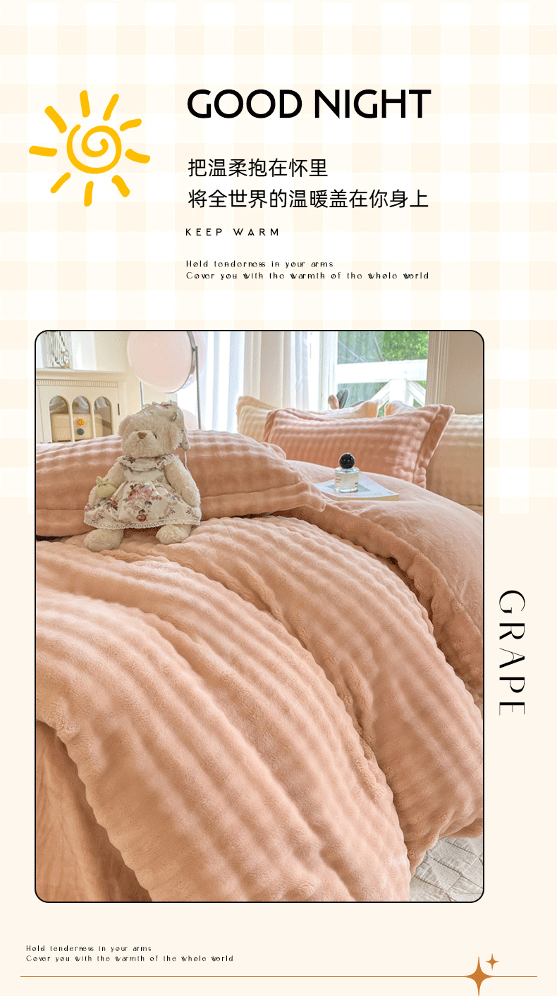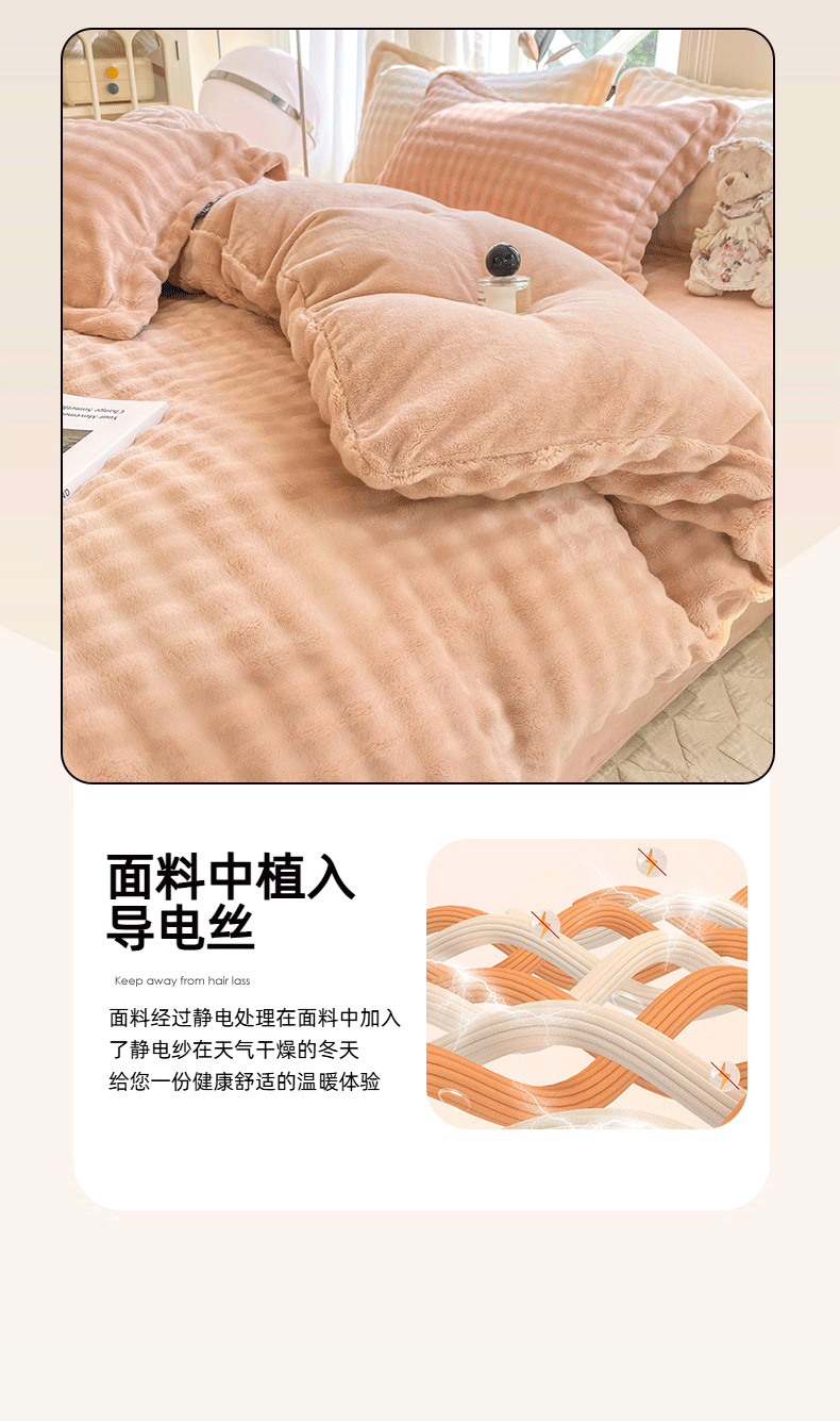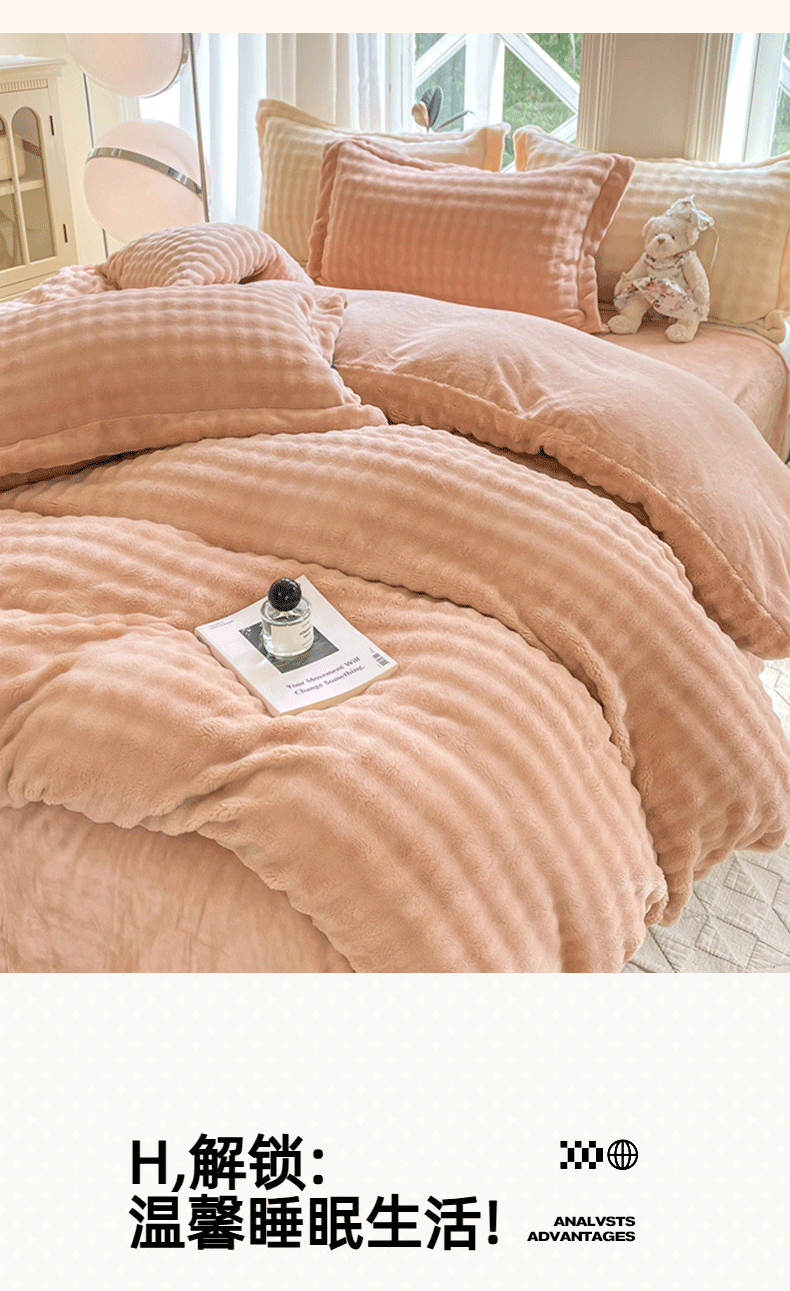 商品名称:悦织湾家纺 2025新款泡泡绒仿兔毛绒四件套牛奶绒纯色轻奢床上用品4件套货源足 泡泡绒-浅粉