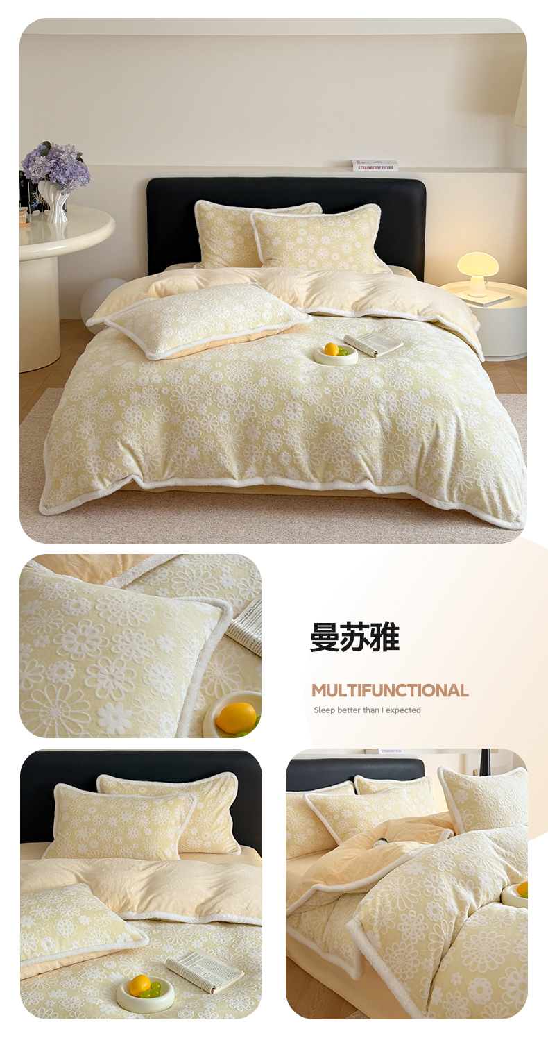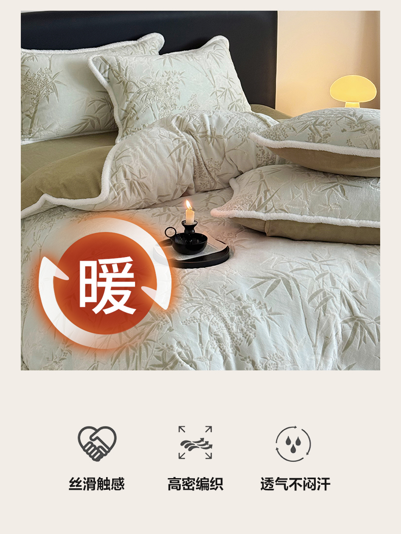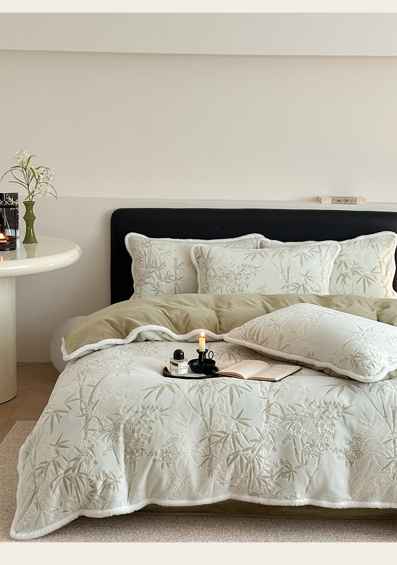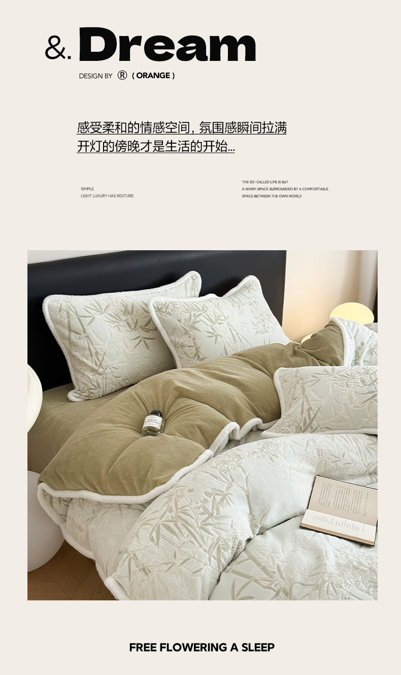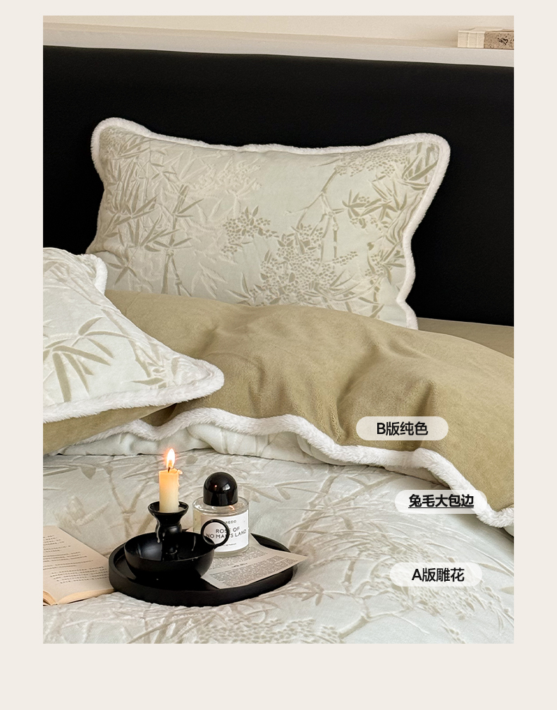 当前位置: 91家纺网 > 商品网购 > 床品套件 > 四件套 > 牛奶绒四件套 > 沐棉家居 2025新款高克重立体雕花牛奶绒保暖四件套 雅致