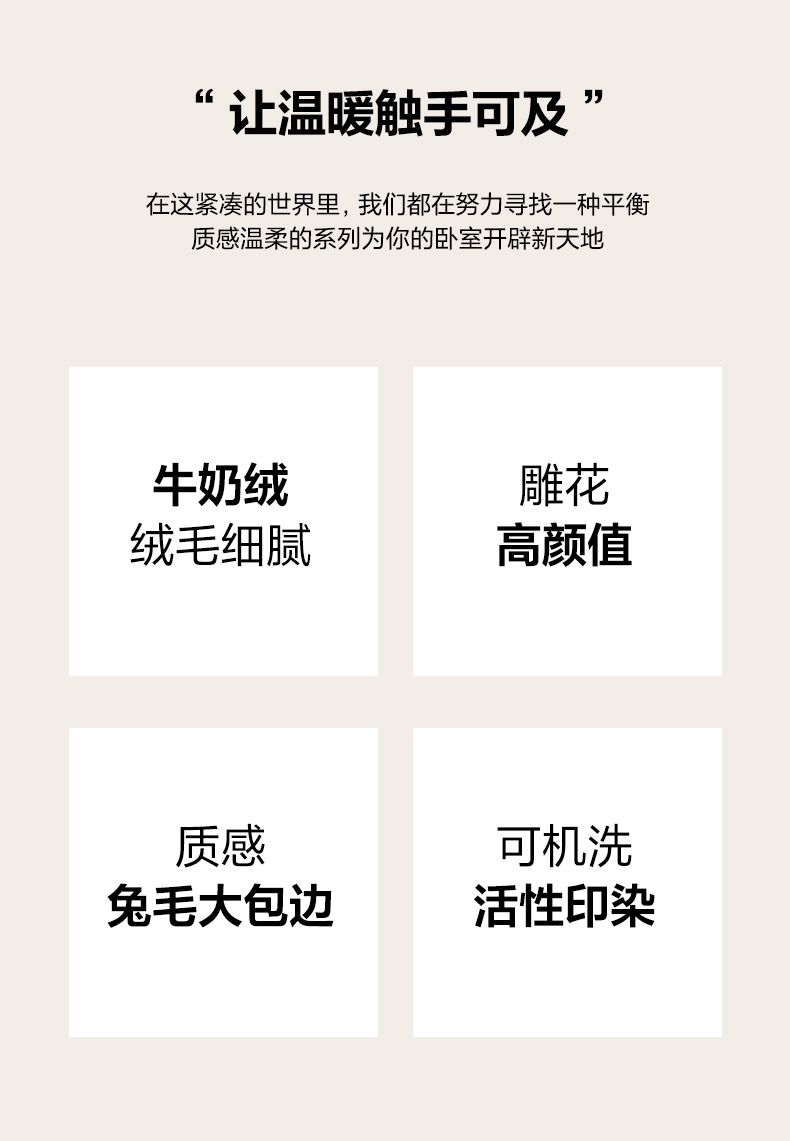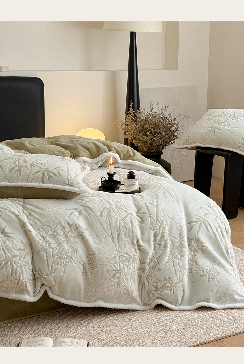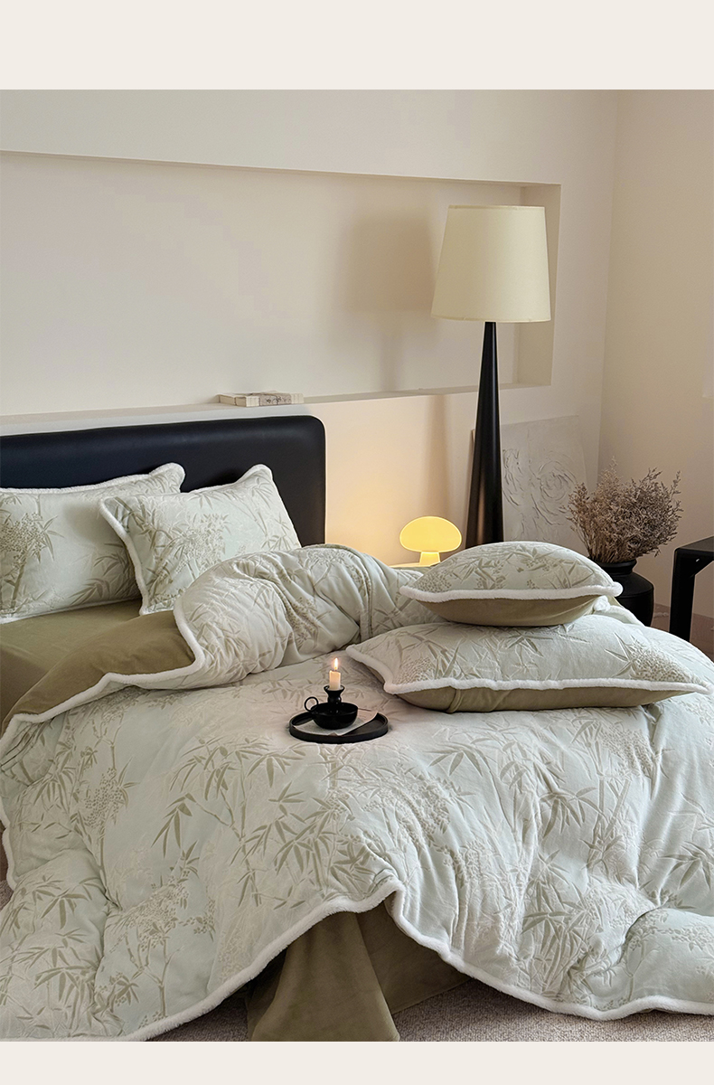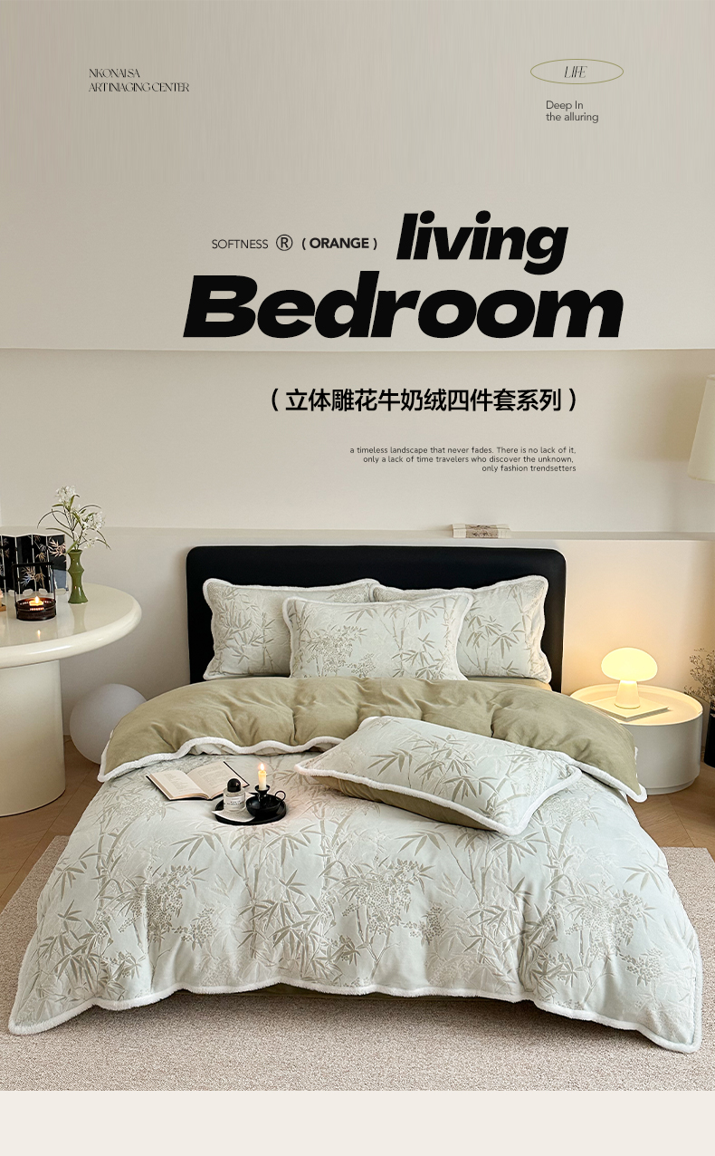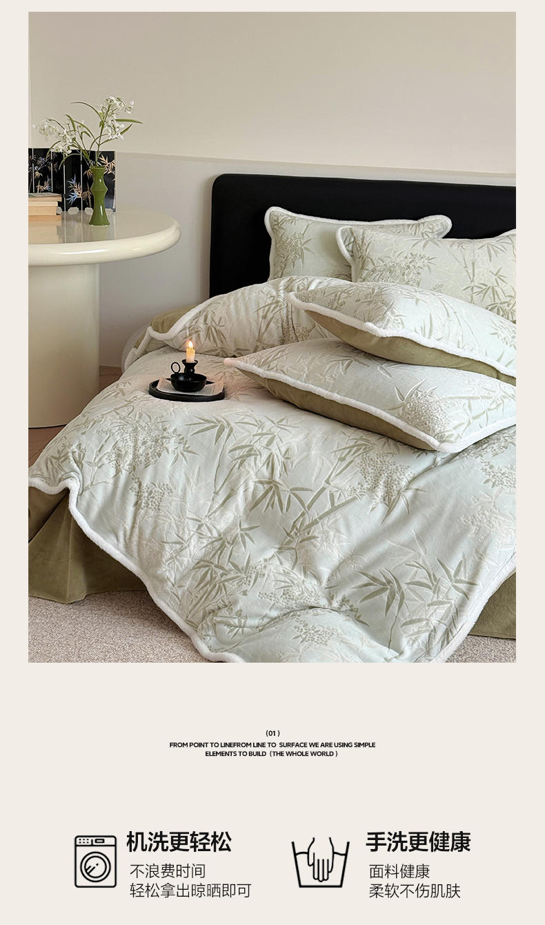当前位置: 91家纺网 > 商品网购 > 床品套件 > 四件套 > 牛奶绒四件套 > 沐棉家居 2025新款高克重立体雕花牛奶绒保暖四件套 雅致