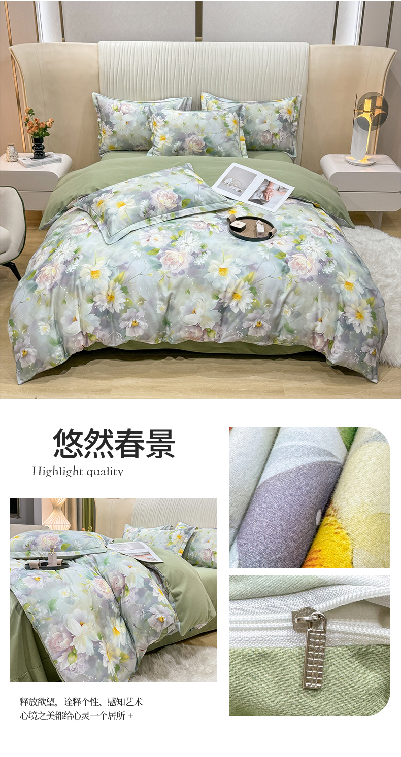 (总)红日子纺织品 2025新款全棉纯棉数码印花四件套,花暖容颜-绿,波斯记忆-蓝,茶山露水-桔,淡雅清风-蓝,芳若-绿,花情共舞-米,焕彩玫瑰-黄,美尼尔-粉,莫兰迪-紫,莫妮花园-粉,浓情蜜意-粉,翩翩花语-绿,秋日盛情-黄,日落花雨-灰,如若梦境-绿,诗丹娜-深蓝,邂逅柔情-蓝,秀雅佳人-灰