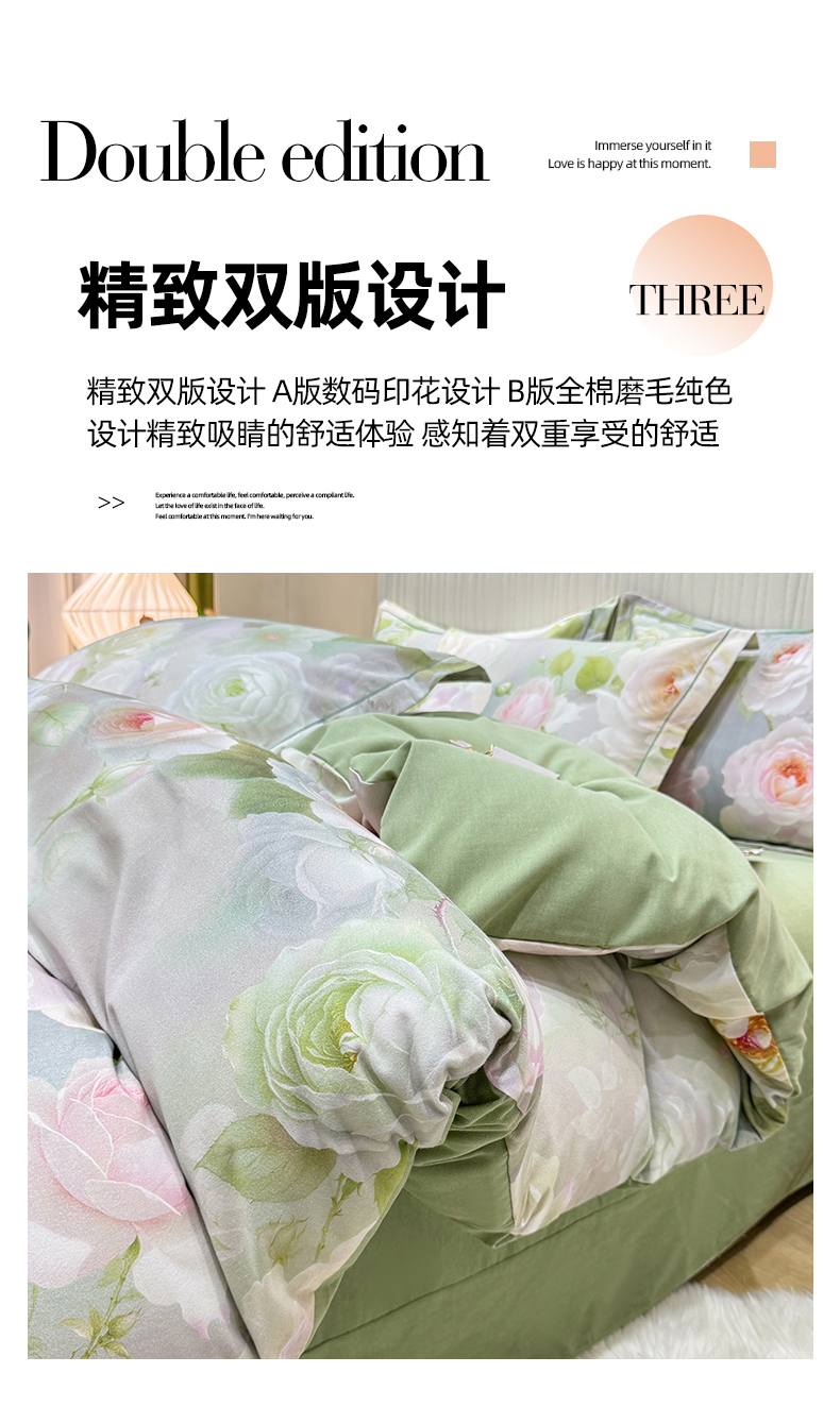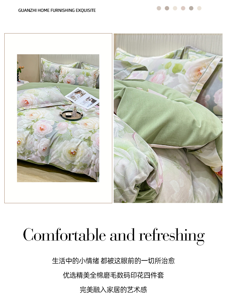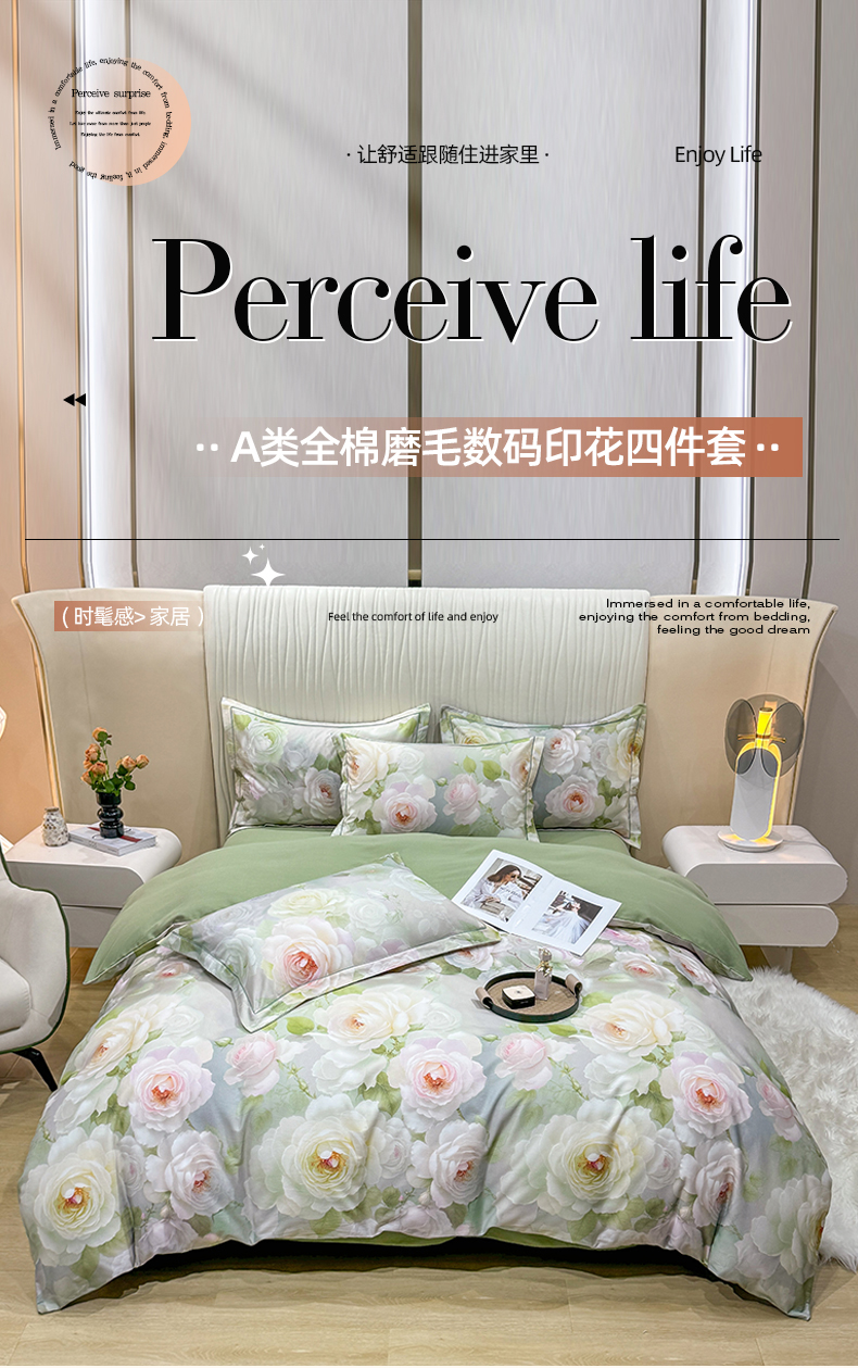 红日子纺织品 2025新款A类全棉磨毛数码印花四件套 盛季细风
