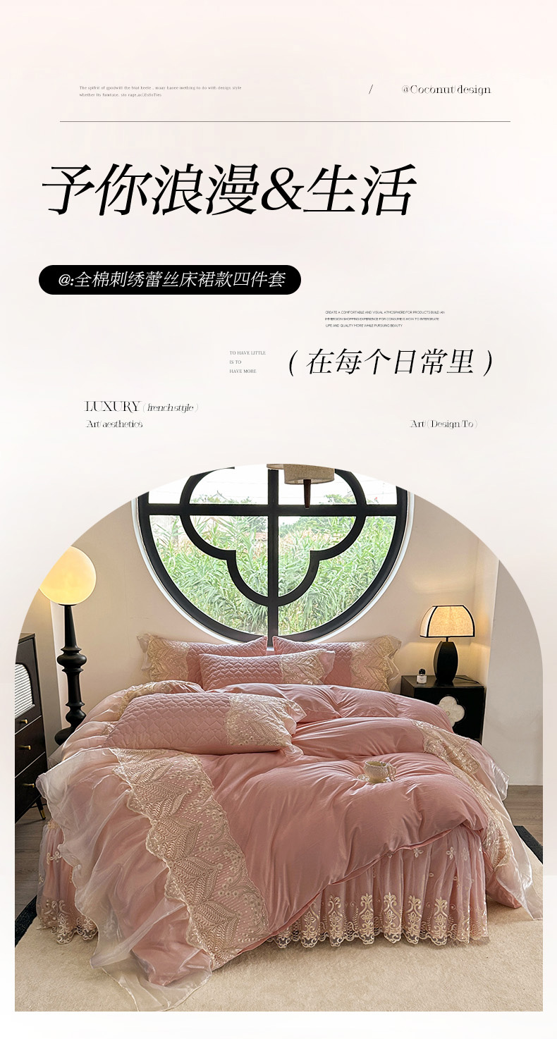 当前位置: 91家纺网 > 商品网购 > 床品套件 > 四件套 > 其它四件套 > 罗艺轩 2025新款全棉纯棉蕾丝刺绣琉璃床裙四件套(1.5m控价288起、1.8m控价293起、1.8m加大控价303起、1.8*2.2m控价298起、1.8*2.2m加大控价308起、2.0m控价3