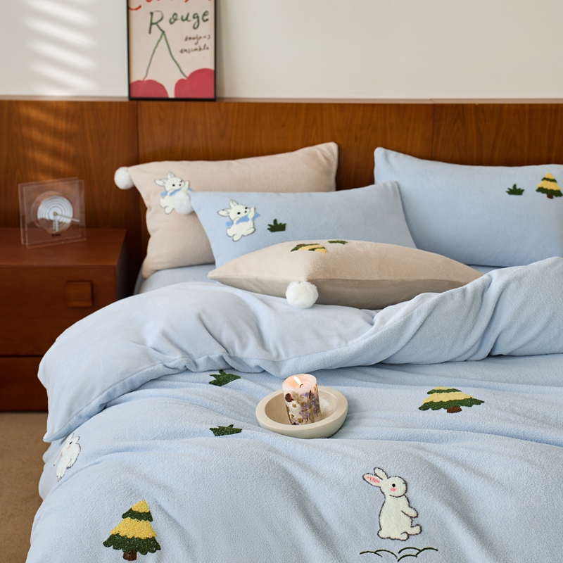 商品名称:瑞雪家居 2025新款全消光毛巾绣艾尼绒系列四件套-艾尼兔 艾尼兔-罗兰紫